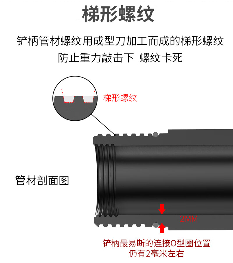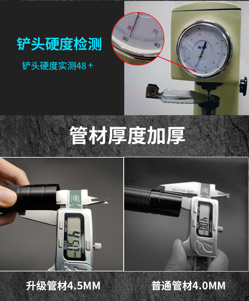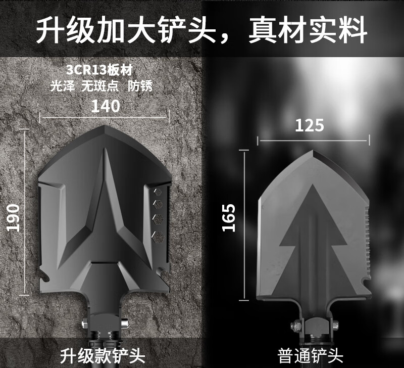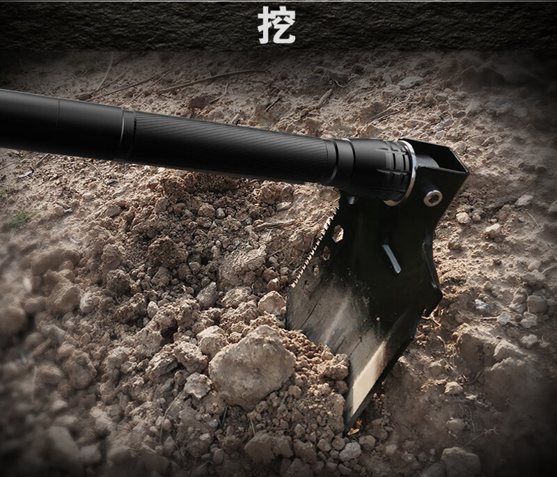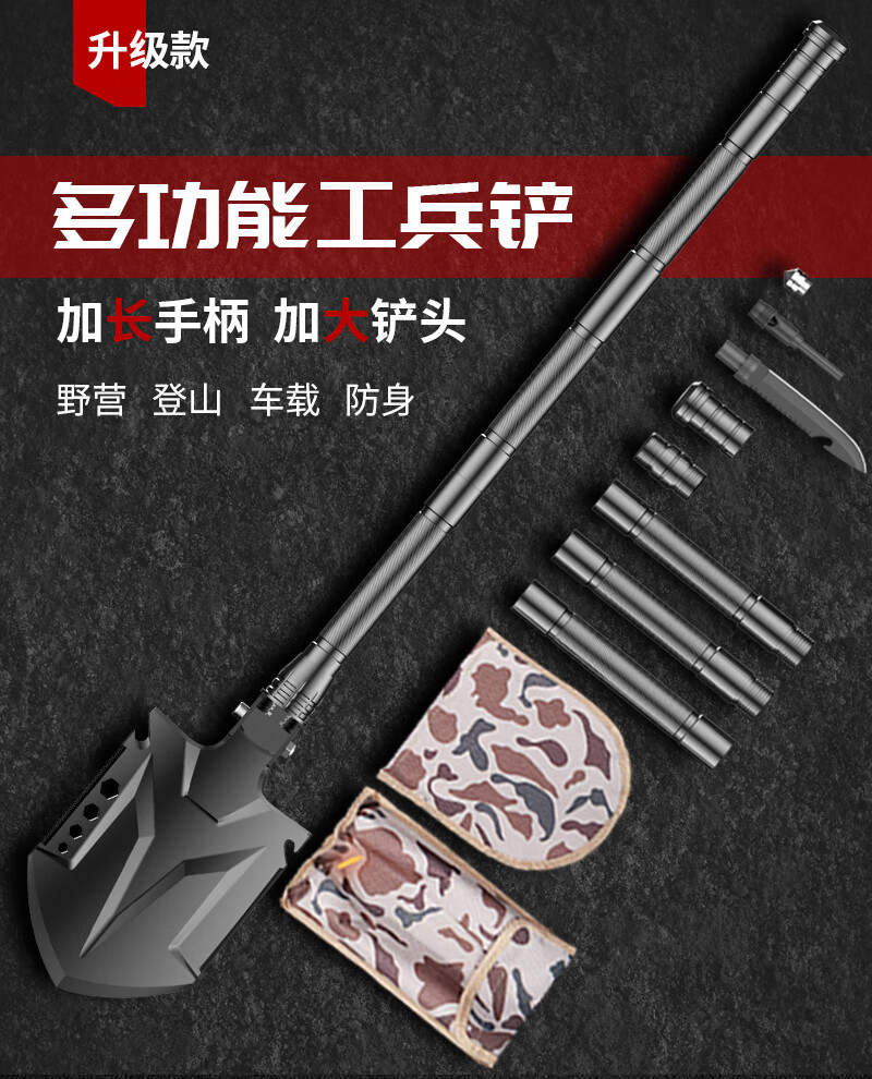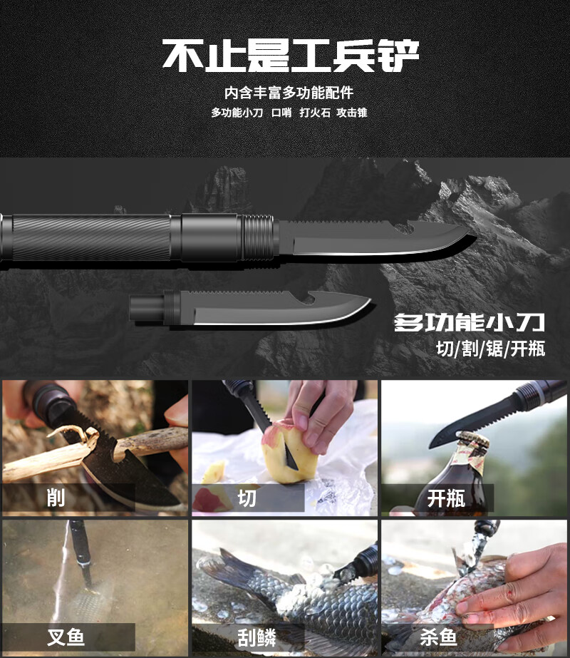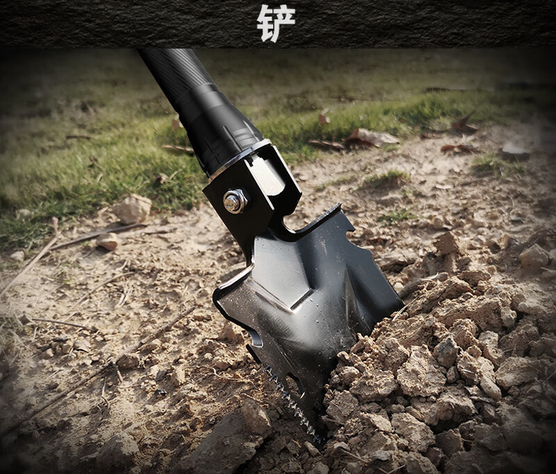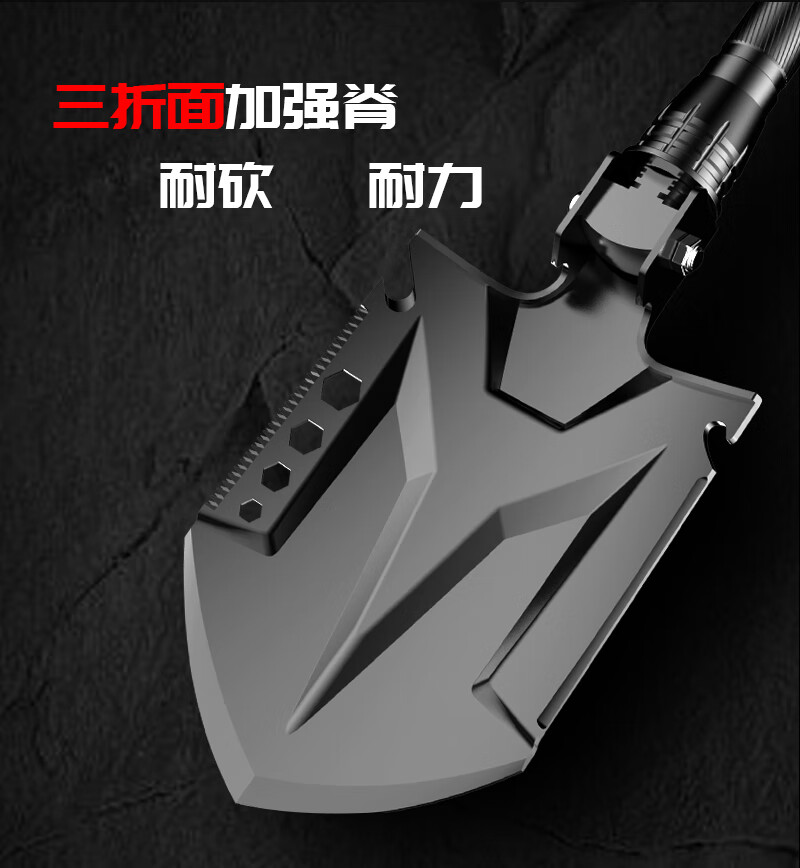 瀚狐户外多工能兵工铲车载野营登山防身铁锹钓鱼铲加厚战术 玄武黑