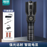 瀚狐强光手电筒可充电式手持长续航手电筒聚光远射户外登山巡逻翰狐 恶魔黑【5000mAh*2】