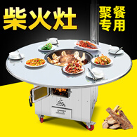 襄睿不锈钢柴火灶柴火鸡灶台农村家用灶烧柴大铁锅灶台移动地锅带桌子 1.2米圆桌【54锅】