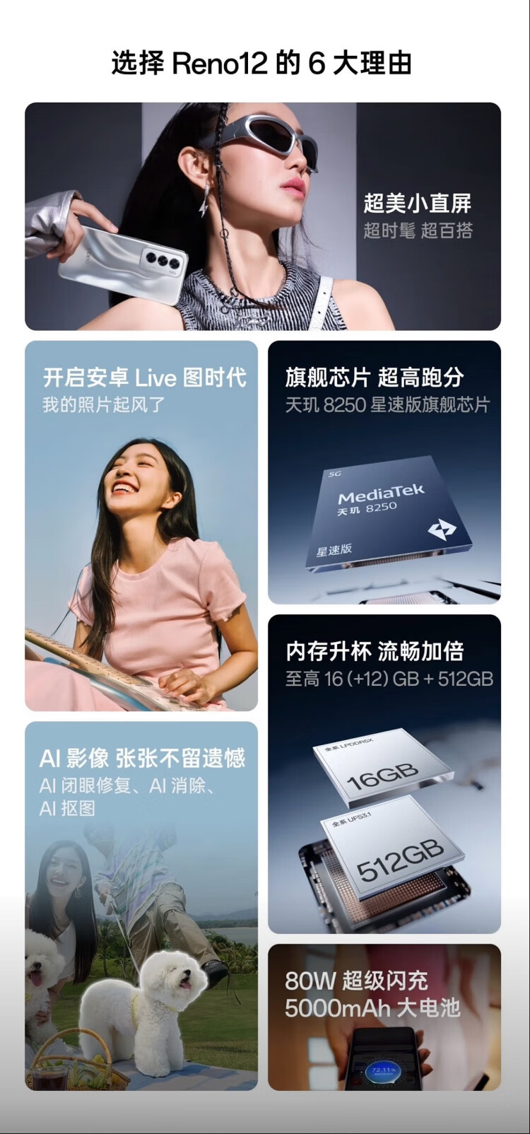OPPOReno12 新款超美小直屏 Live图 全网通智能游戏拍照大内存旗舰AI 晨雾蓝 16GB+512GB 单机+第三方品牌快充+店保1年