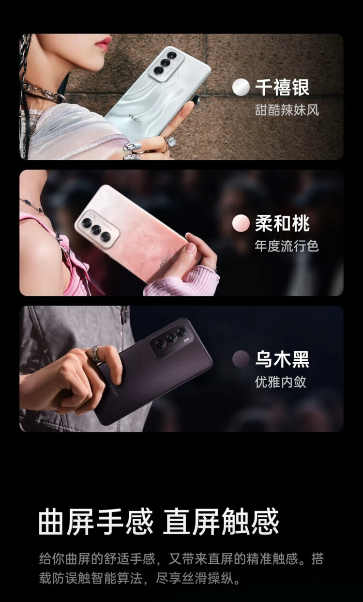 OPPORENO12 5G手机全网通双卡双待 直屏美颜拍照游戏手机 支持NFC学生 千禧银 16GB+512GB 单机+第三方品牌充+店保1年