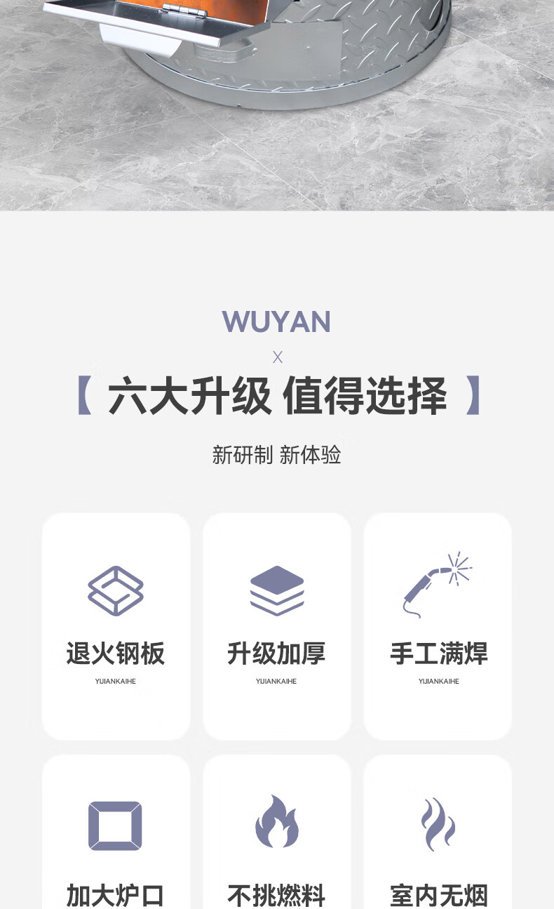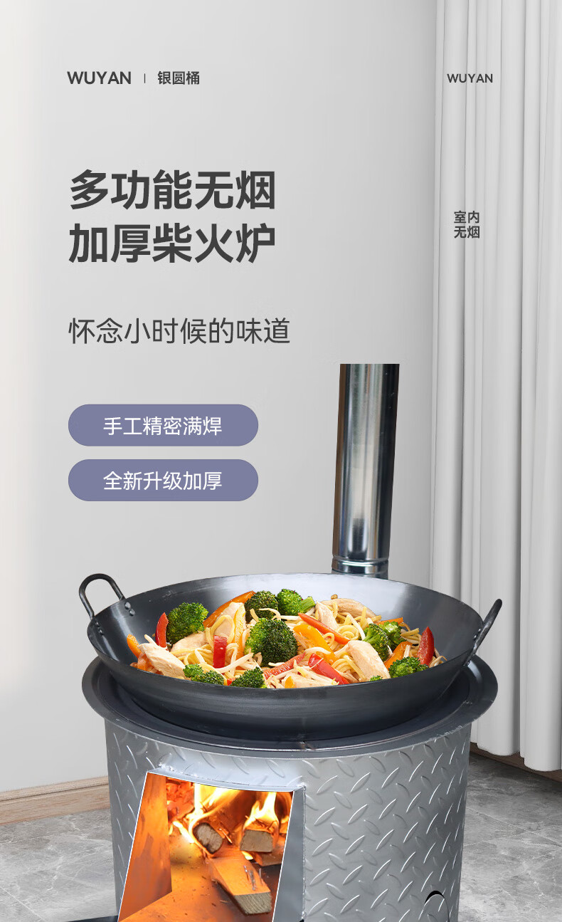 NAOISKEY 脑斯基新柴火灶家用农村烧木柴取暖炉室内无烟大铁锅台移动节能庭院特厚 30cm新黑圆桶+35cm管配件