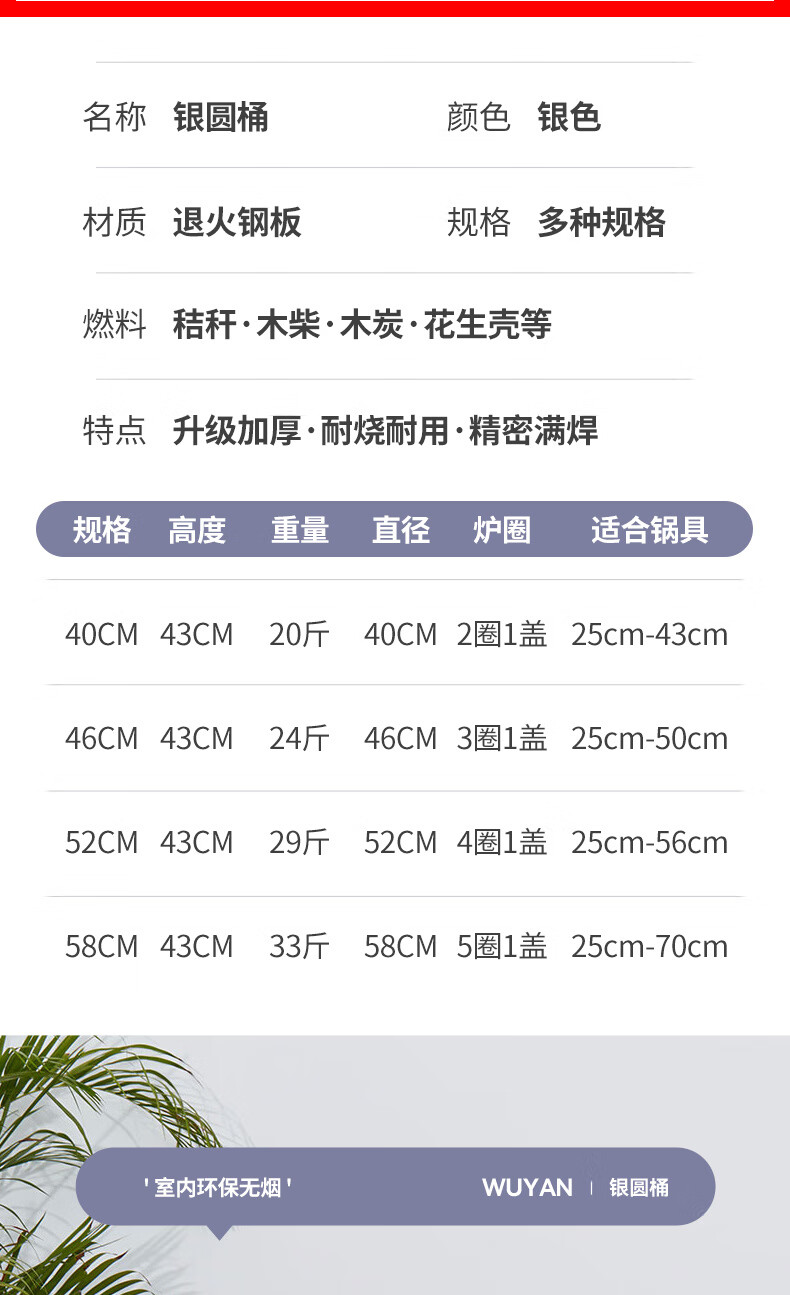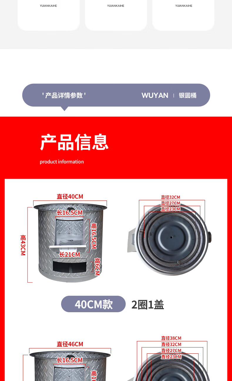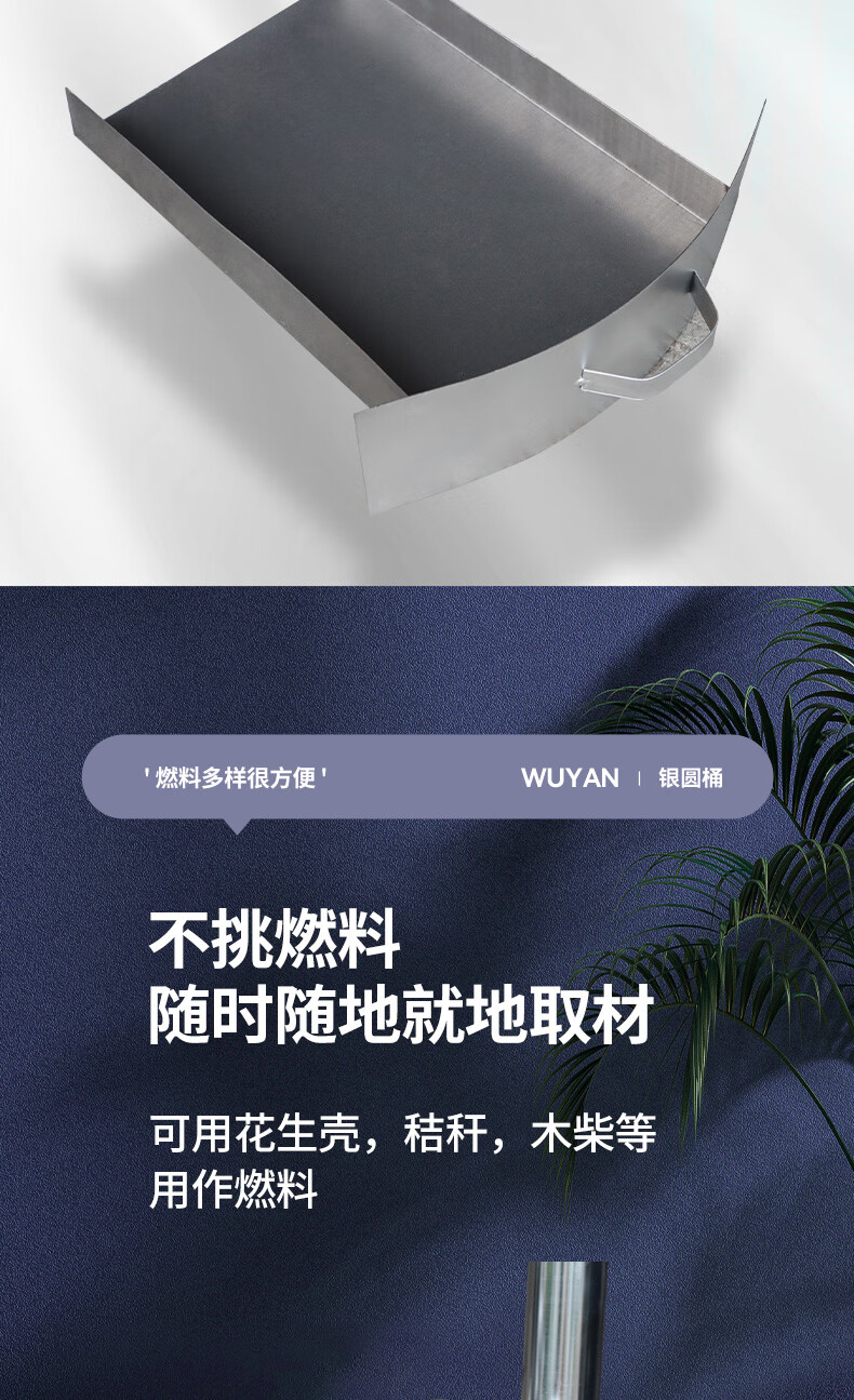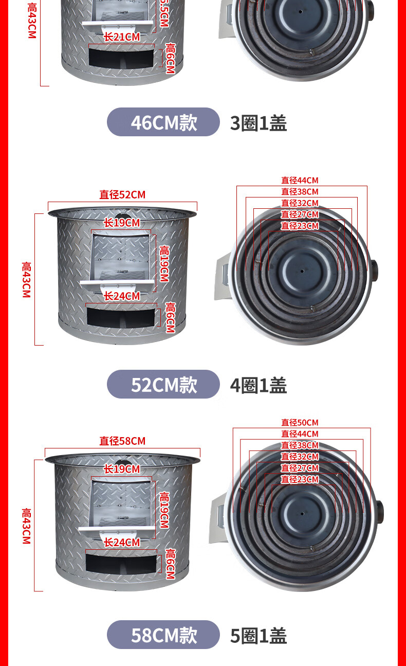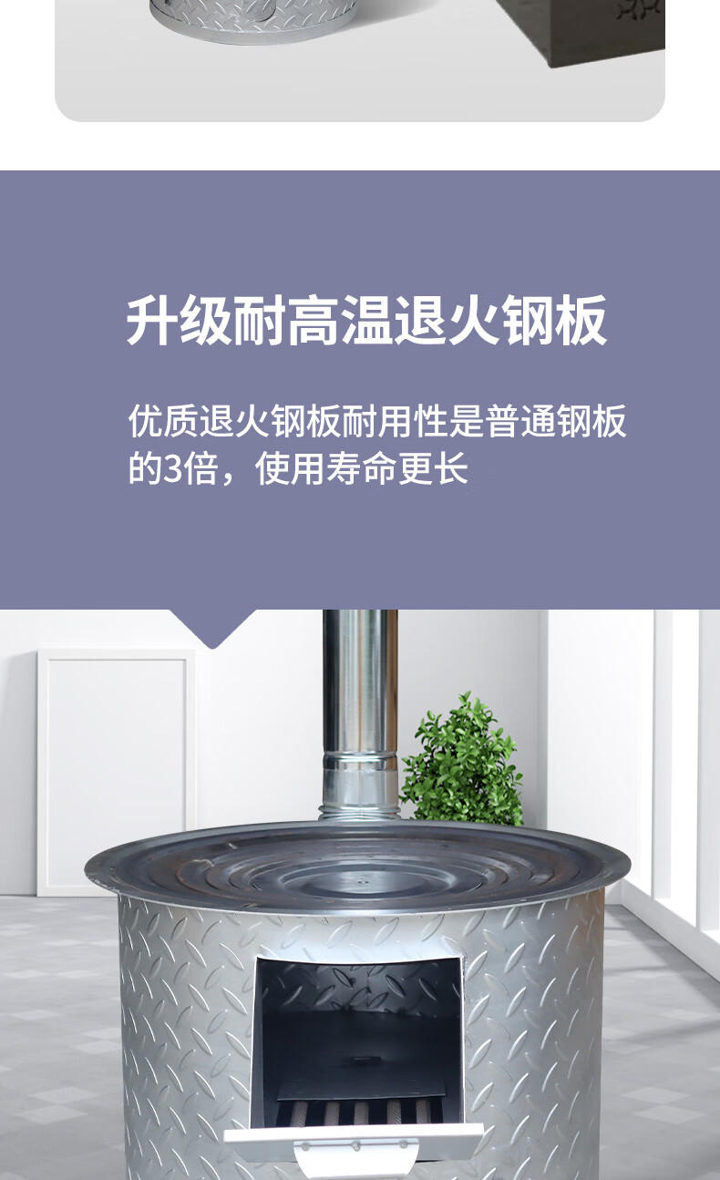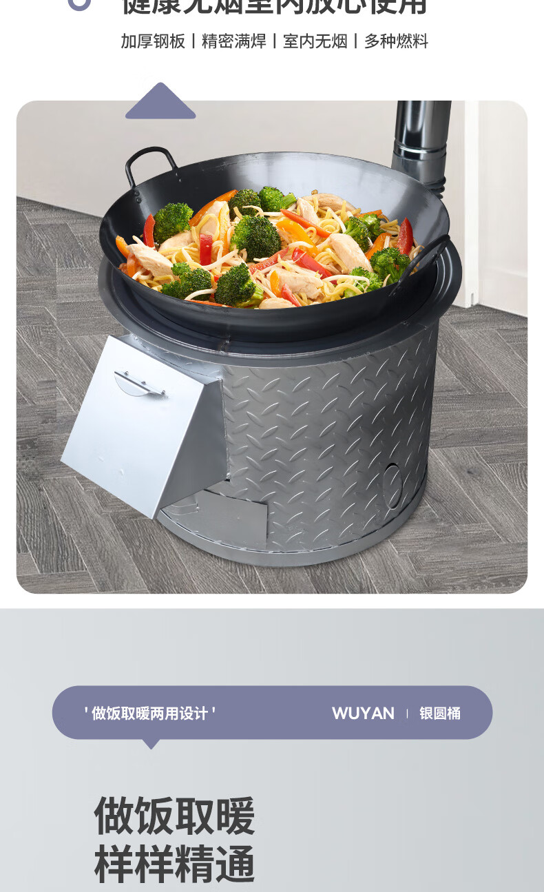 柴火灶家用烧木柴铁大锅台农村无烟取暖炉子移动新型节能便携庭院 46cm新黑圆桶40cm管+配件
