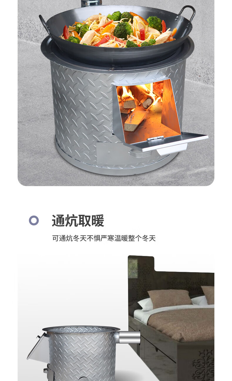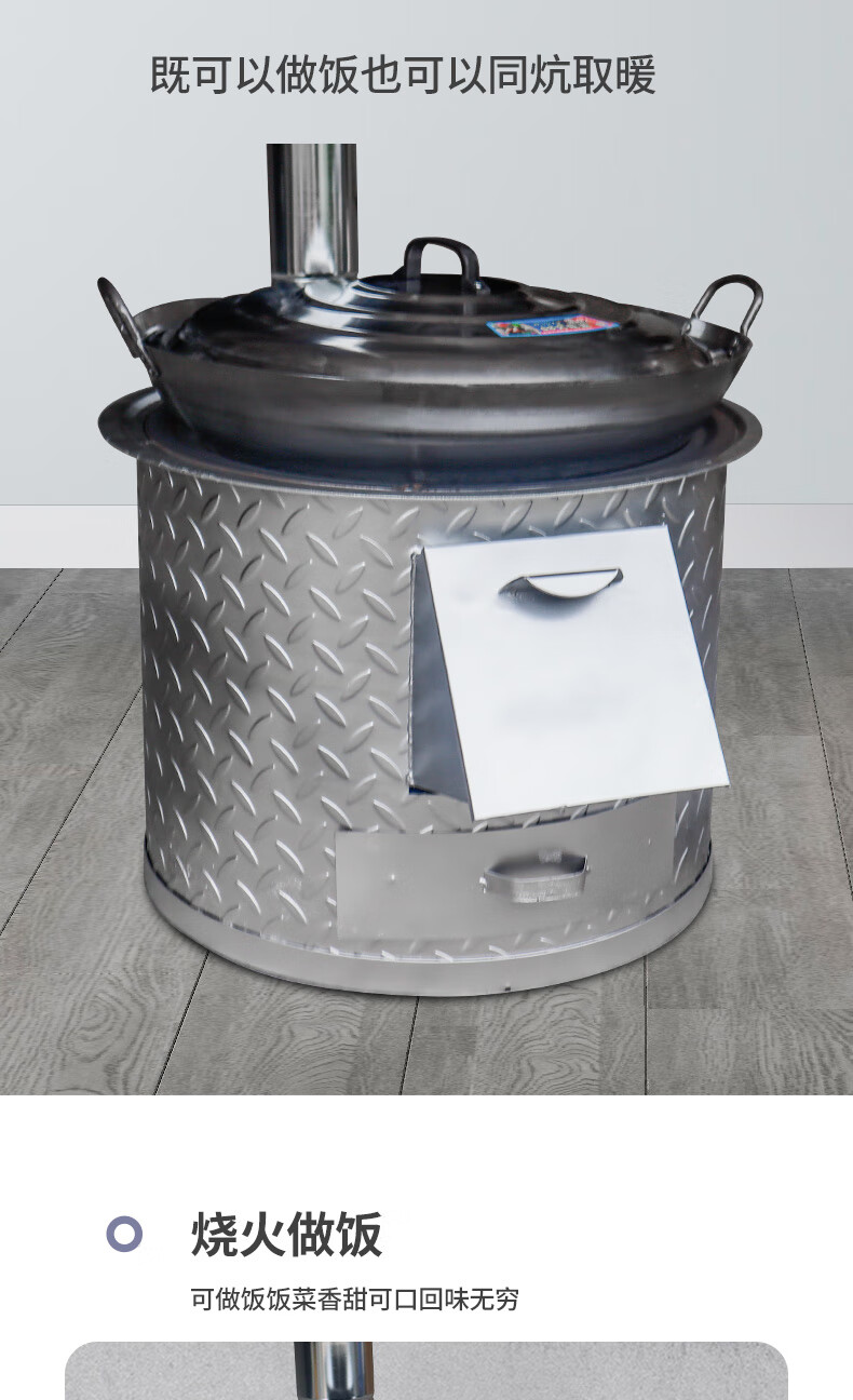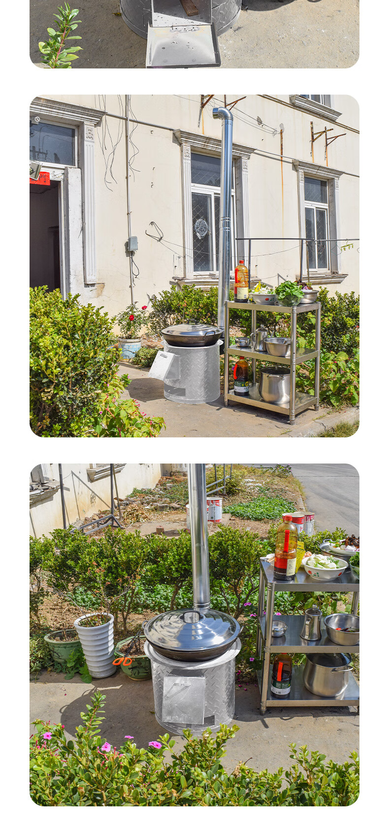 柴火灶农村家用烧木柴取暖炉户外移动地锅鸡室内炉具新式大锅灶台 银圆桶40+40cm烟管配件