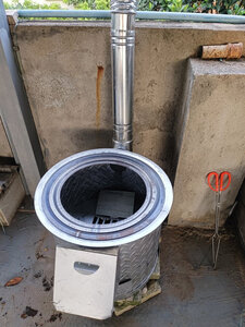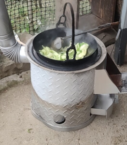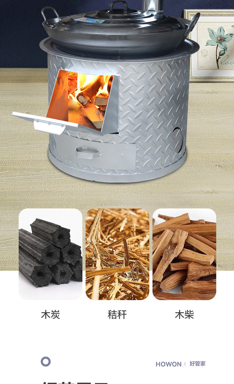 这款柴火灶密封性差外观还可以烟管不够长选成烟到处跑