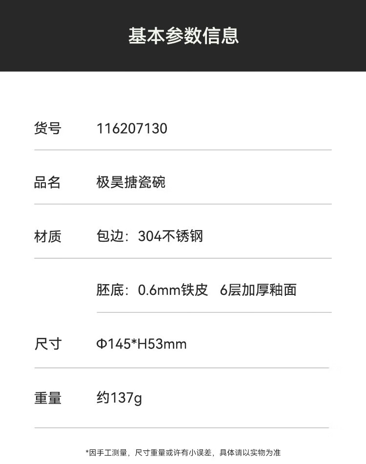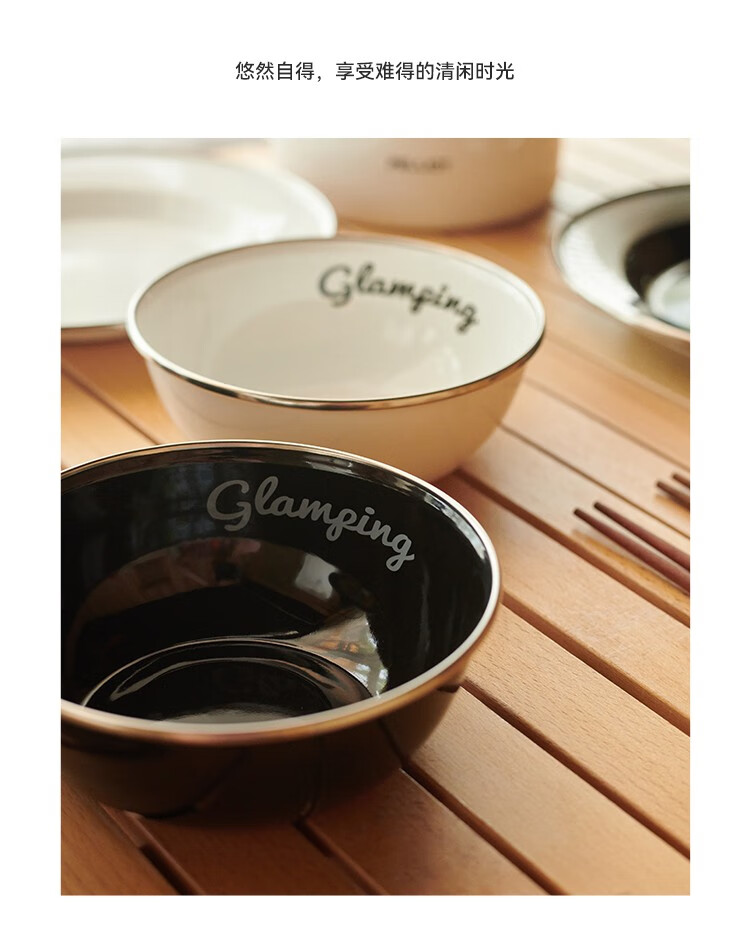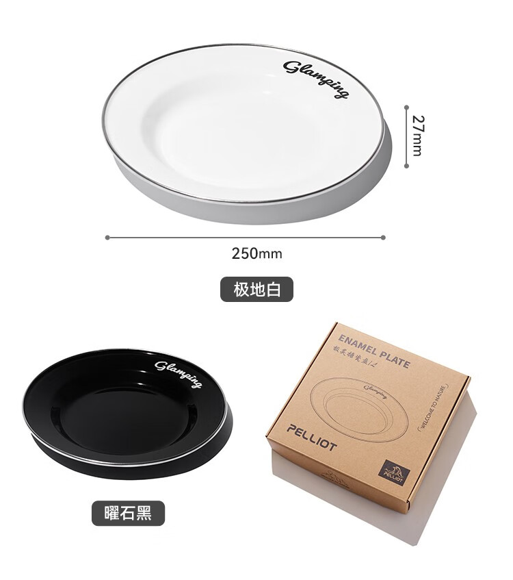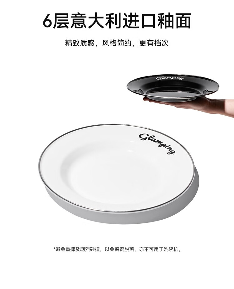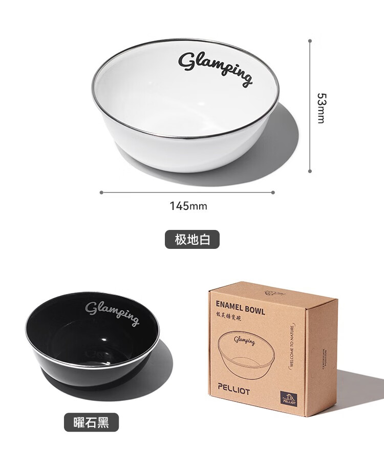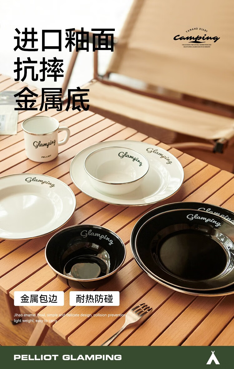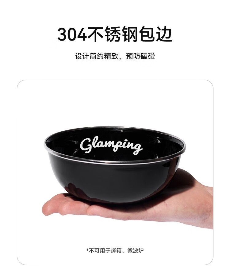 伯希和(Pelliot)露营搪瓷碗盘户外精致露营厨房餐具装备野外野炊餐盘餐碗 搪瓷碗 曜石黑