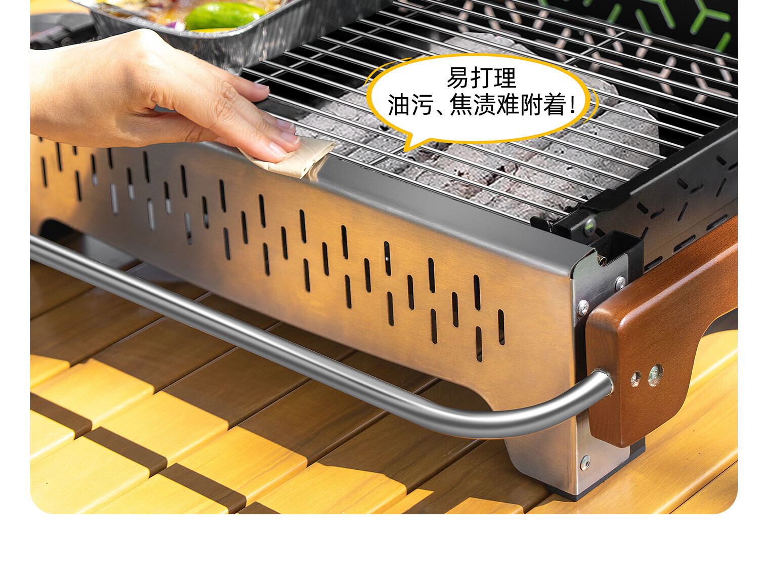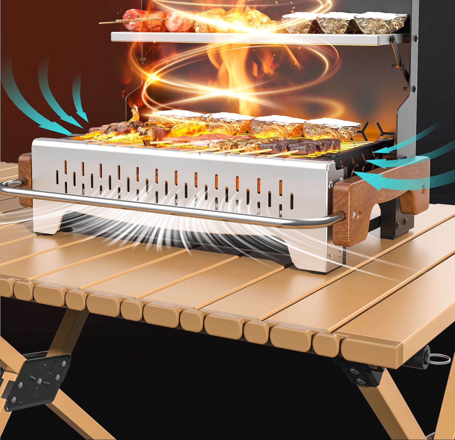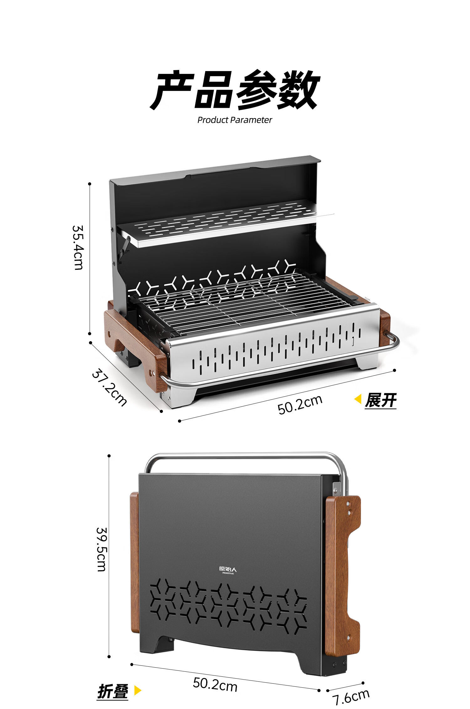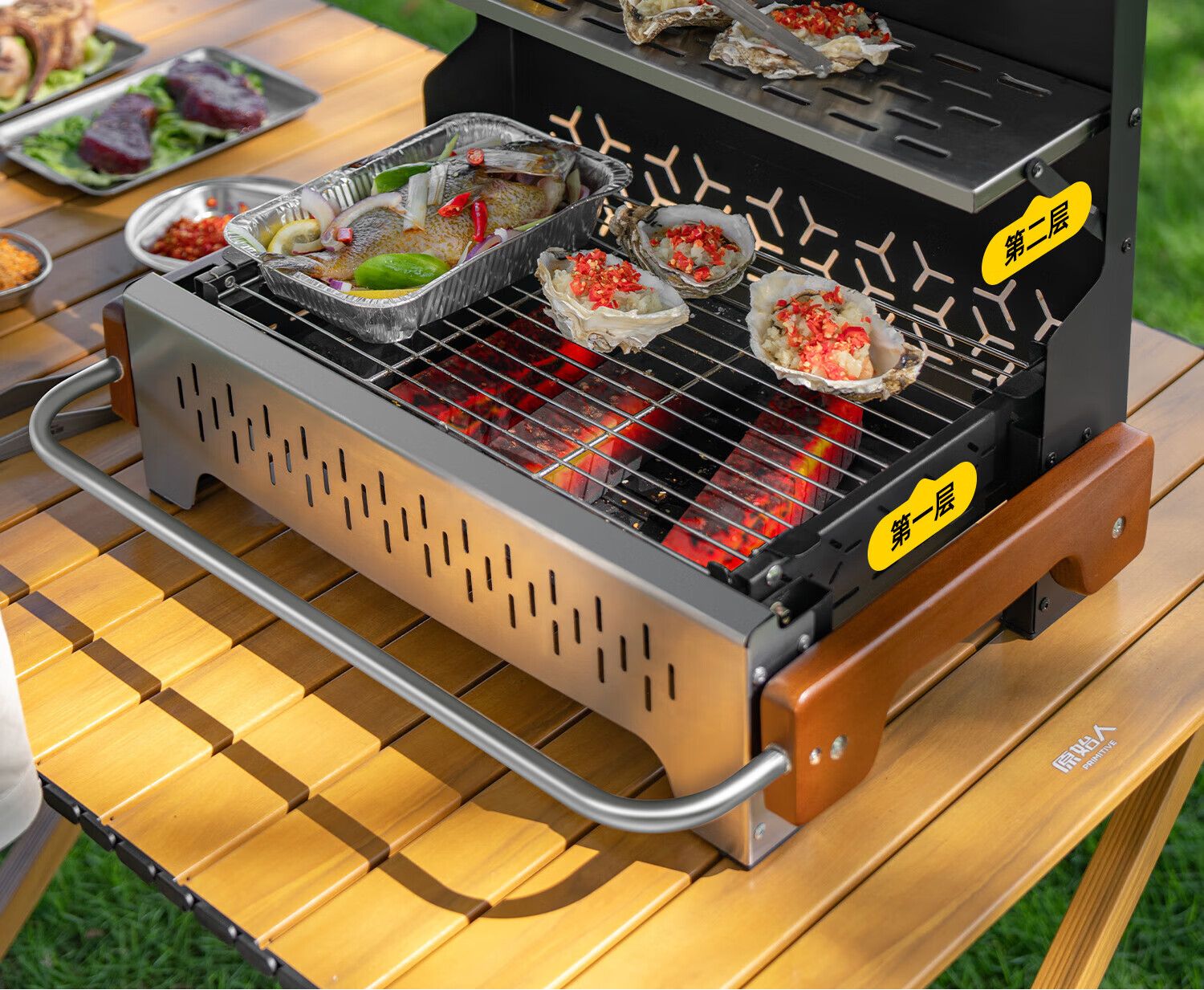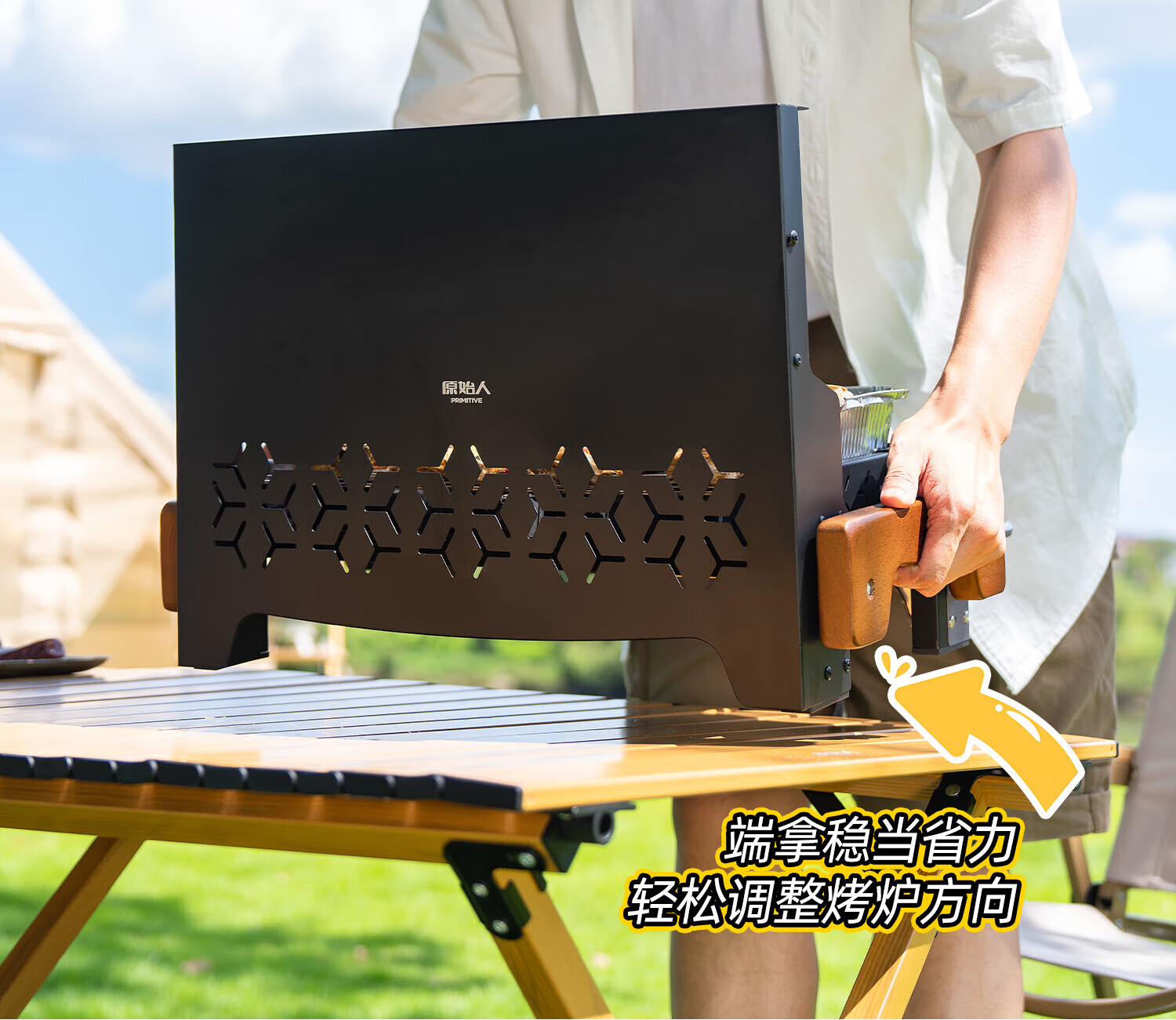 原始人便携式烧烤炉子烧烤架户外木炭烤肉架子家用304折叠木碳烤炉 免安装折叠【2档调温】基础套装