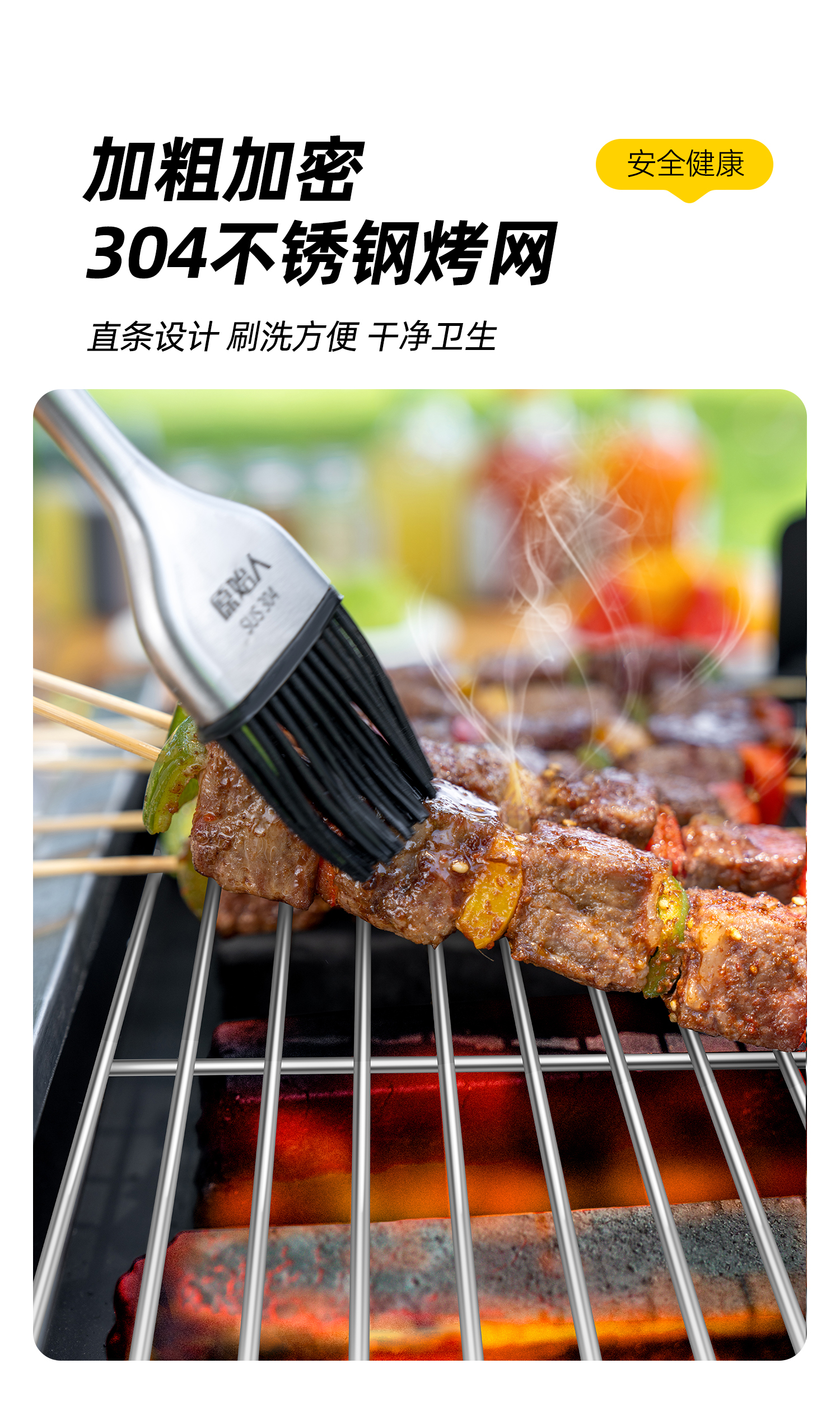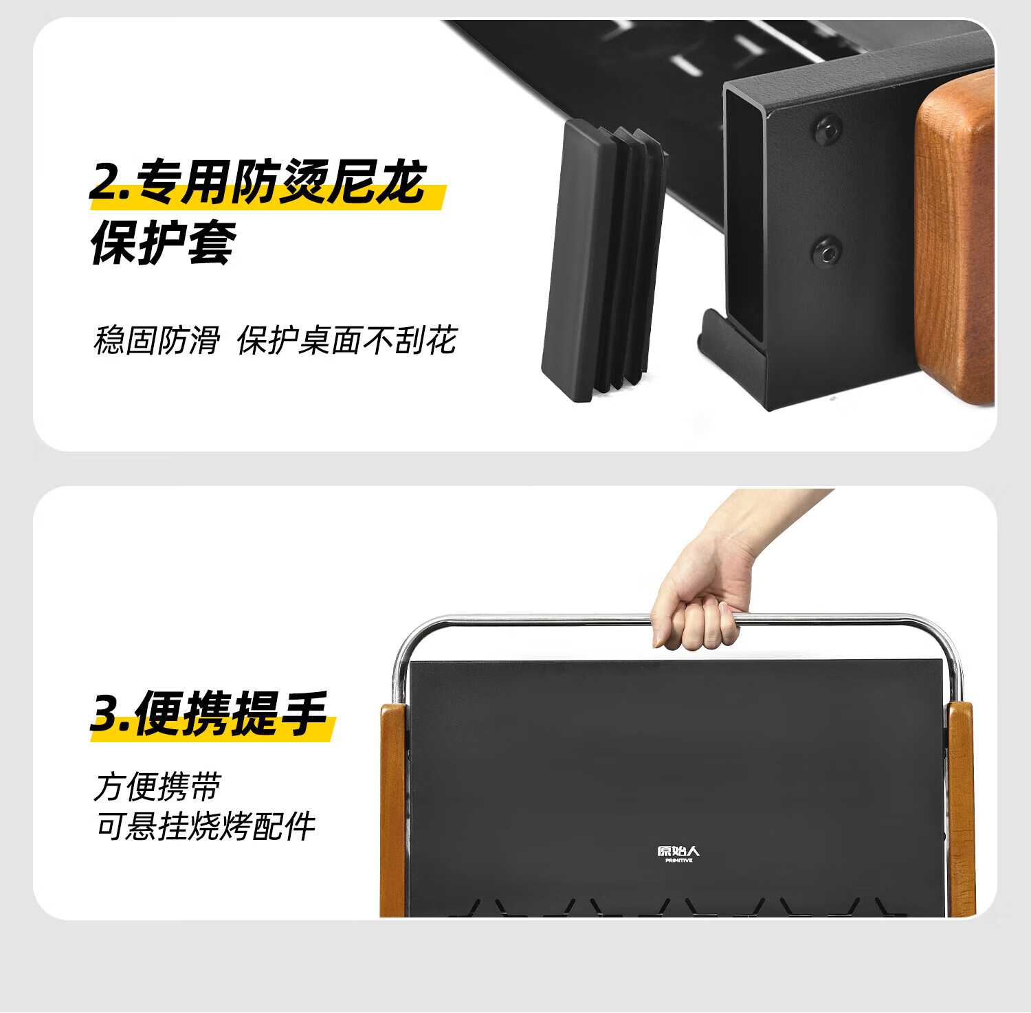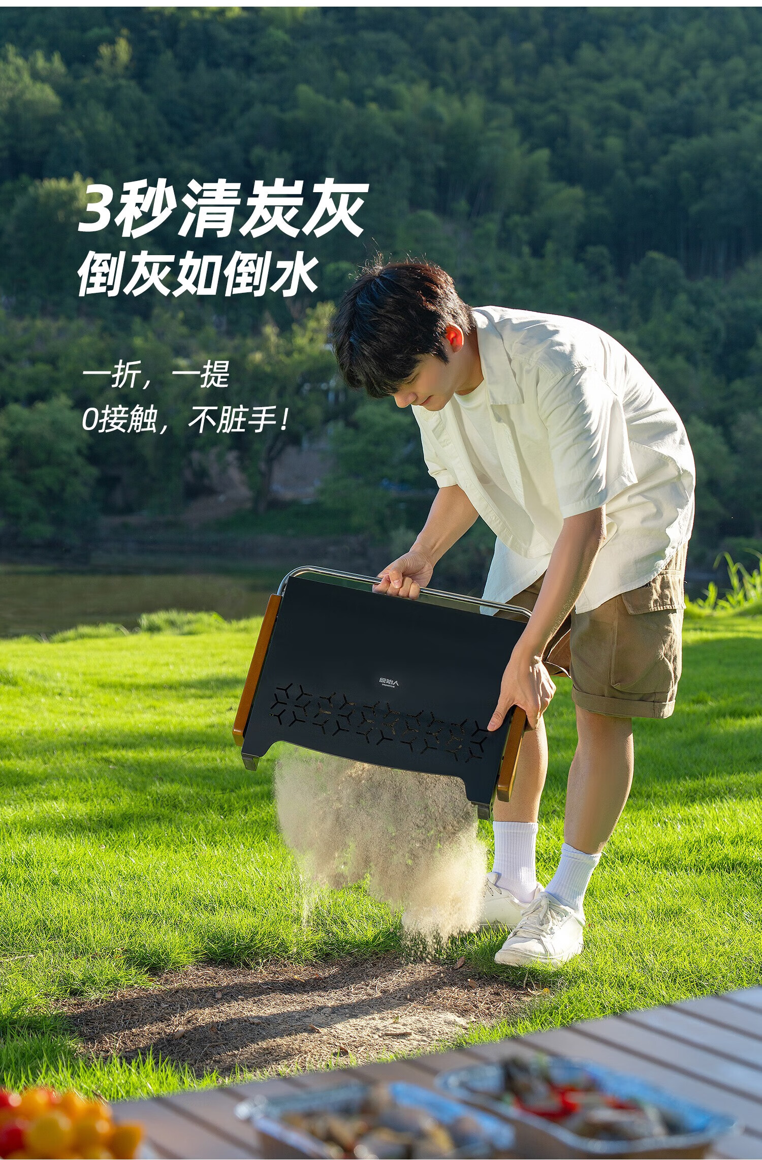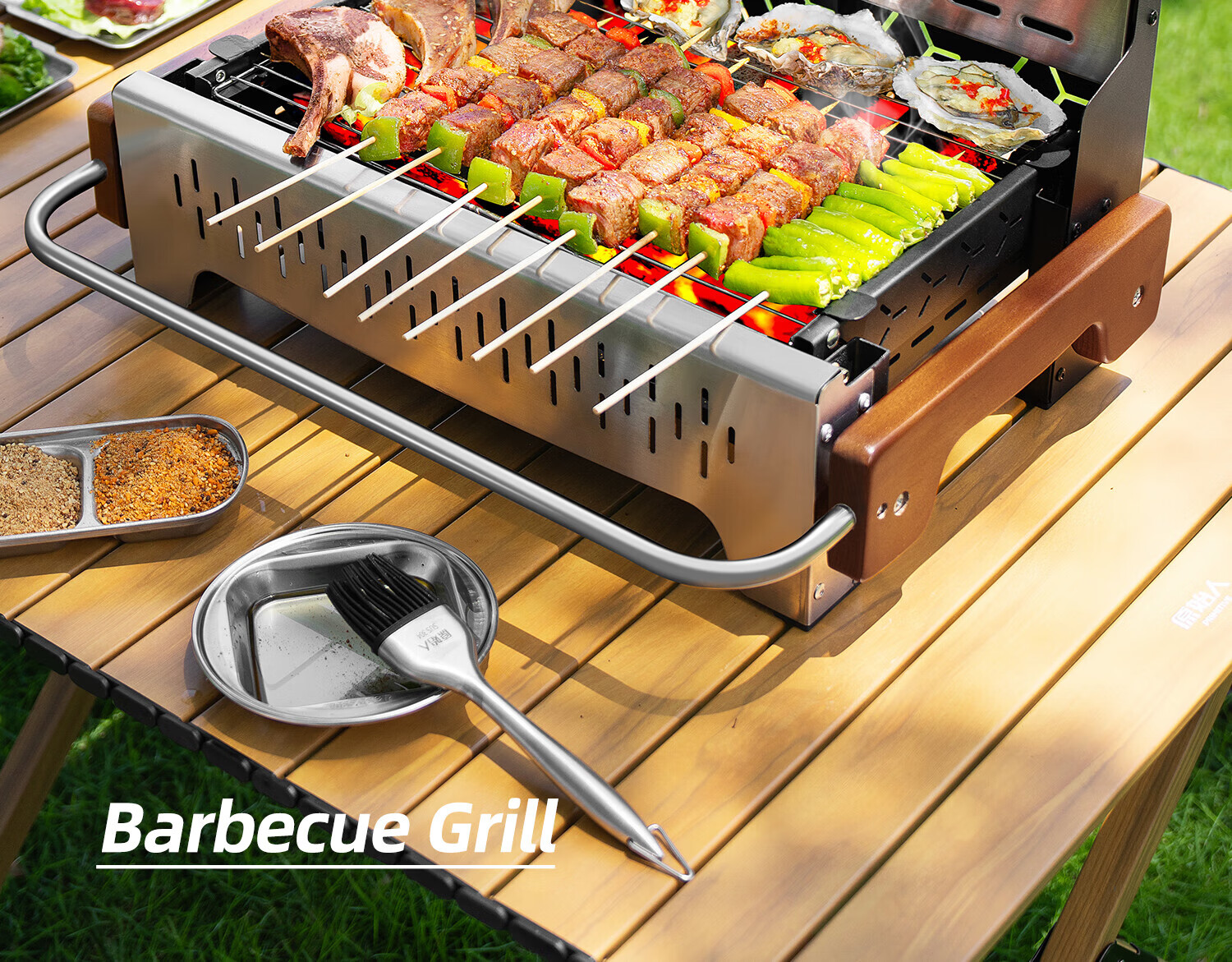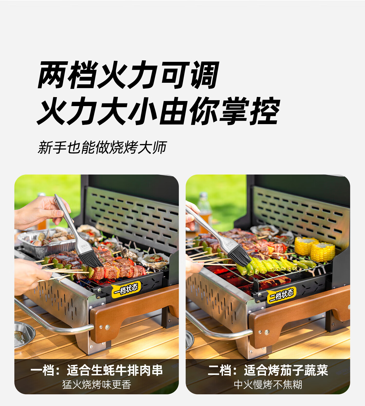 原始人便携式烧烤炉子烧烤架户外木炭烤肉架子家用304折叠木碳烤炉 免安装折叠【2档调温】基础套装