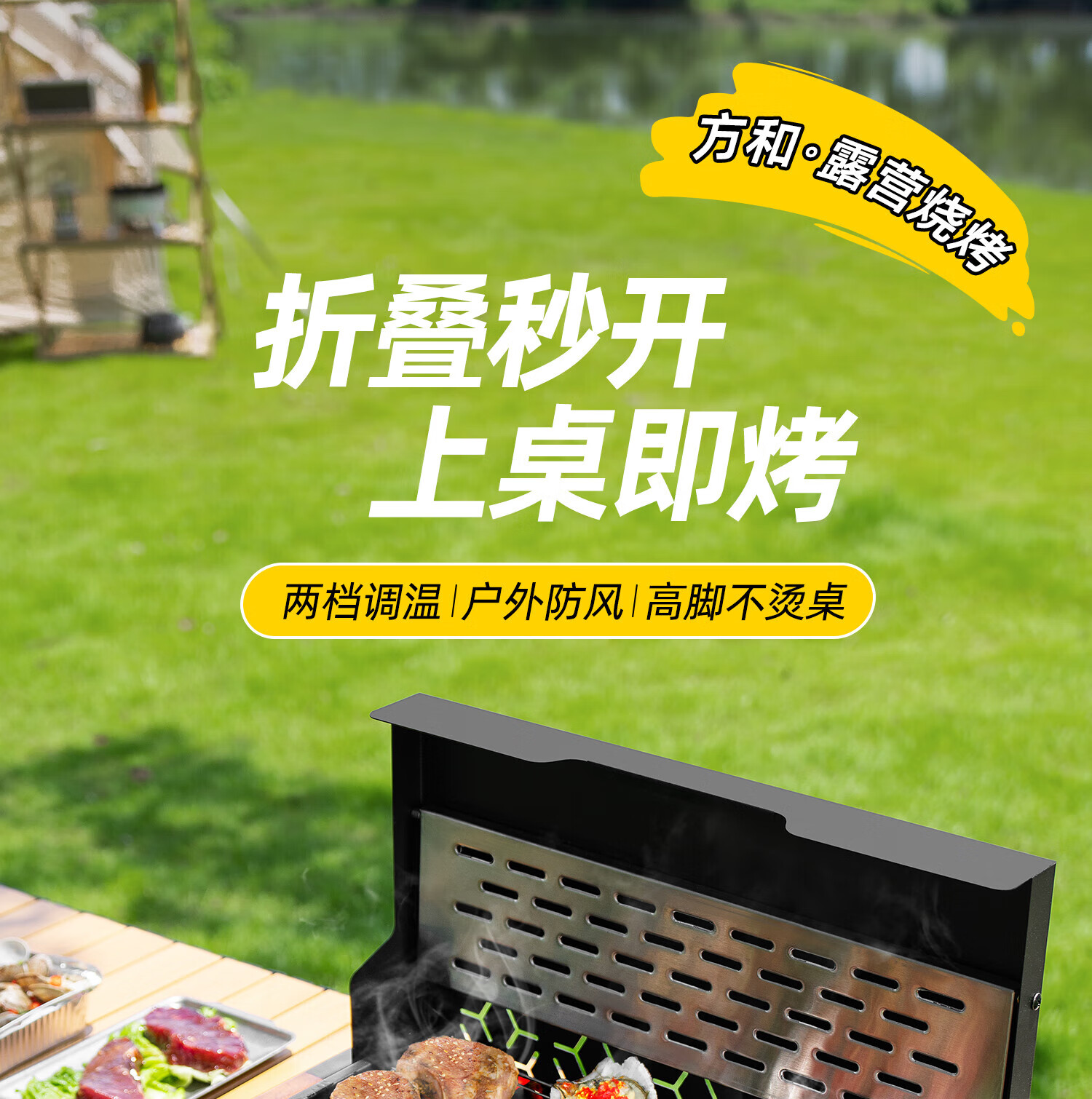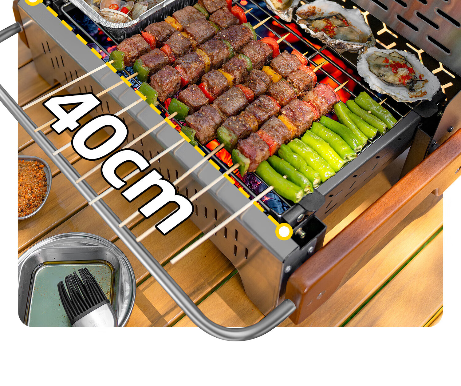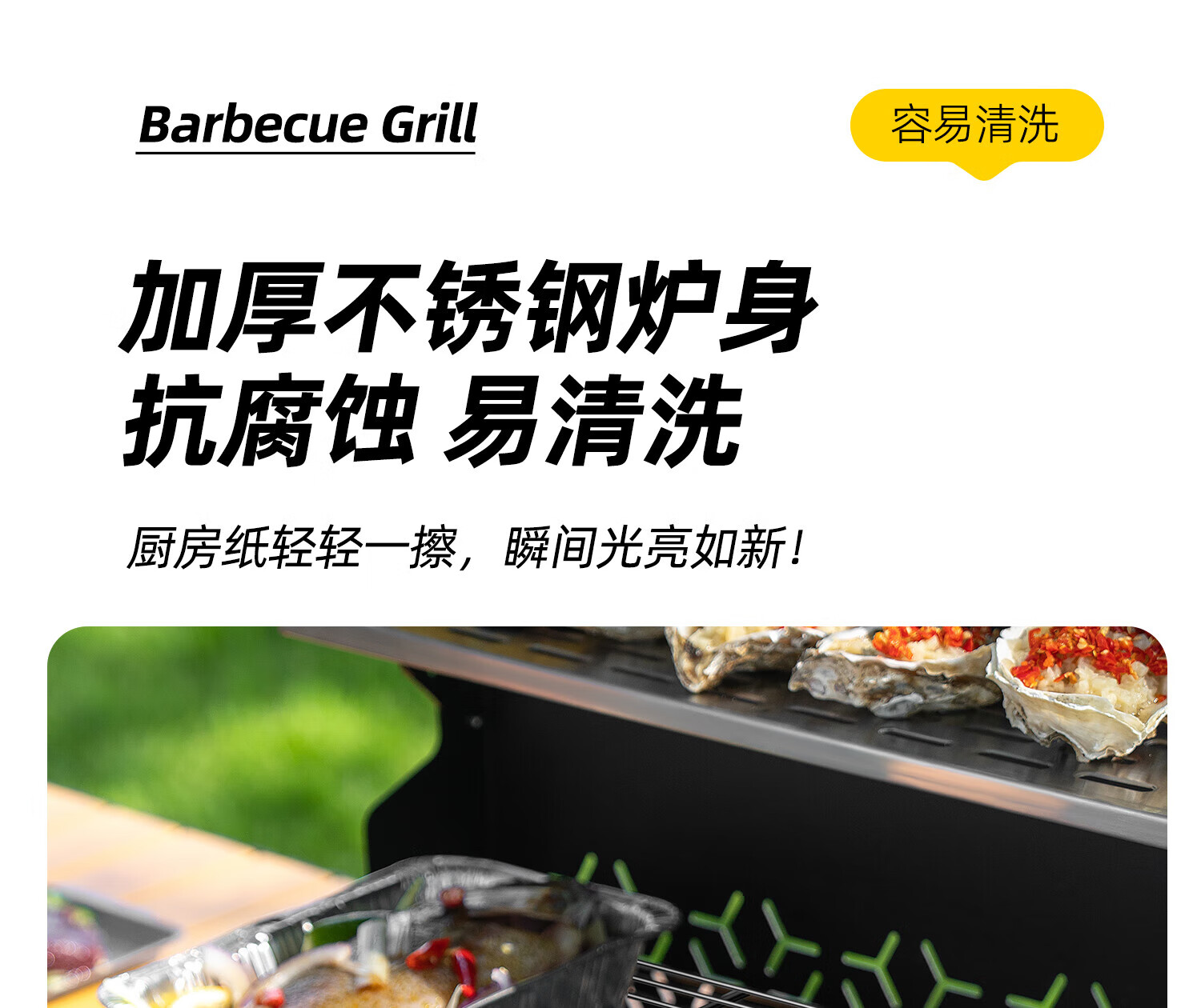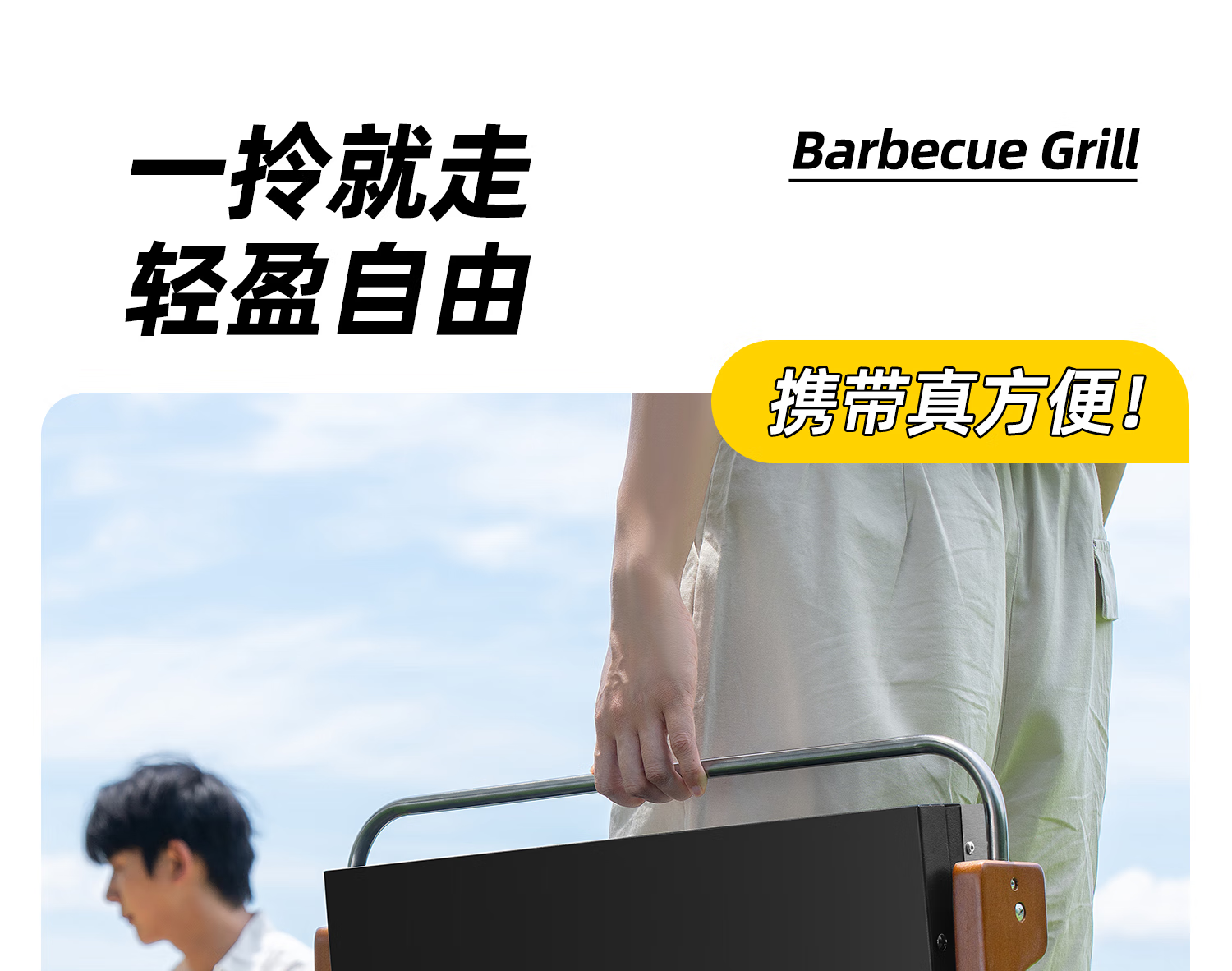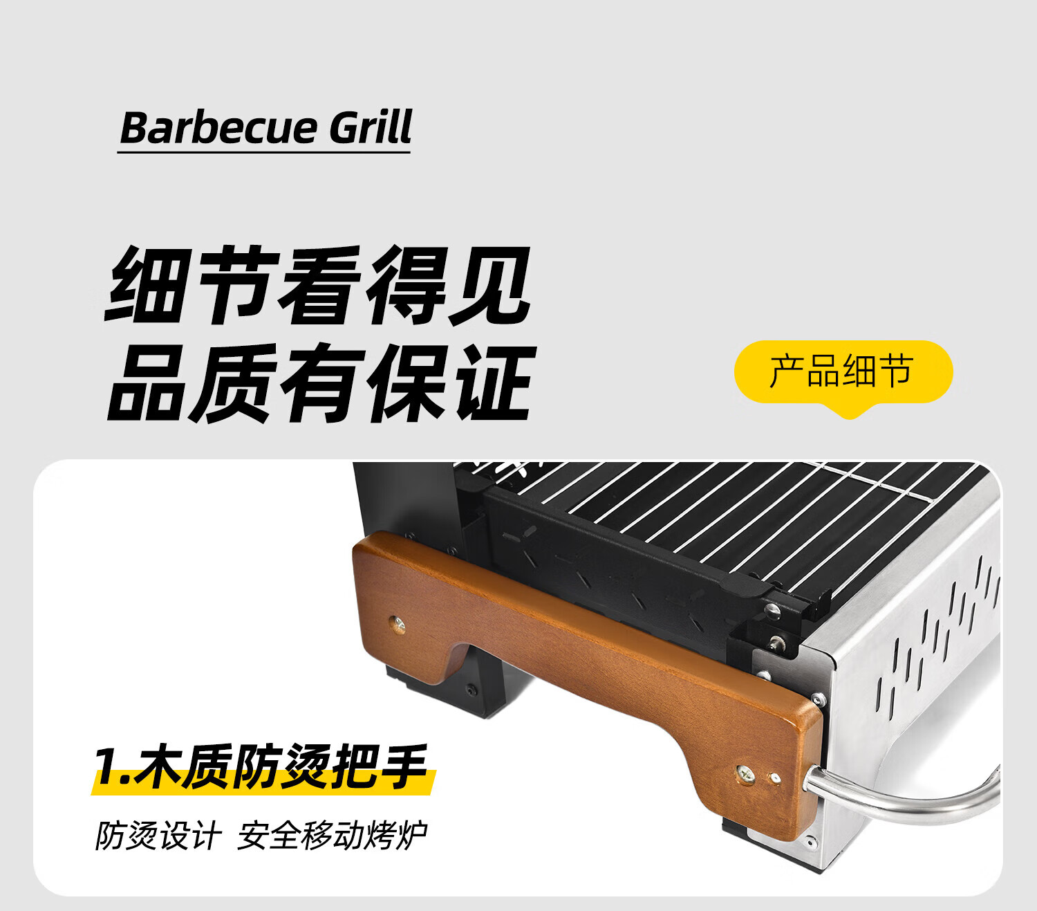 原始人便携式烧烤炉子烧烤架户外木炭烤肉架子家用304折叠木碳烤炉 免安装折叠【2档调温】基础套装