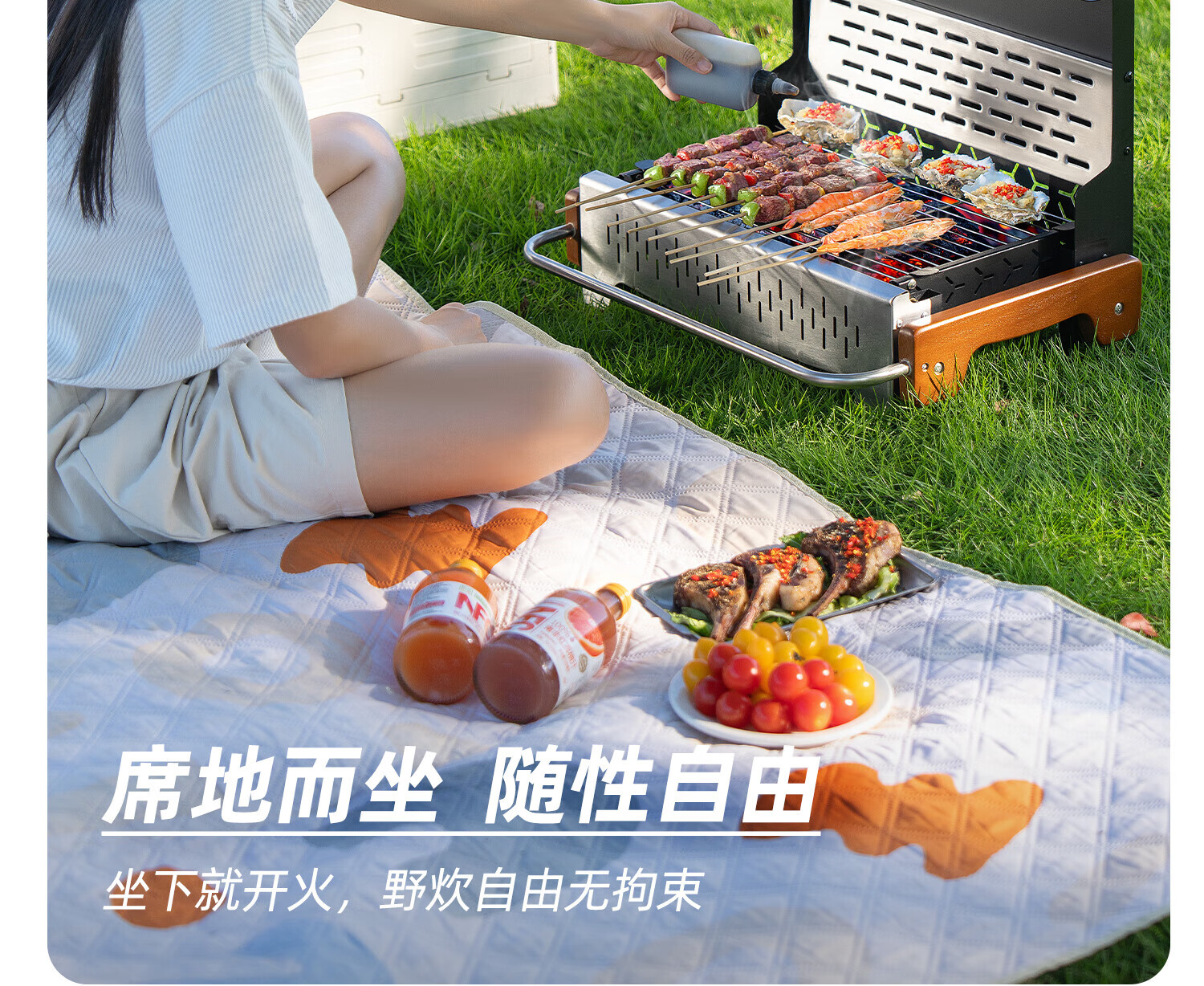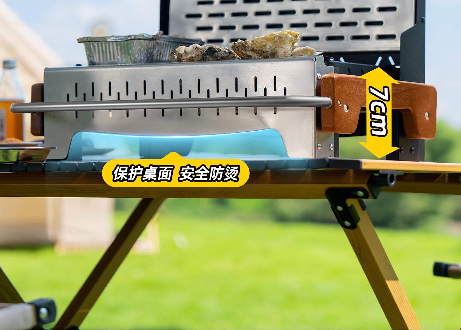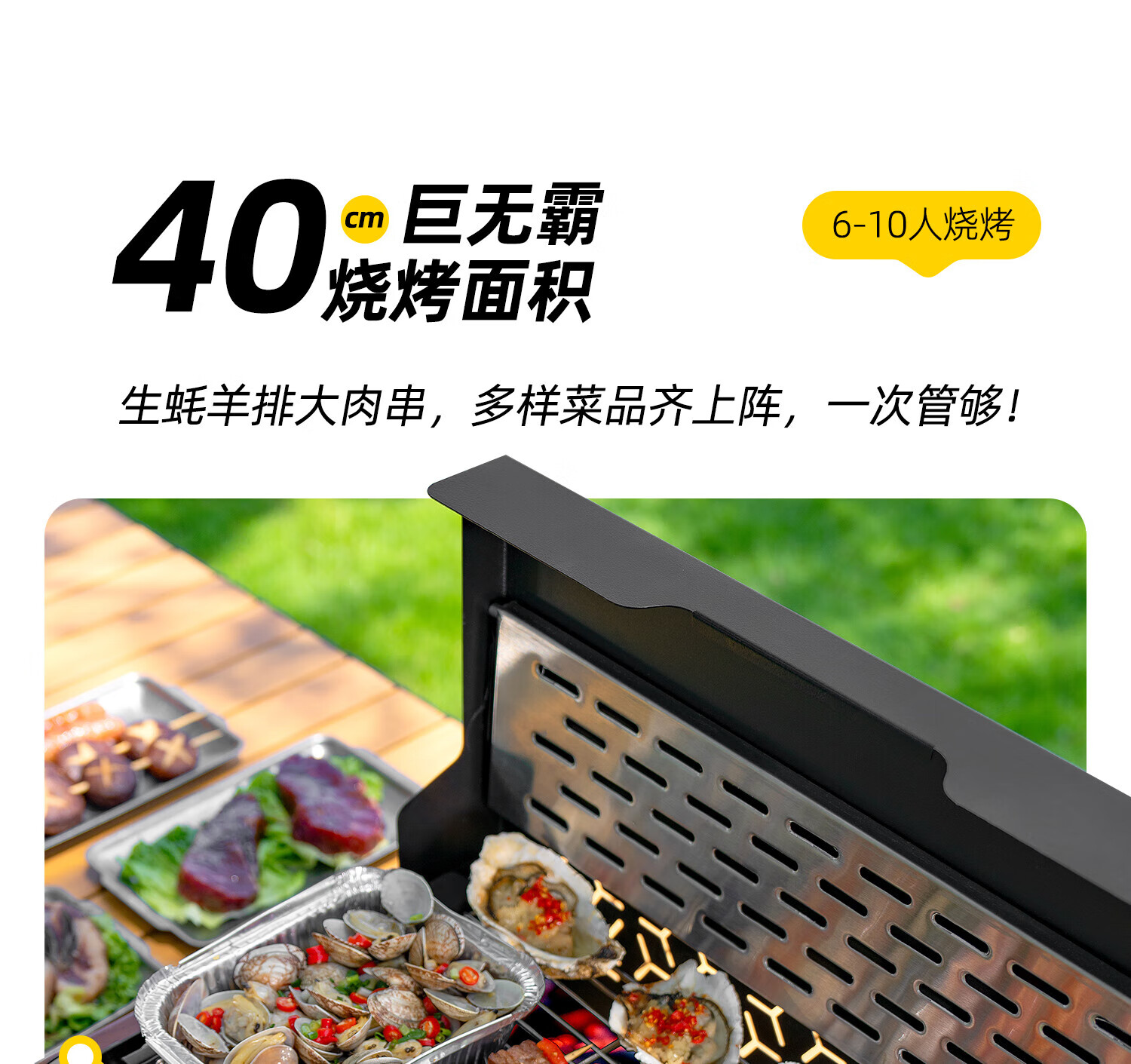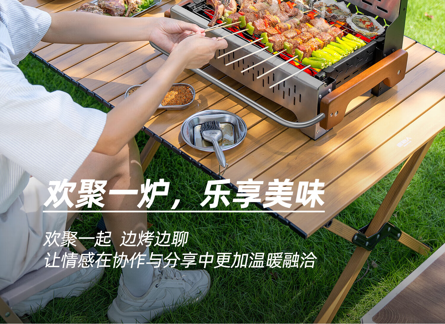 不止荒野户外折叠桌露营桌子可折叠便携式液压杆碳钢合金多功能户外茶桌 碳烤款【碳烤炉+折叠桌+灯杆+收纳袋】 自动液压杆+高强度碳钢支架
