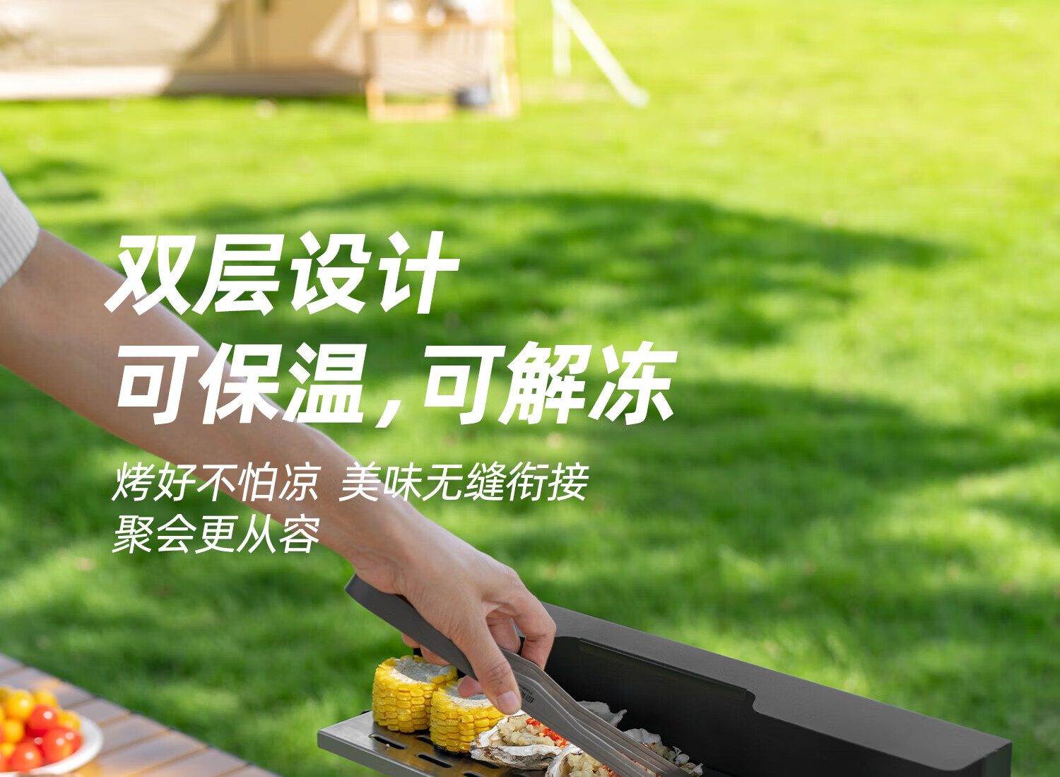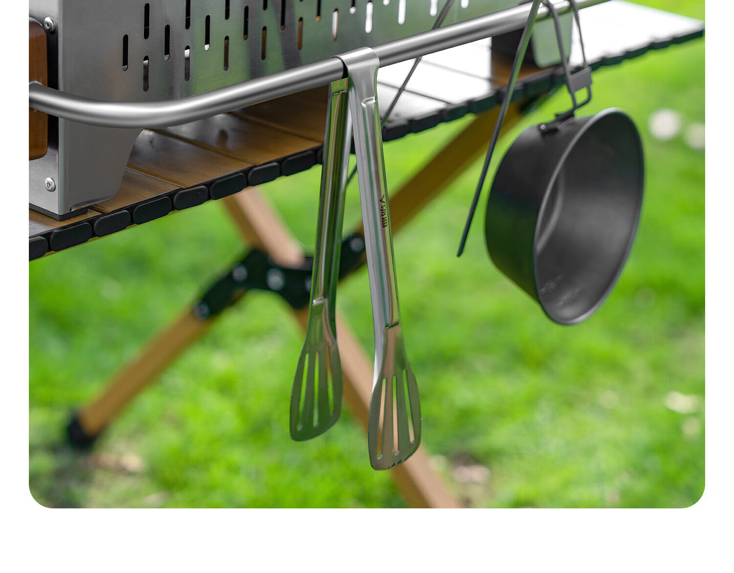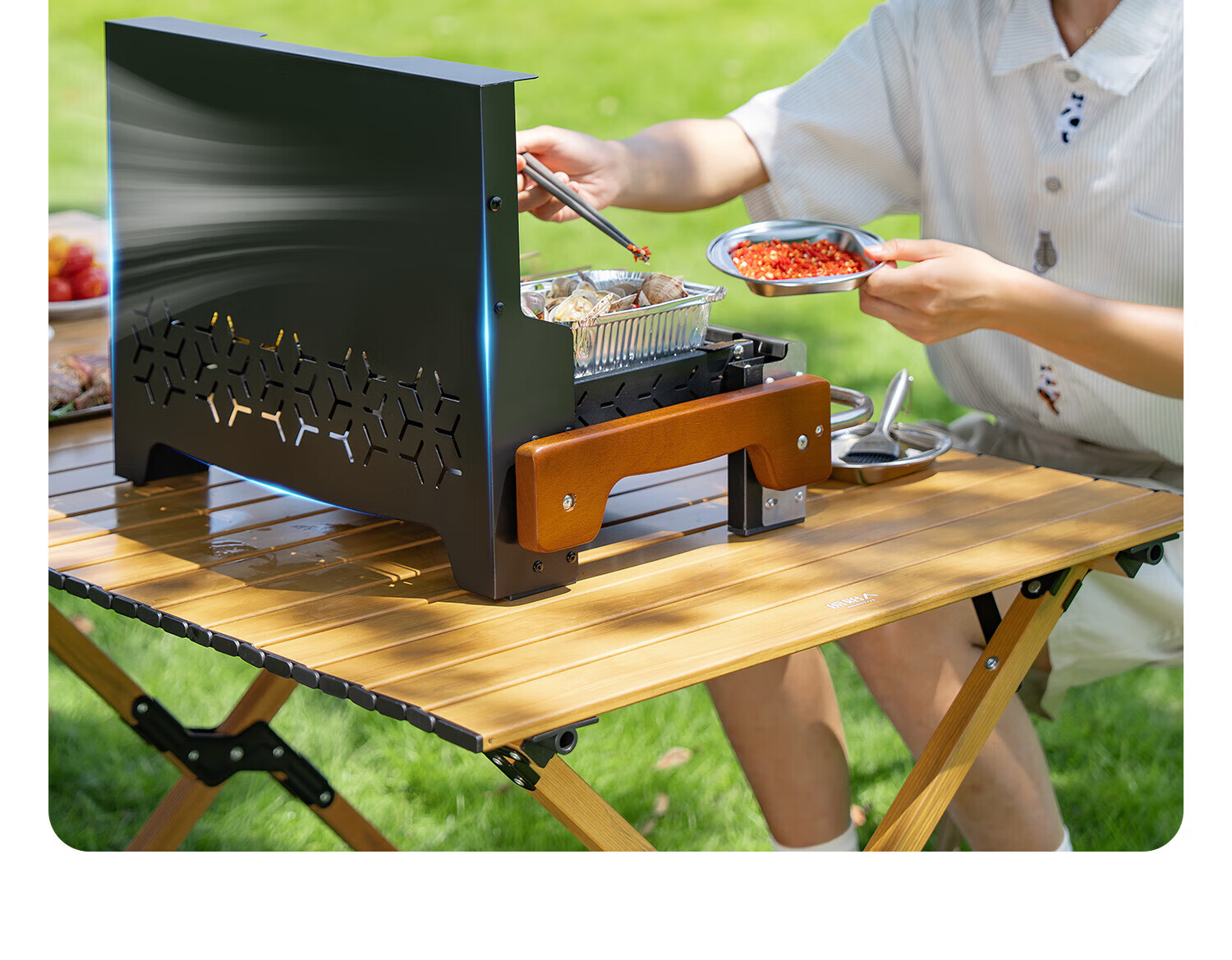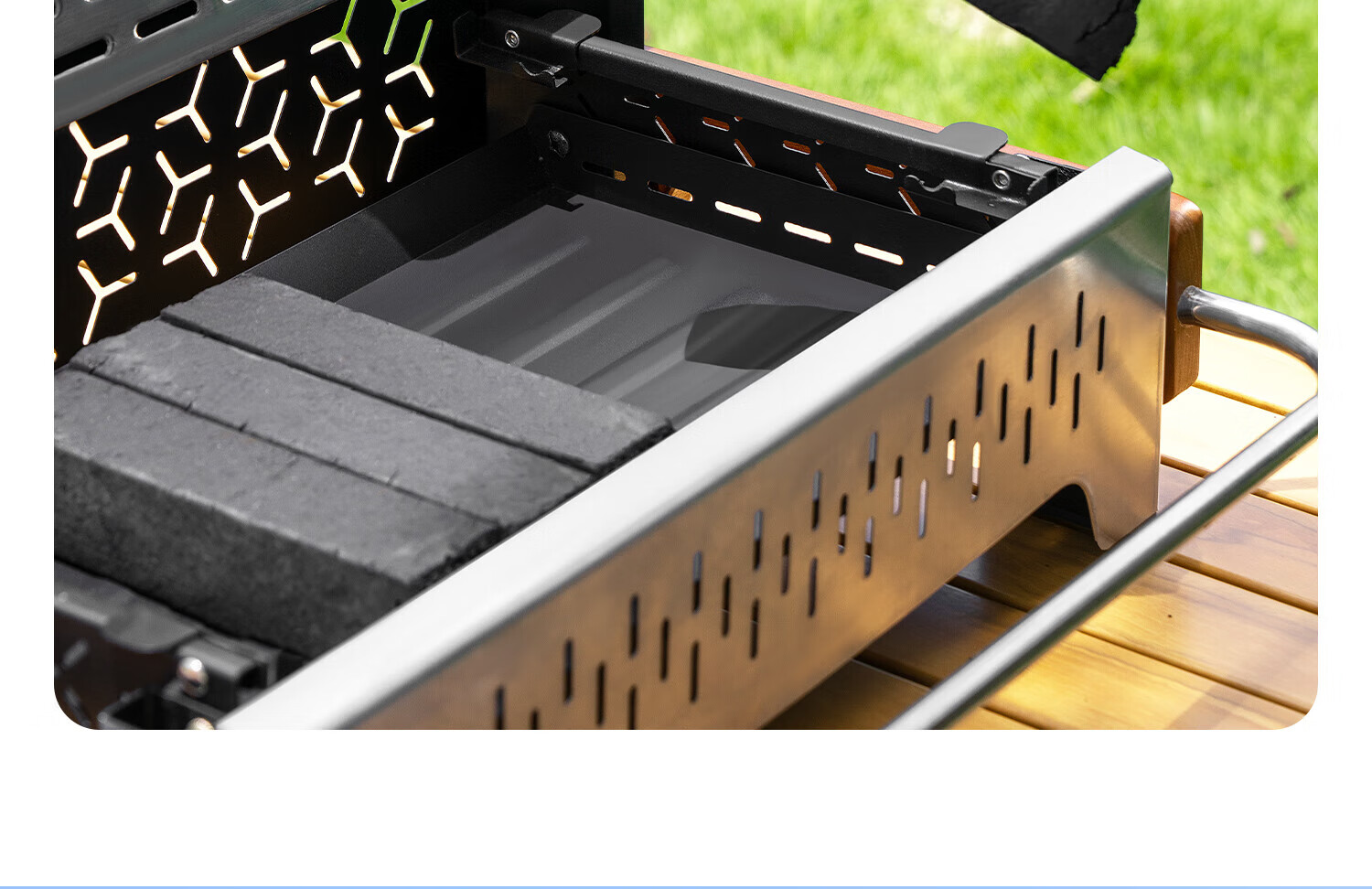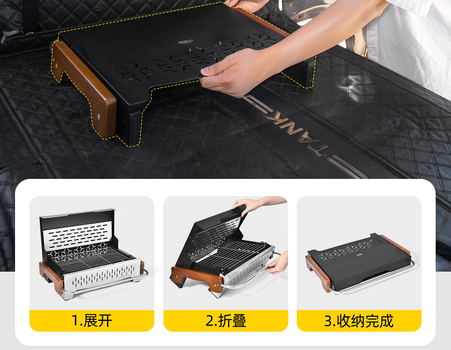不止荒野户外折叠桌露营桌子可折叠便携式液压杆碳钢合金多功能户外茶桌 碳烤款【碳烤炉+折叠桌+灯杆+收纳袋】 自动液压杆+高强度碳钢支架
