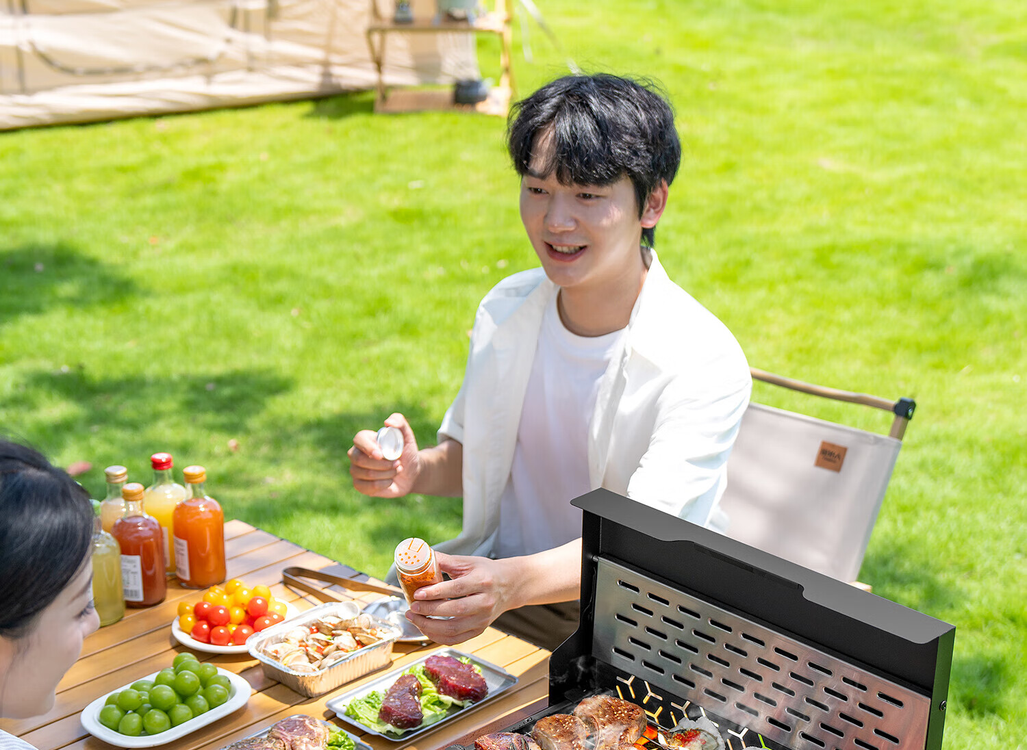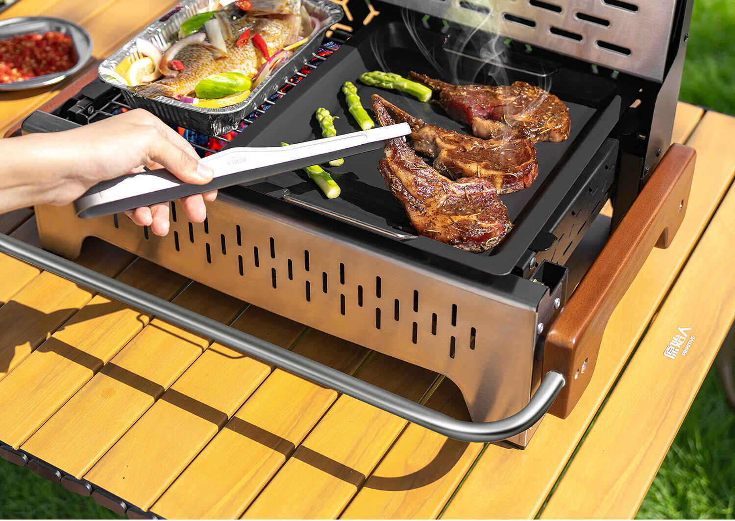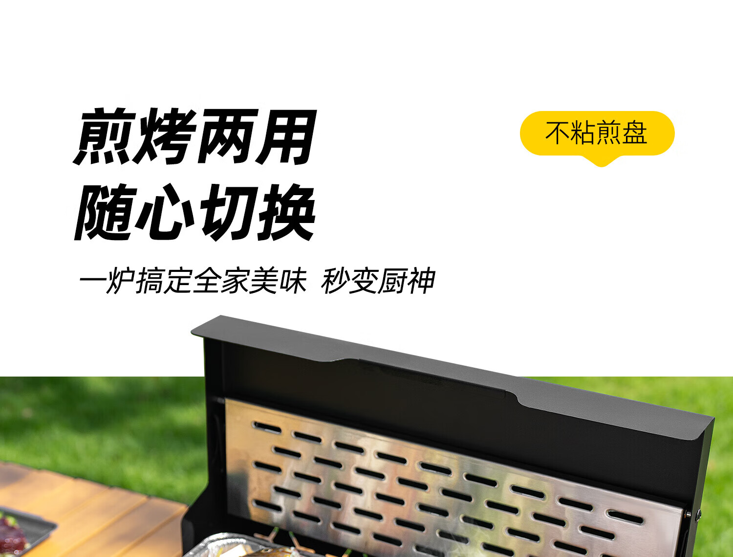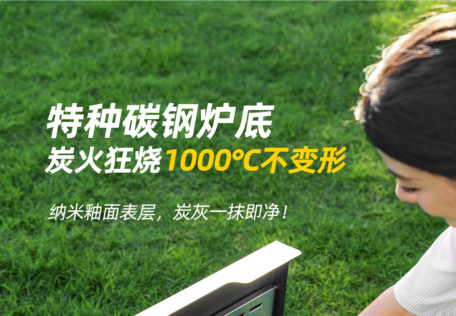 不止荒野户外折叠桌露营桌子可折叠便携式液压杆碳钢合金多功能户外茶桌 碳烤款【碳烤炉+折叠桌+灯杆+收纳袋】 自动液压杆+高强度碳钢支架