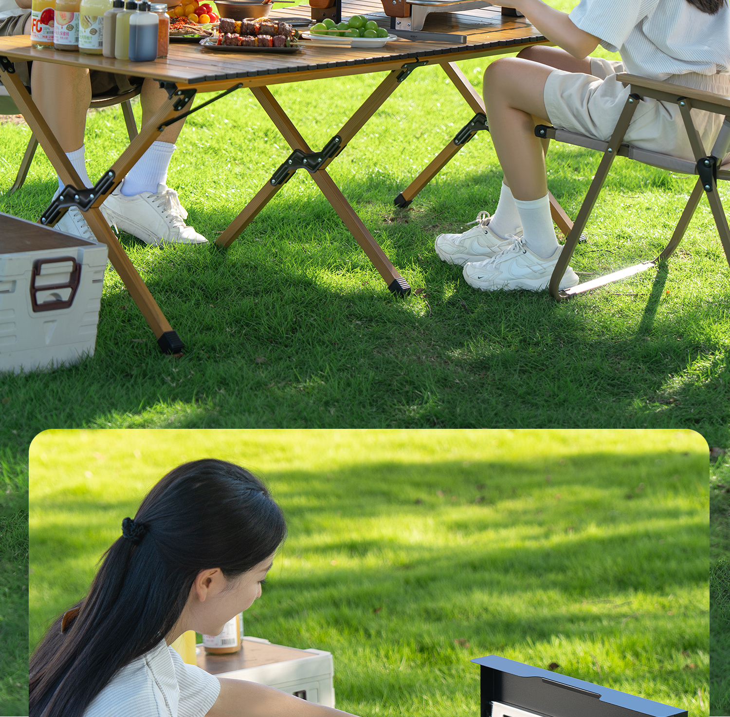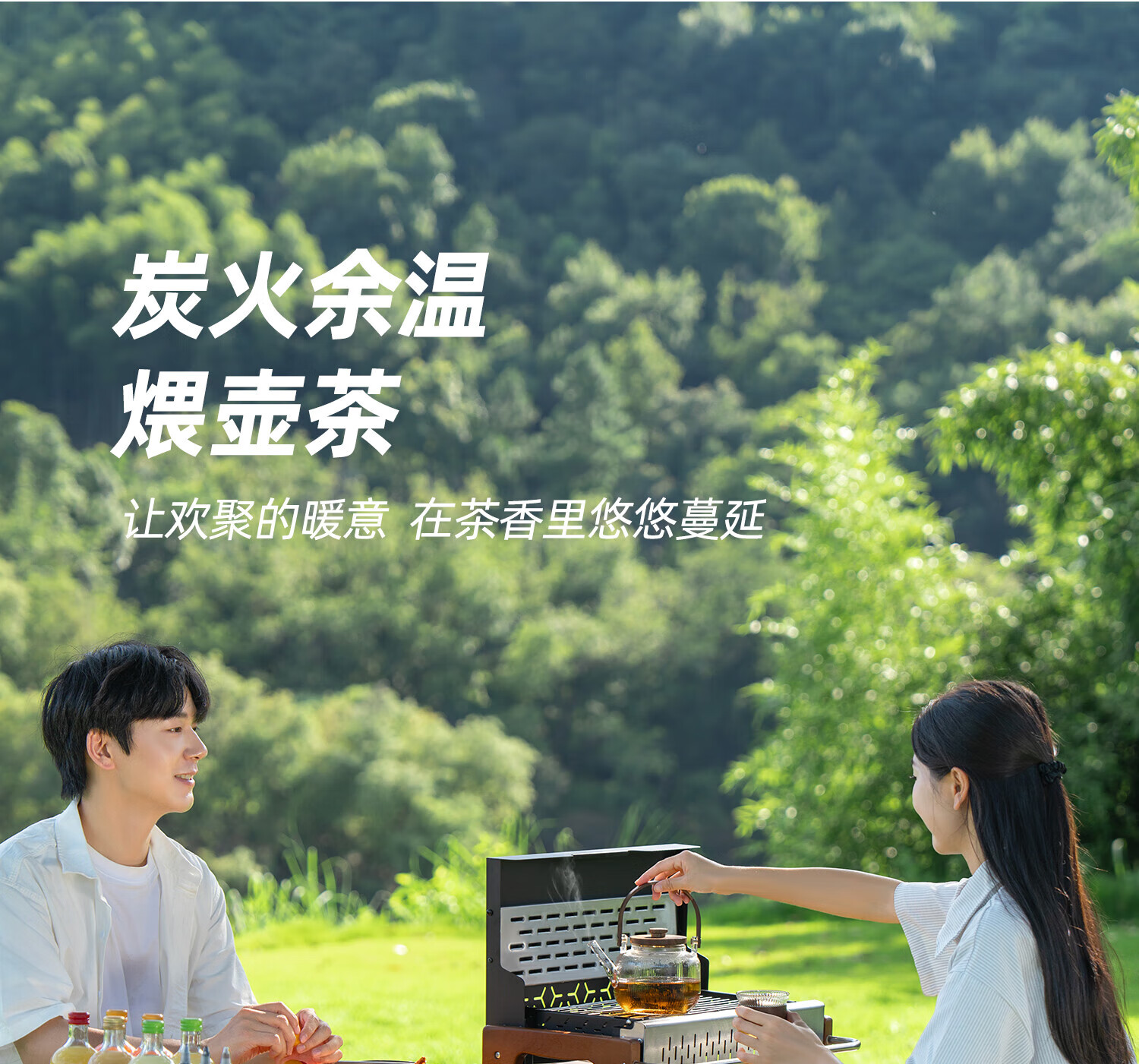 骆驼(CAMEL)JEANS围炉煮茶炉全套烤火炉火盆烧烤架桌户外炭炉家用室内 【喜喜】木纹色围炉桌_稳固加粗