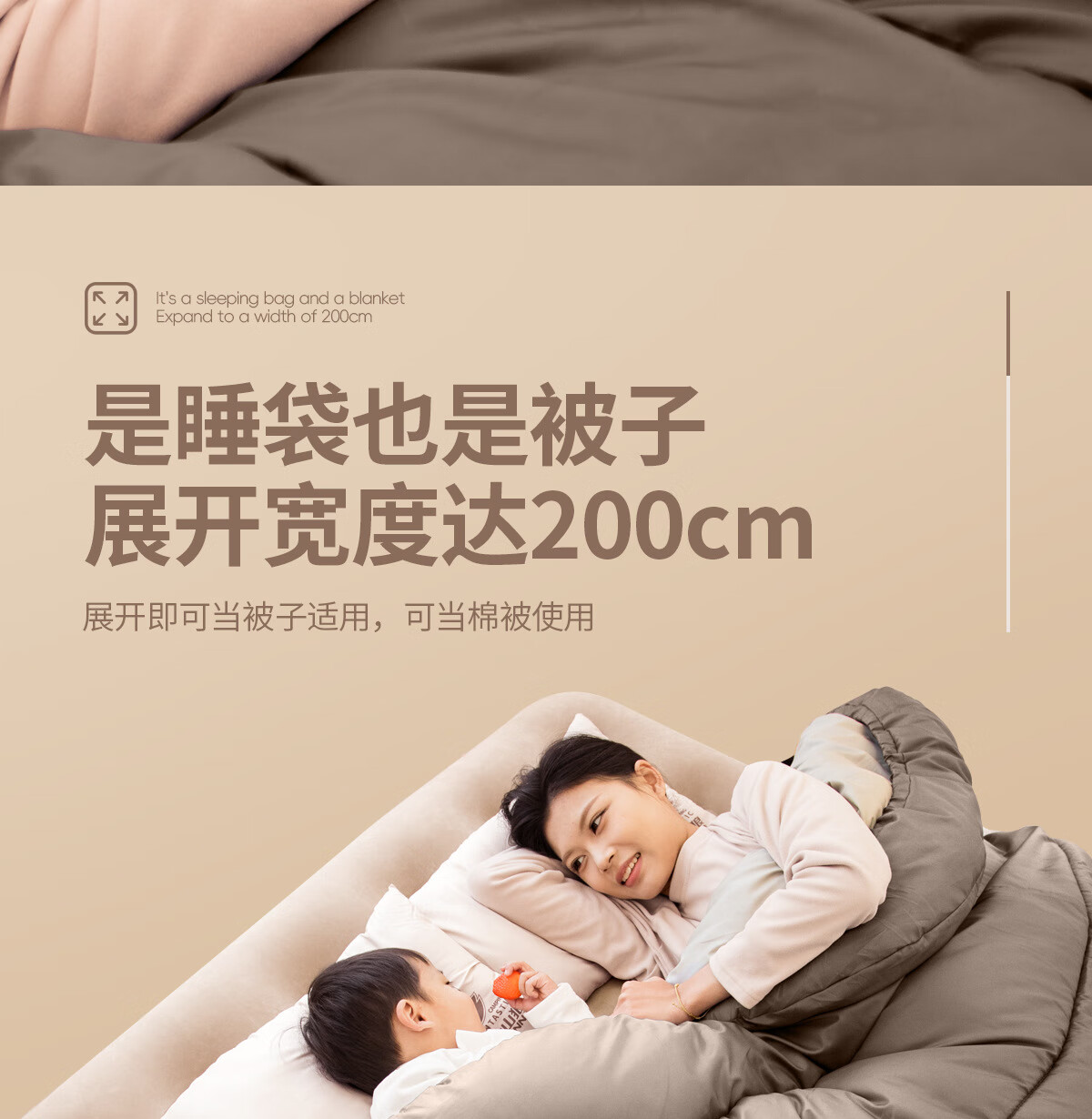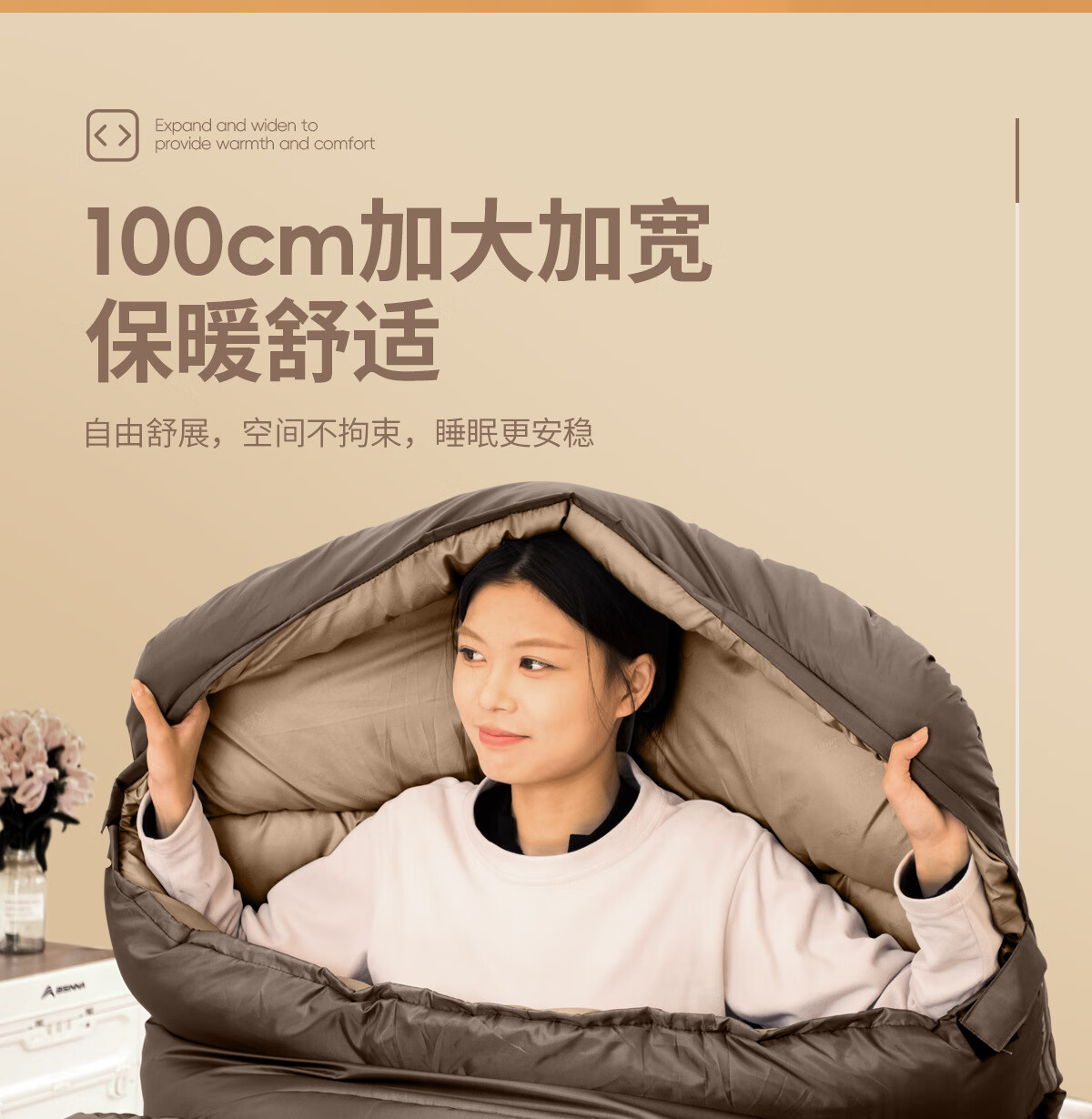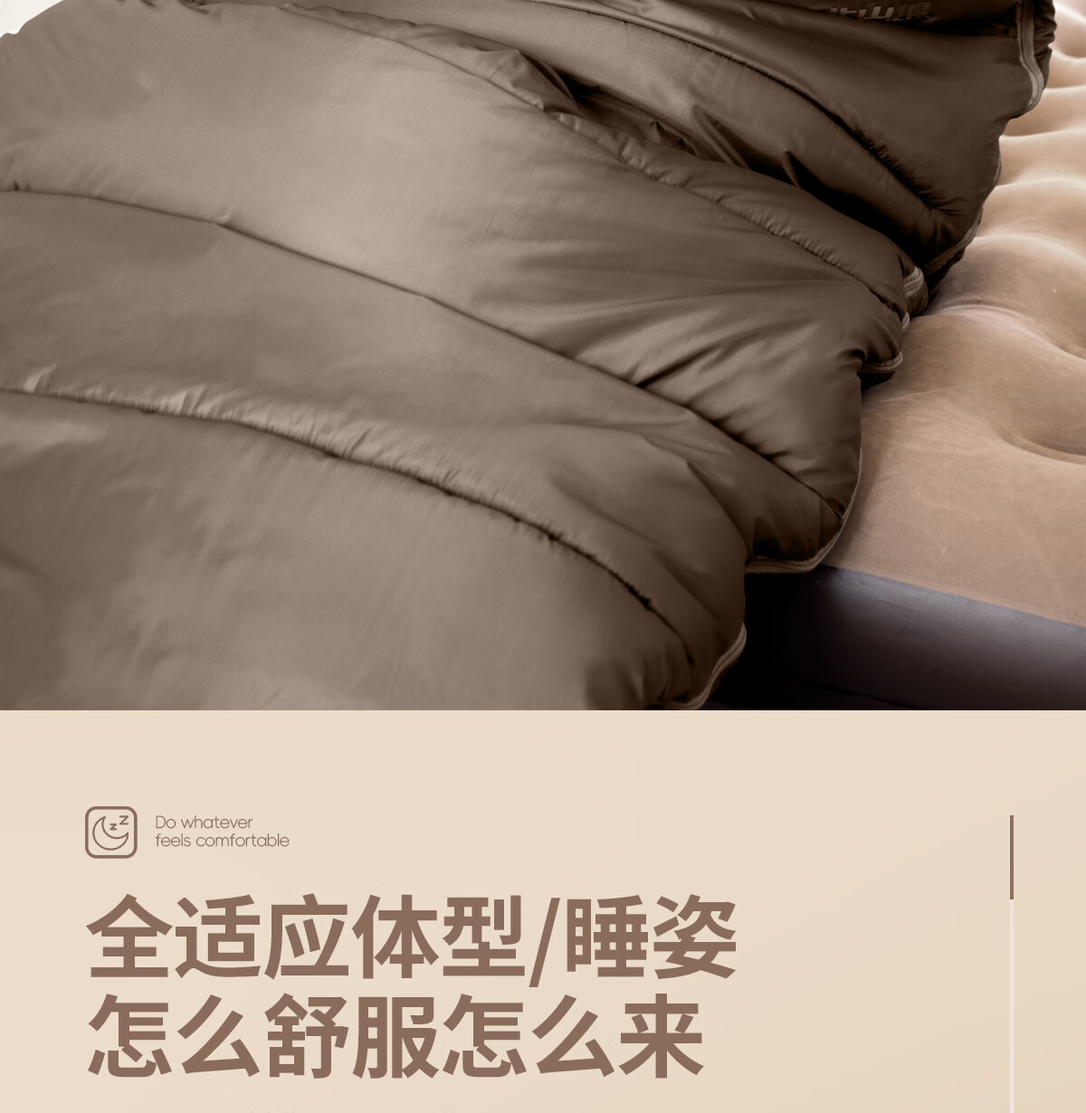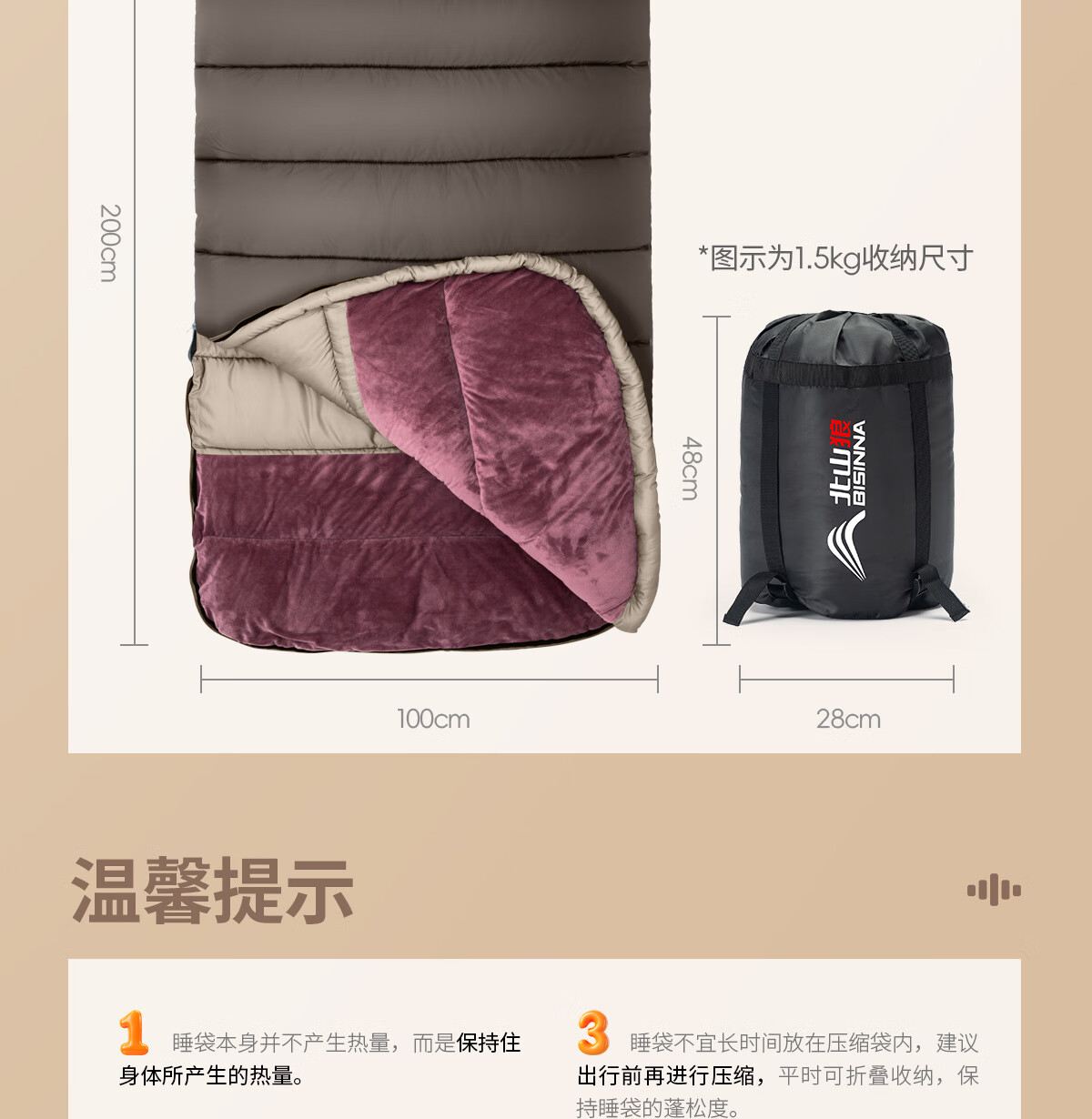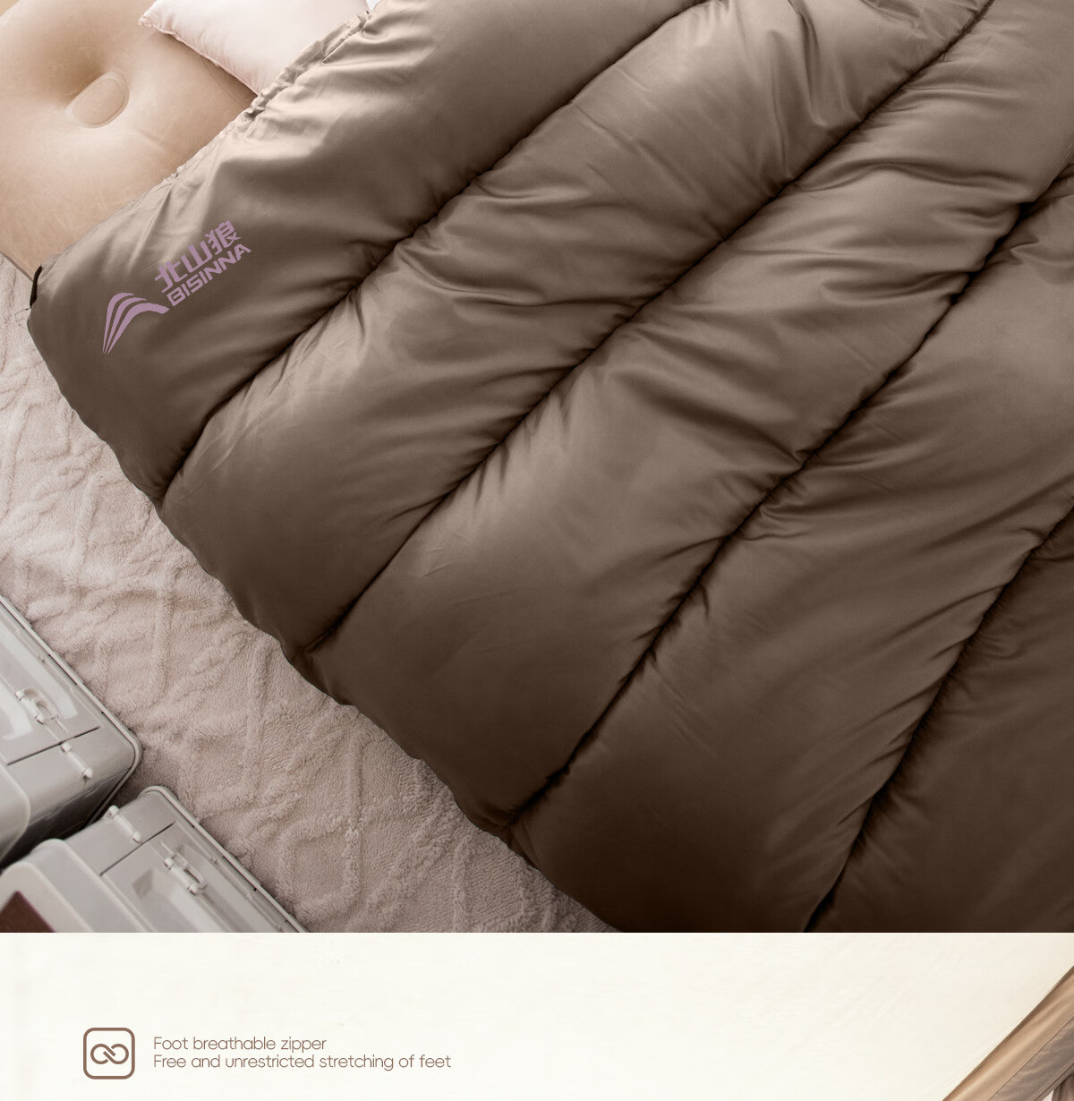 北山狼户外睡袋四季通用款加宽加厚防寒露营车用办公室午睡冬天被子两用 2.0kg棕褐色+收纳袋