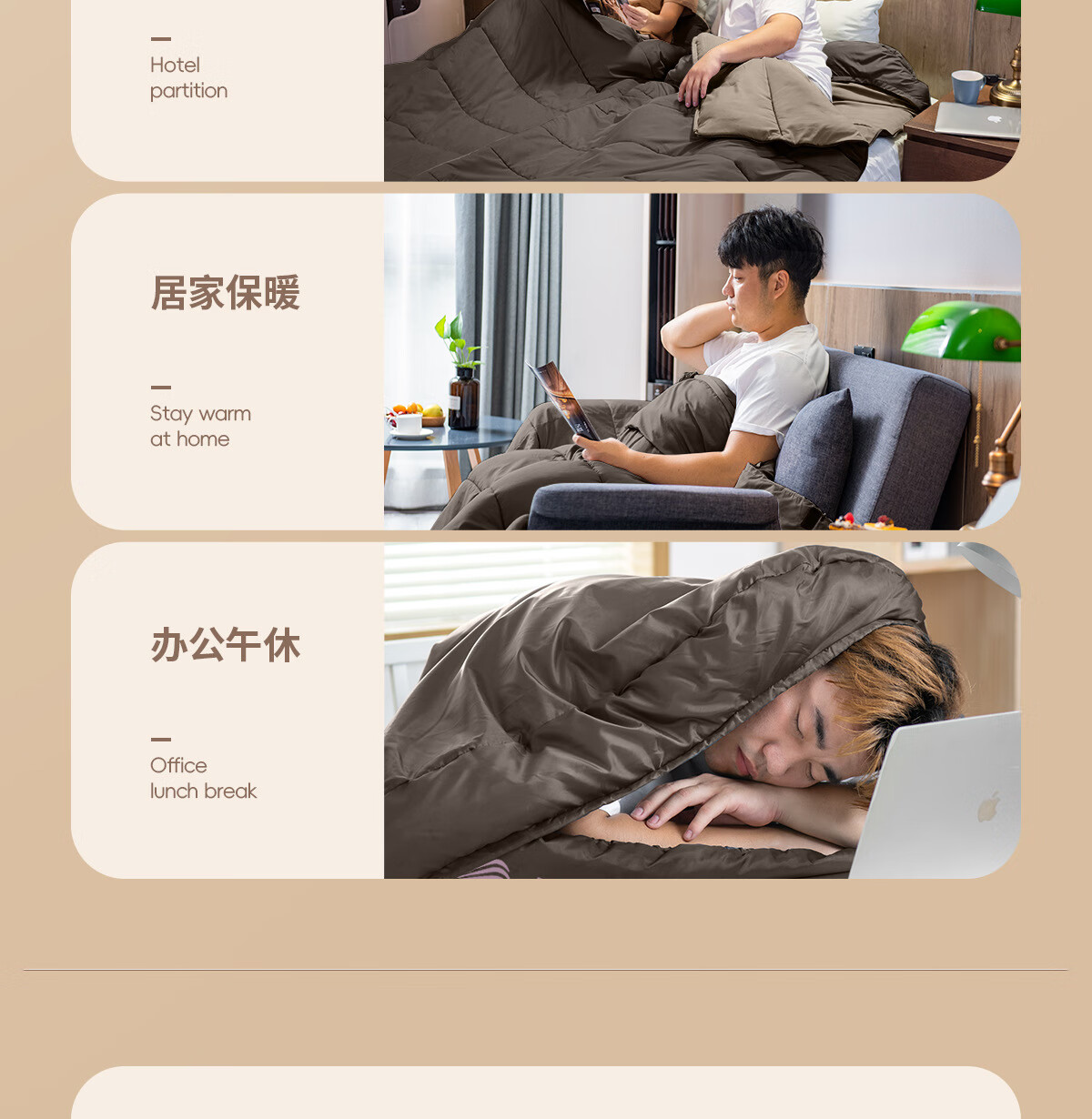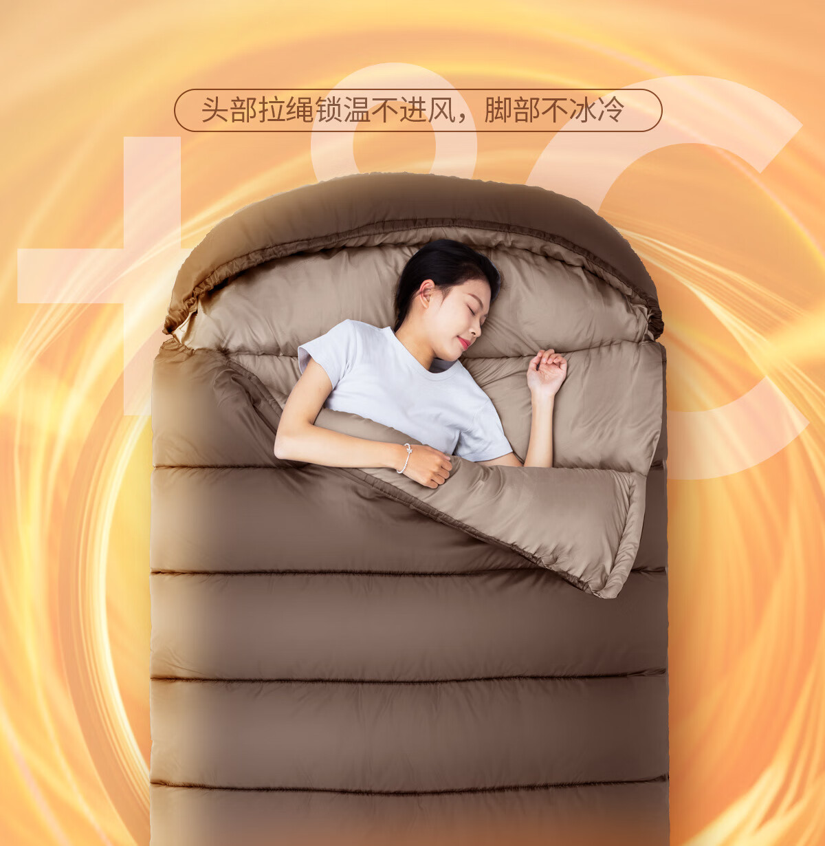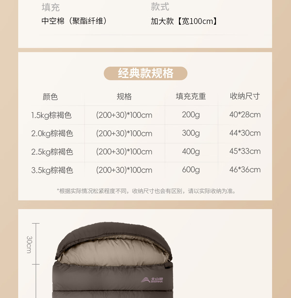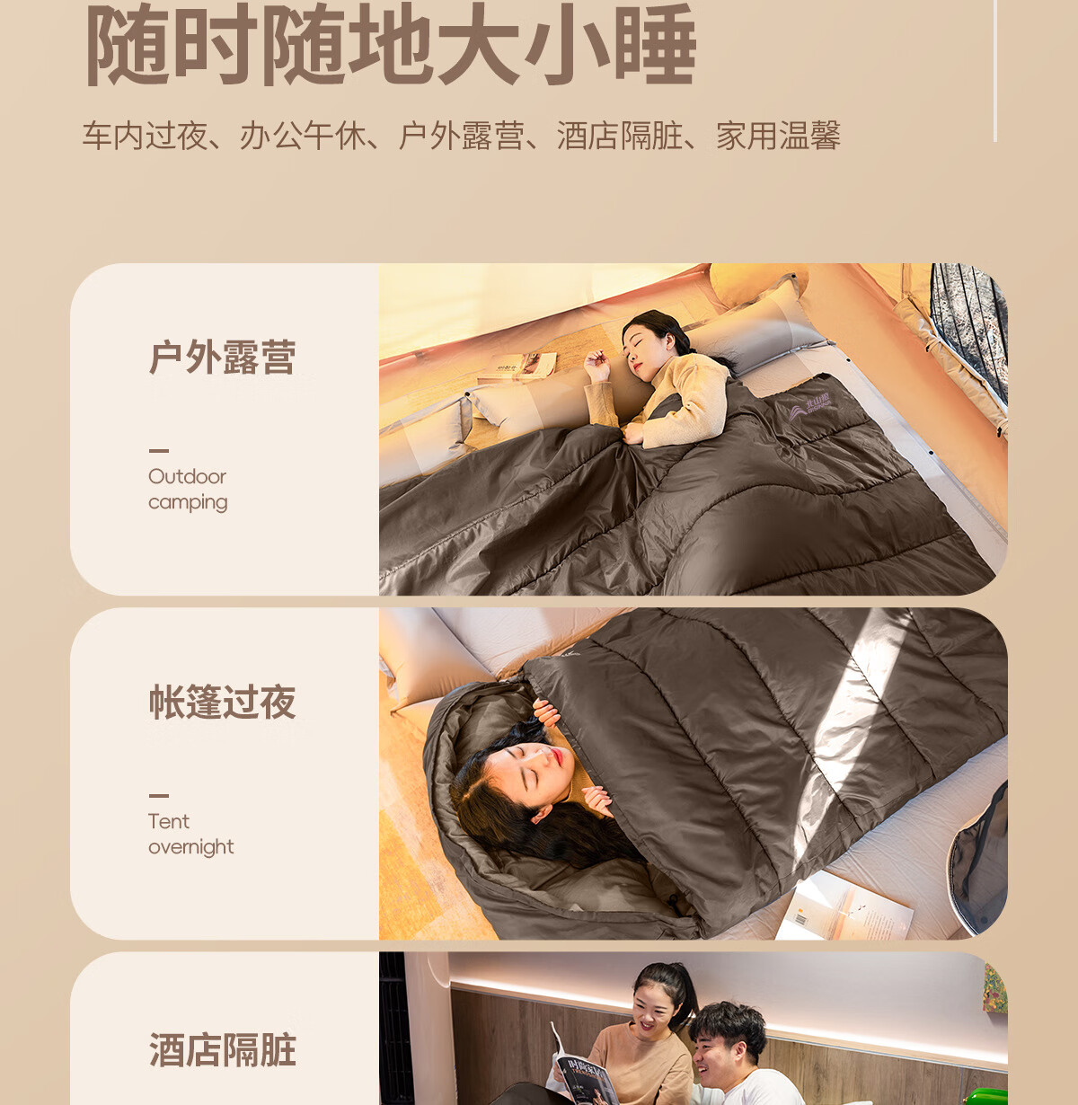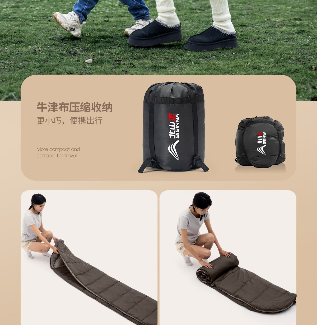 北山狼户外睡袋四季通用款加宽加厚防寒露营车用办公室午睡冬天被子两用 2.0kg棕褐色+收纳袋