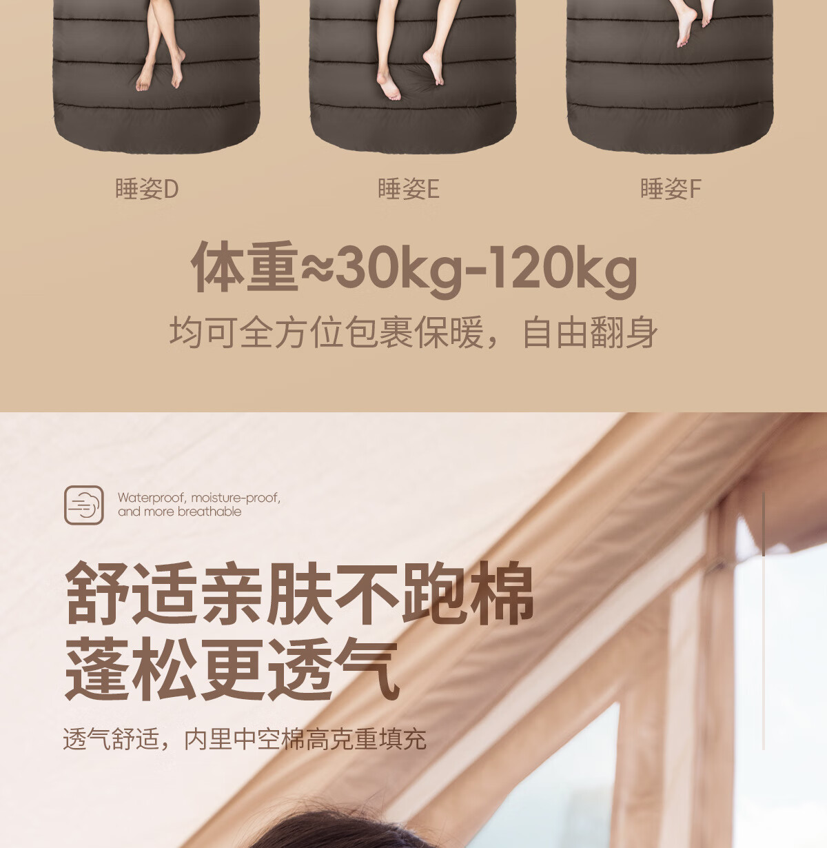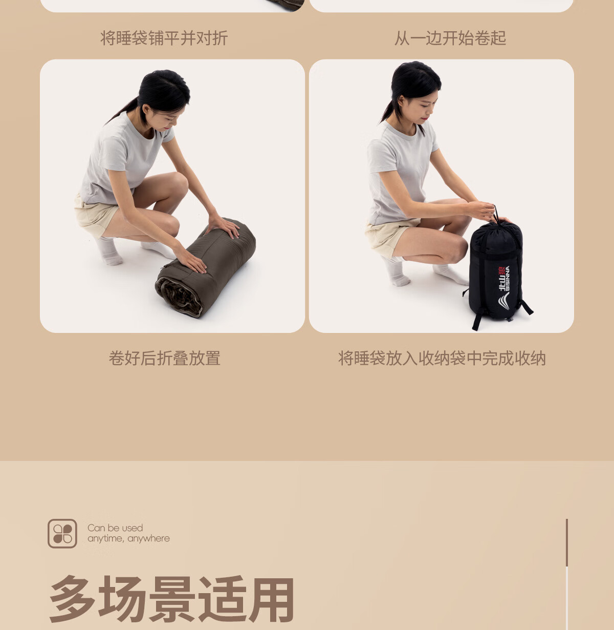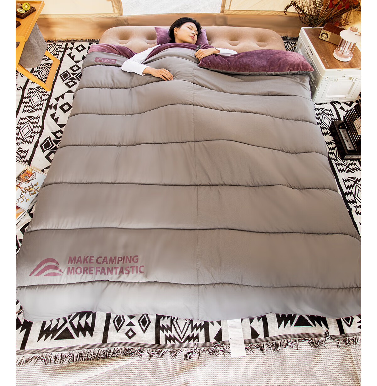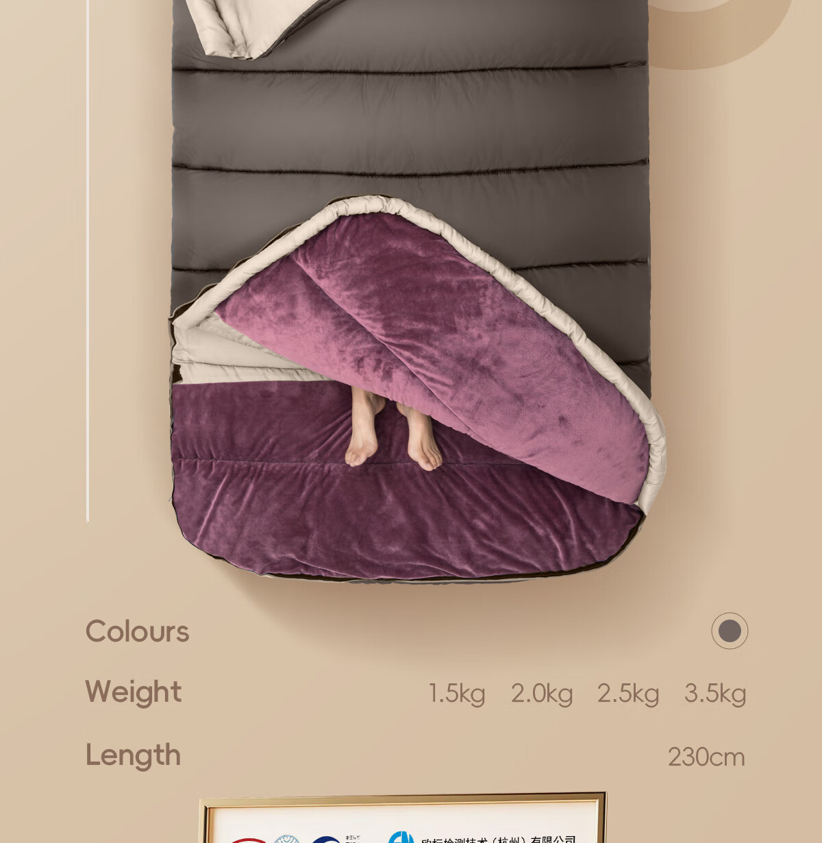 北山狼户外睡袋四季通用款加宽加厚防寒露营车用办公室午睡冬天被子两用 2.0kg棕褐色+收纳袋