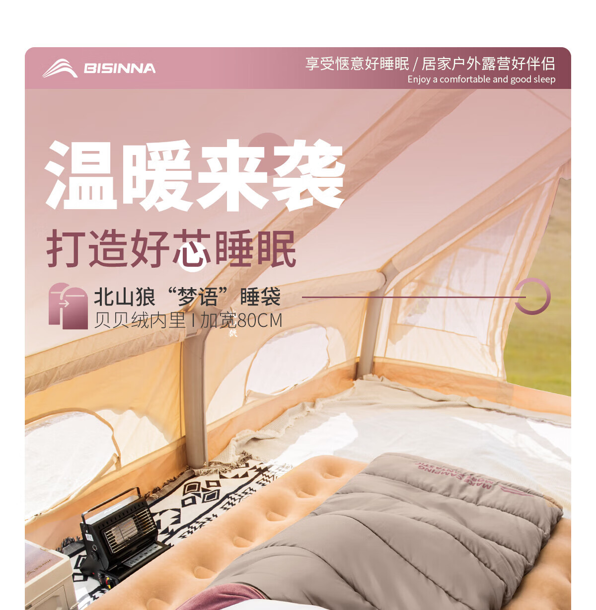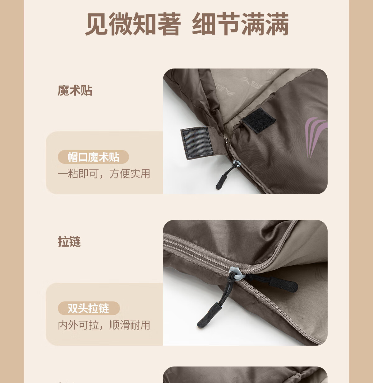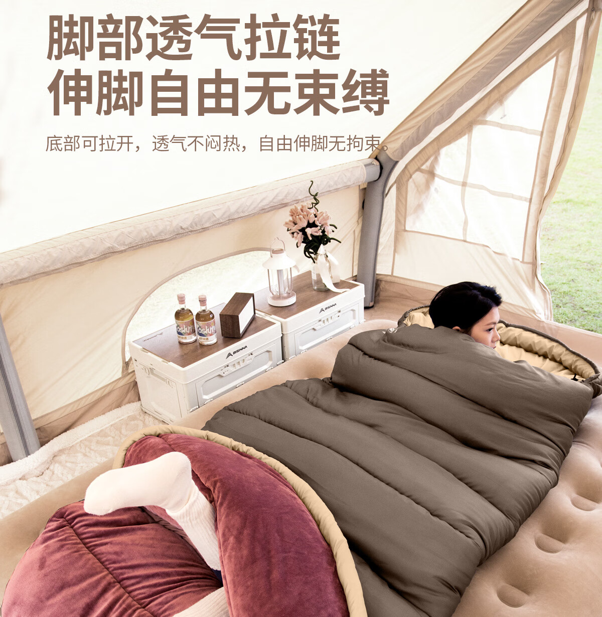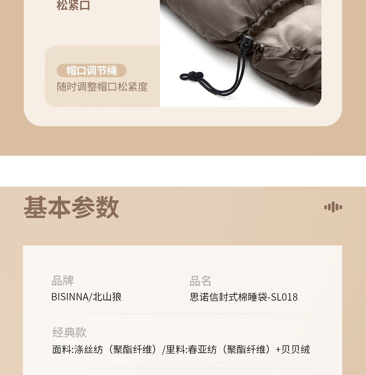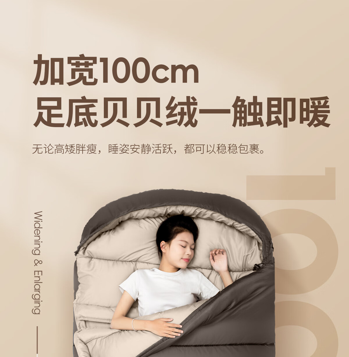 北山狼户外睡袋四季通用款加宽加厚防寒露营车用办公室午睡冬天被子两用 2.0kg棕褐色+收纳袋