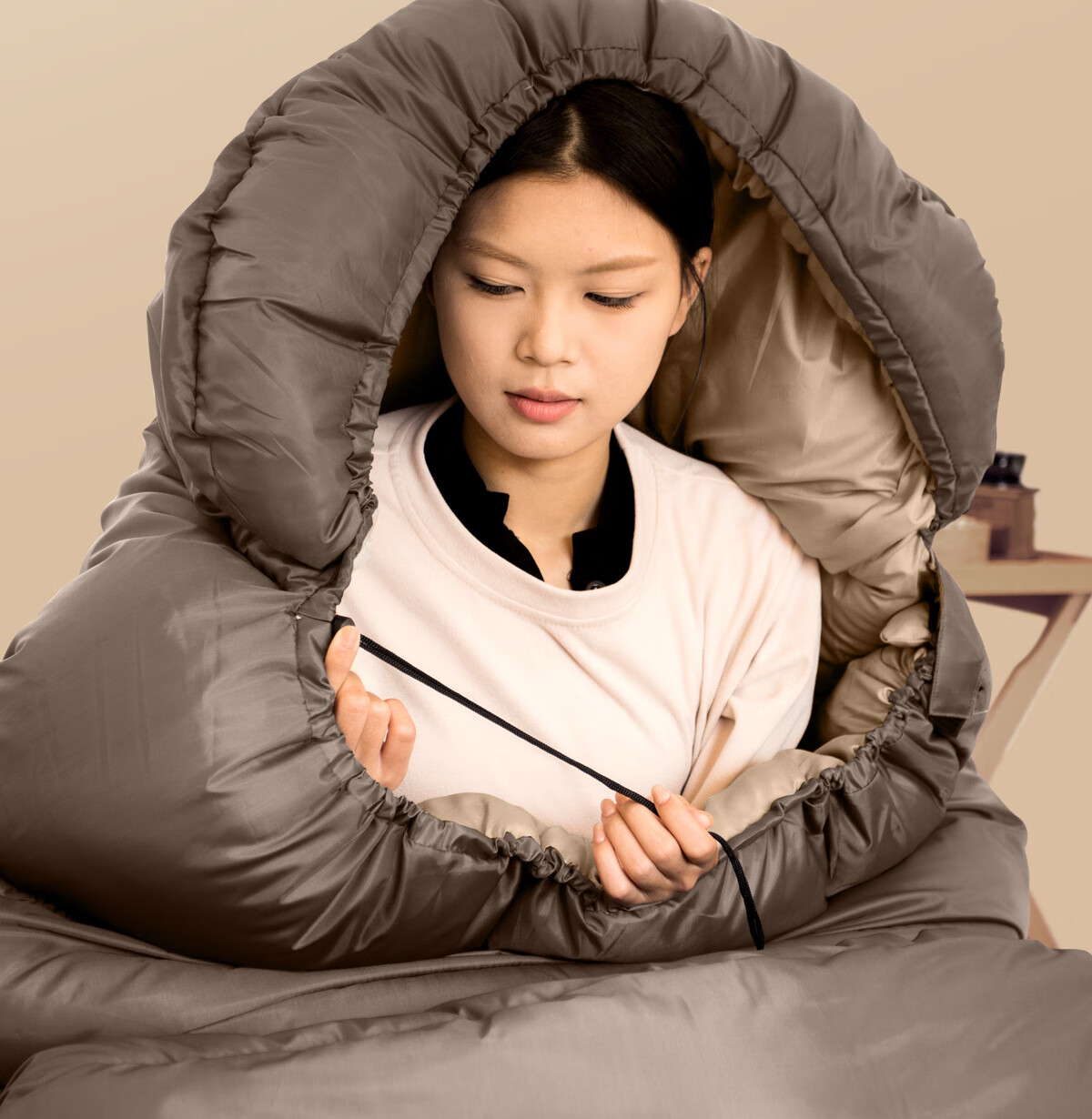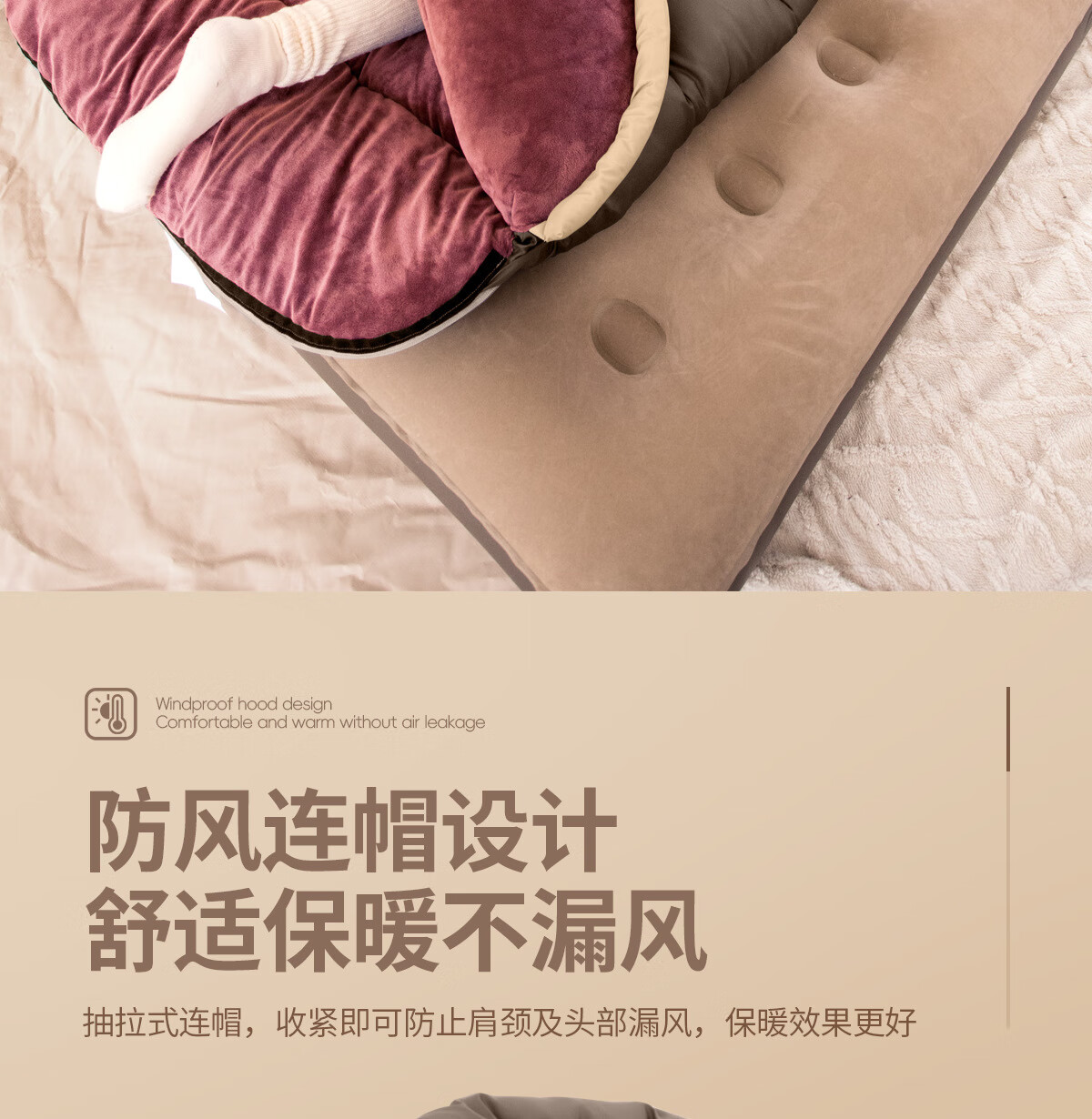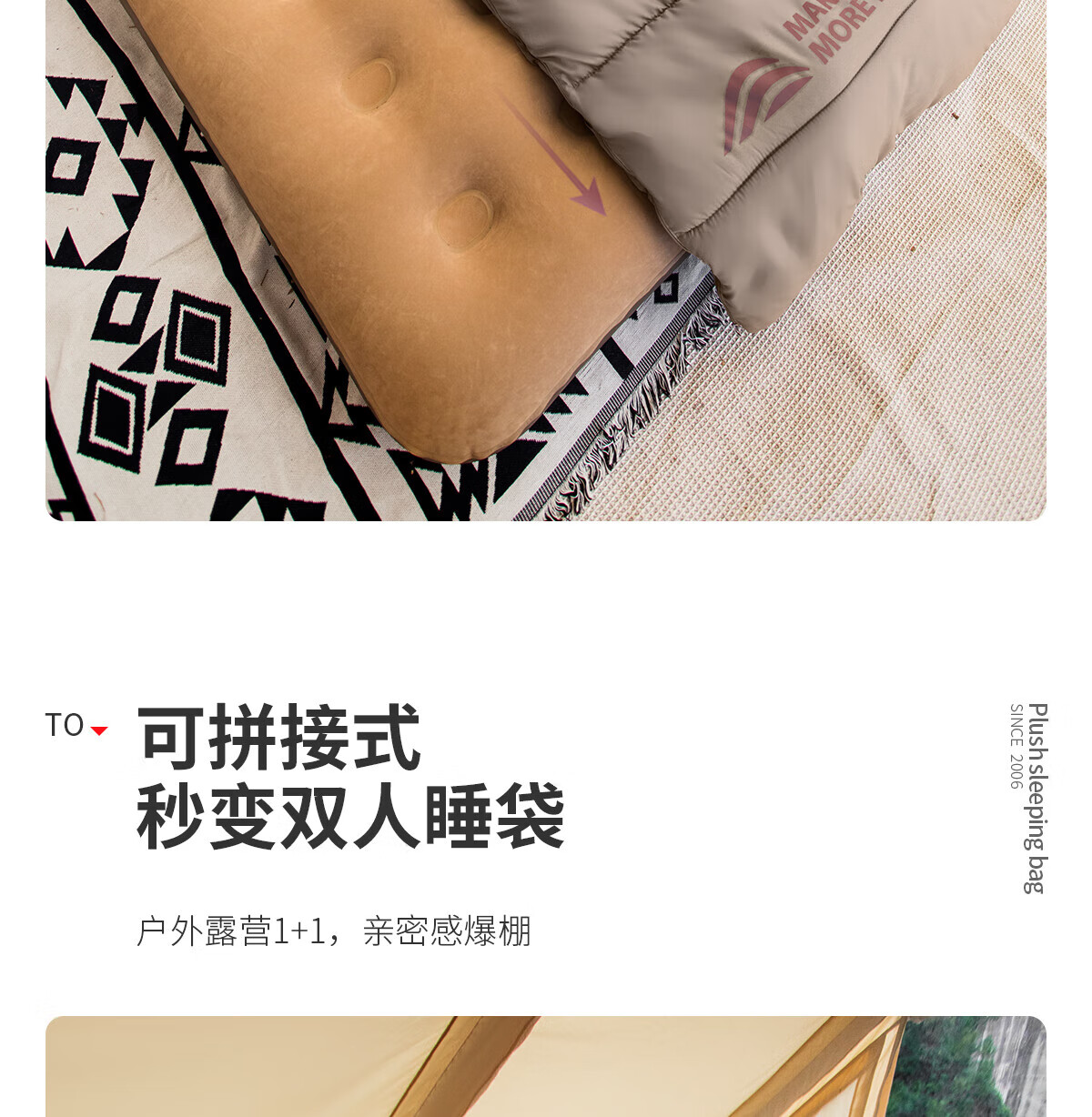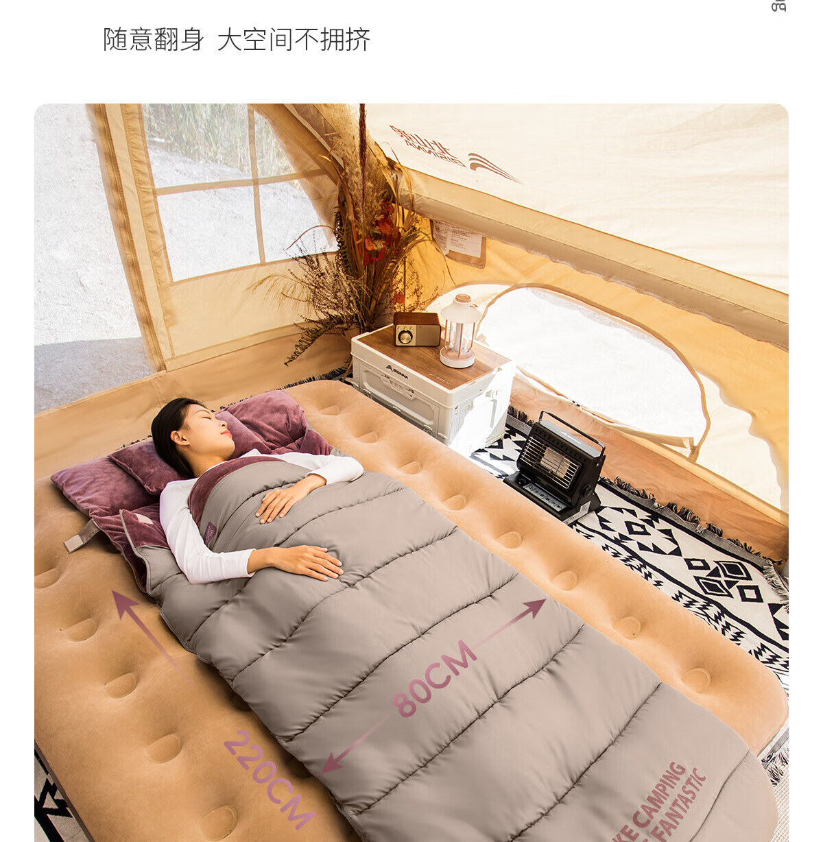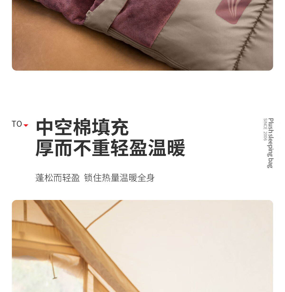 北山狼户外睡袋四季通用款加宽加厚防寒露营车用办公室午睡冬天被子两用 2.0kg棕褐色+收纳袋