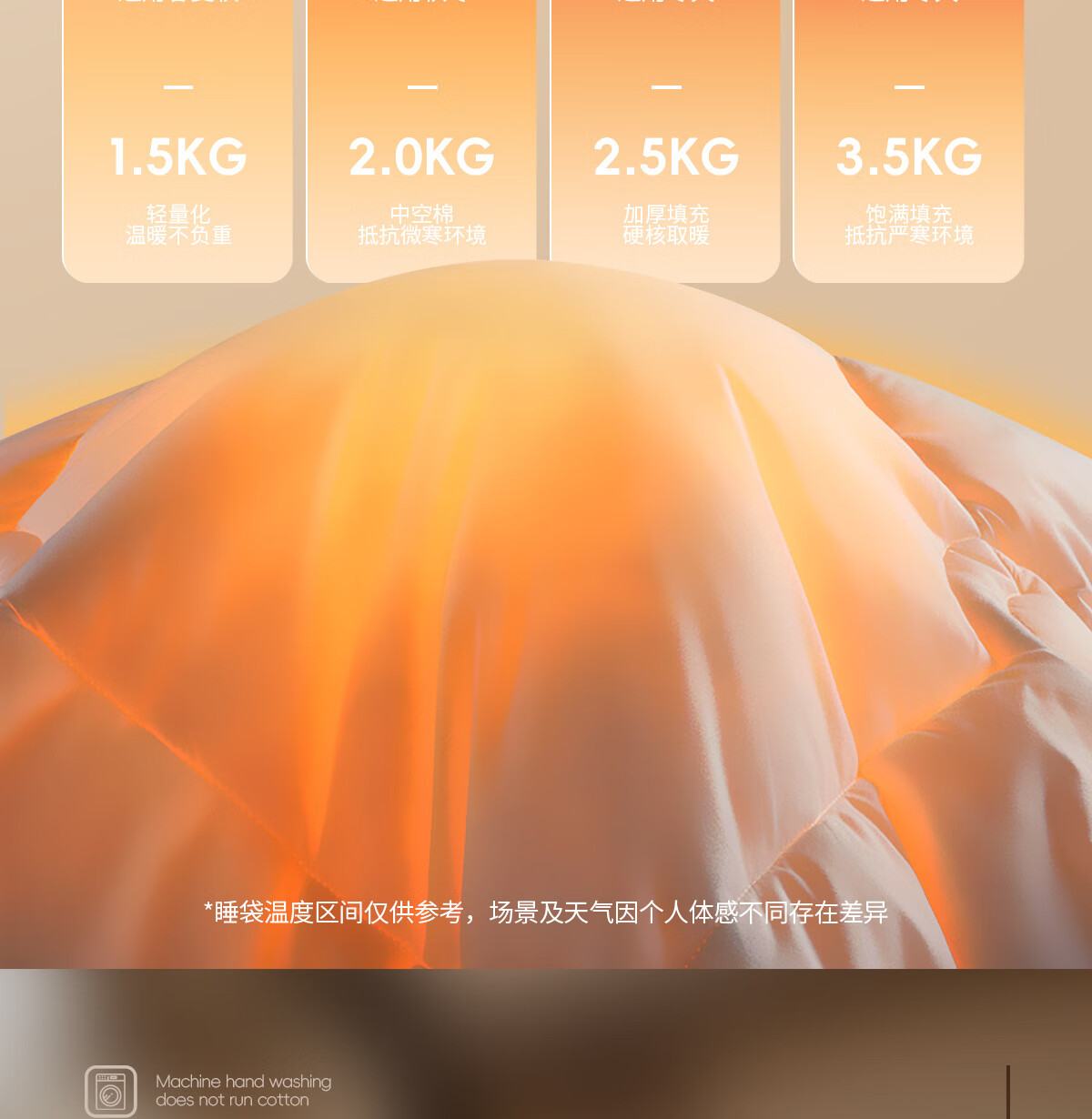 凯路德(KAIROAD) 户外棉睡袋成人四季通用保暖加宽露营便携式办公午休加厚防寒 1350g春秋款-桔色