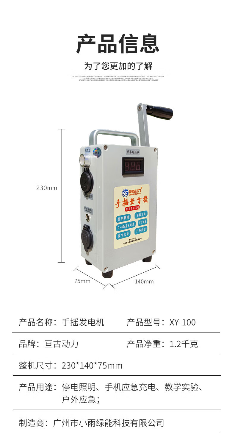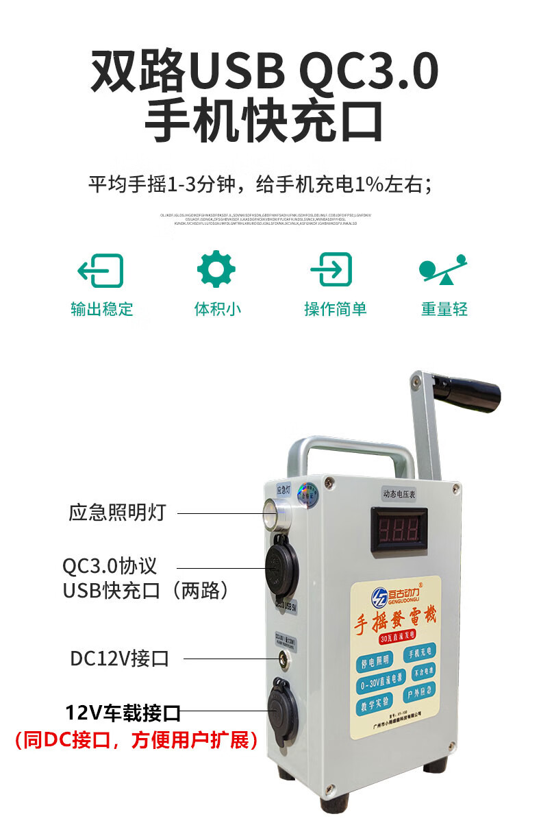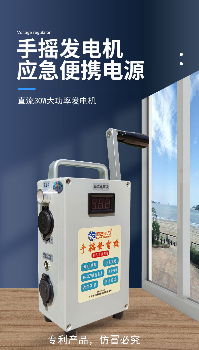 桐汝壁德国进口品质手摇发电机野外家用小型便携手动户外手 手摇发电机一台