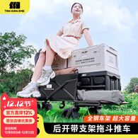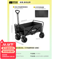 探险者(TAN XIAN ZHE)户外露营车折叠推车营地拖车快递摆摊野餐车大容量野营桌板手拉车 黑色加大款250L【万向越野宽轮+桌板】 250L 有刹车