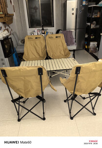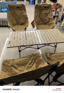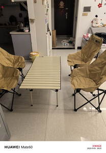 桌子和2个露营椅子,三件套搭配很完美,特别喜欢这个露营椅,靠垫高脖子不空很舒服,等天气好了就出去露营