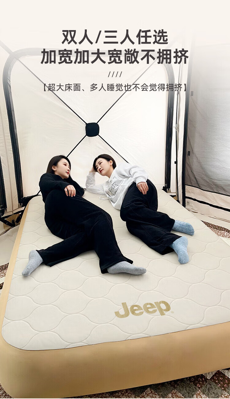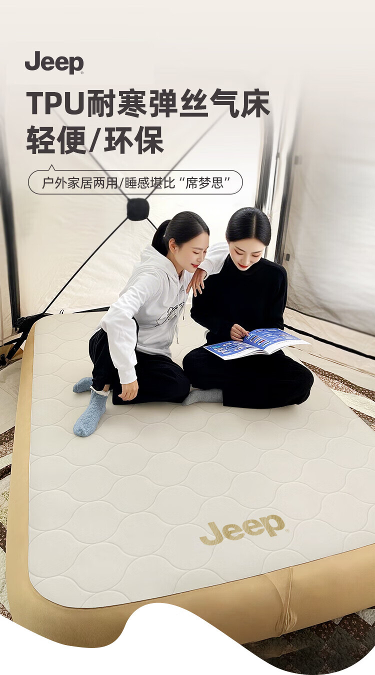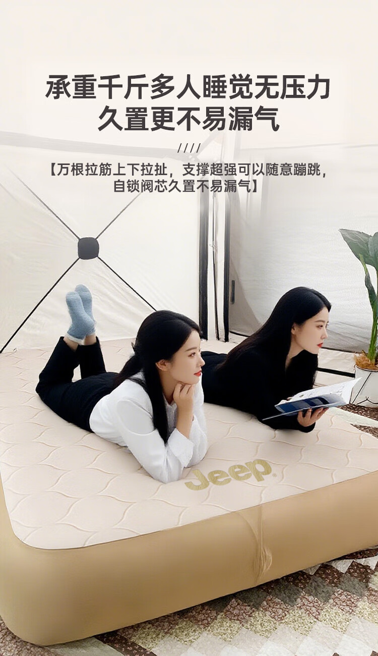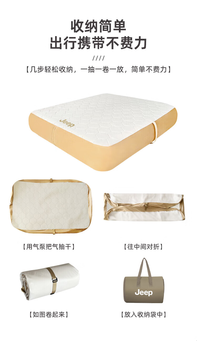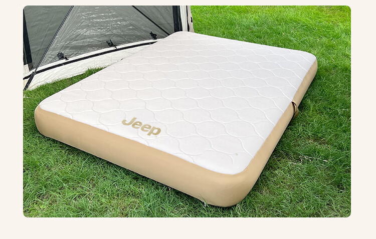 JEEP拉丝充气床垫打地铺家用户外露营便携式自动气垫床弹丝云床 拉丝床米色单人矮款+手动泵