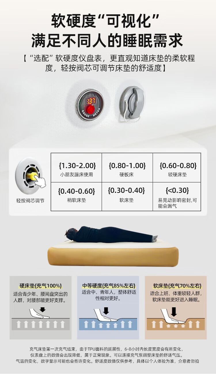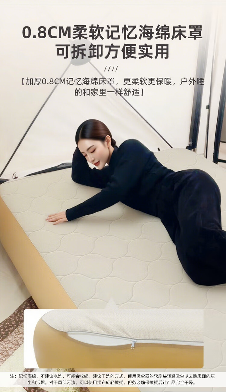 原始人拉丝充气床垫超硬全自动气垫床打地铺家用户外露营弹丝云床 单人-加厚20CM床笠(抗菌亲肤)