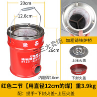 万家一节二节炭炉老式烤火取暖炉围炉煮茶一整套烤火碳炉蜂窝煤炉 圆盖式红二节【内径12.6cm】+压