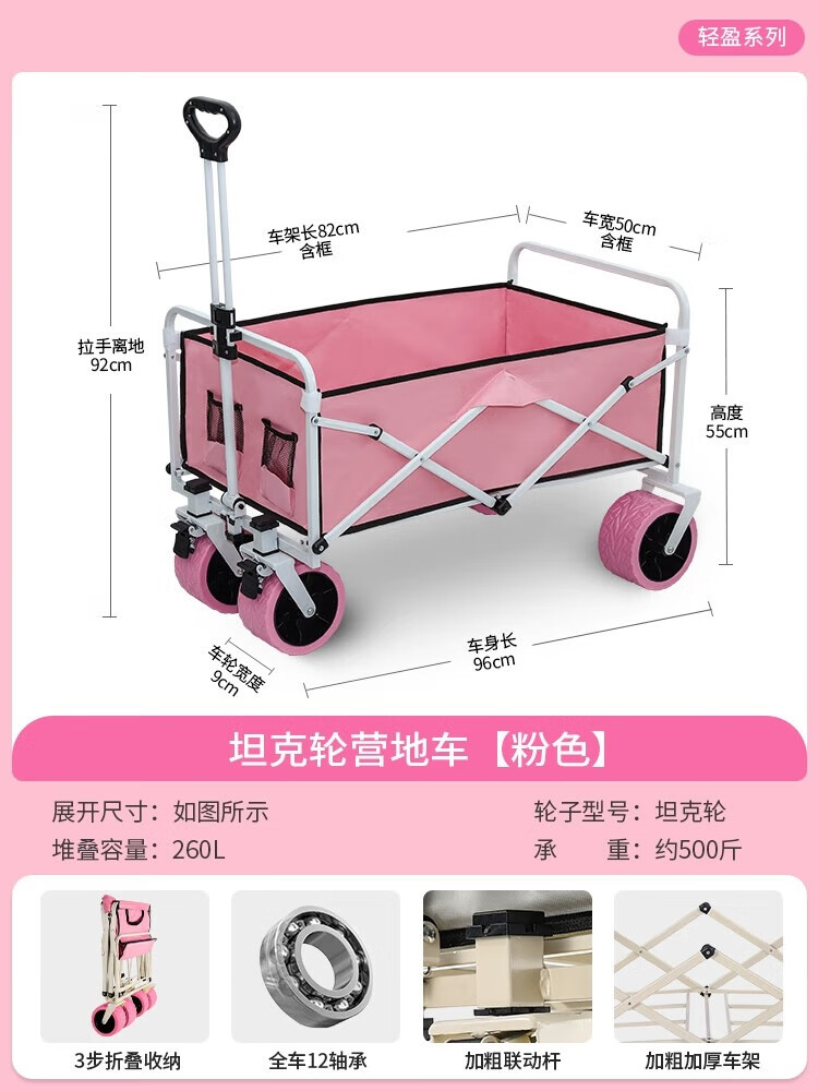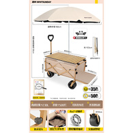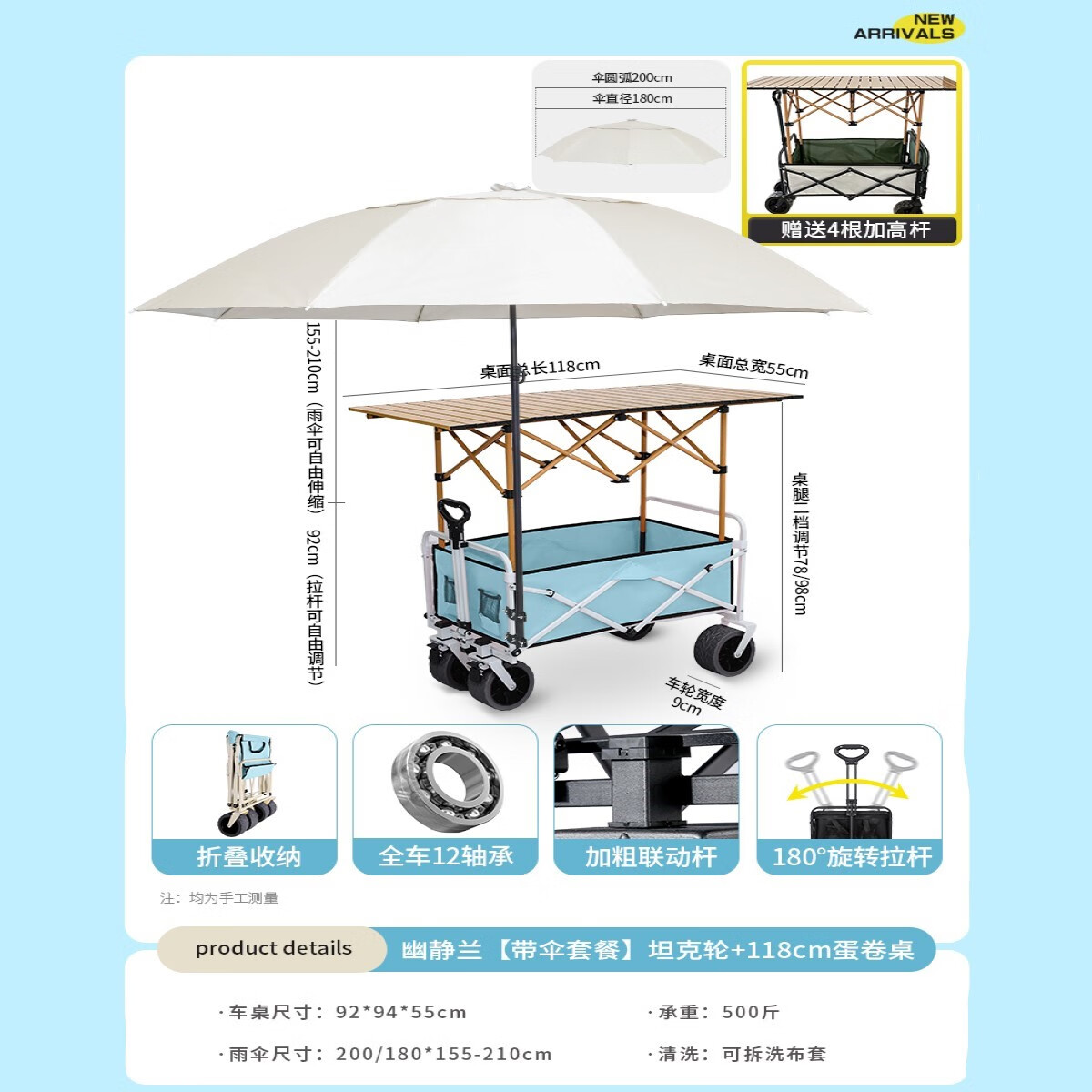 疆屿露营车户外折叠车营地车野餐摆摊野营拖车小推车儿童可躺旅行车 卡其坦克轮拖斗+蛋卷桌面+遮阳伞