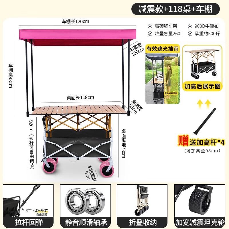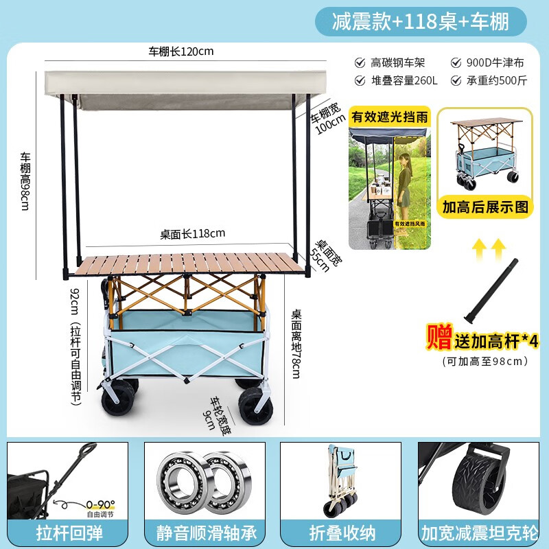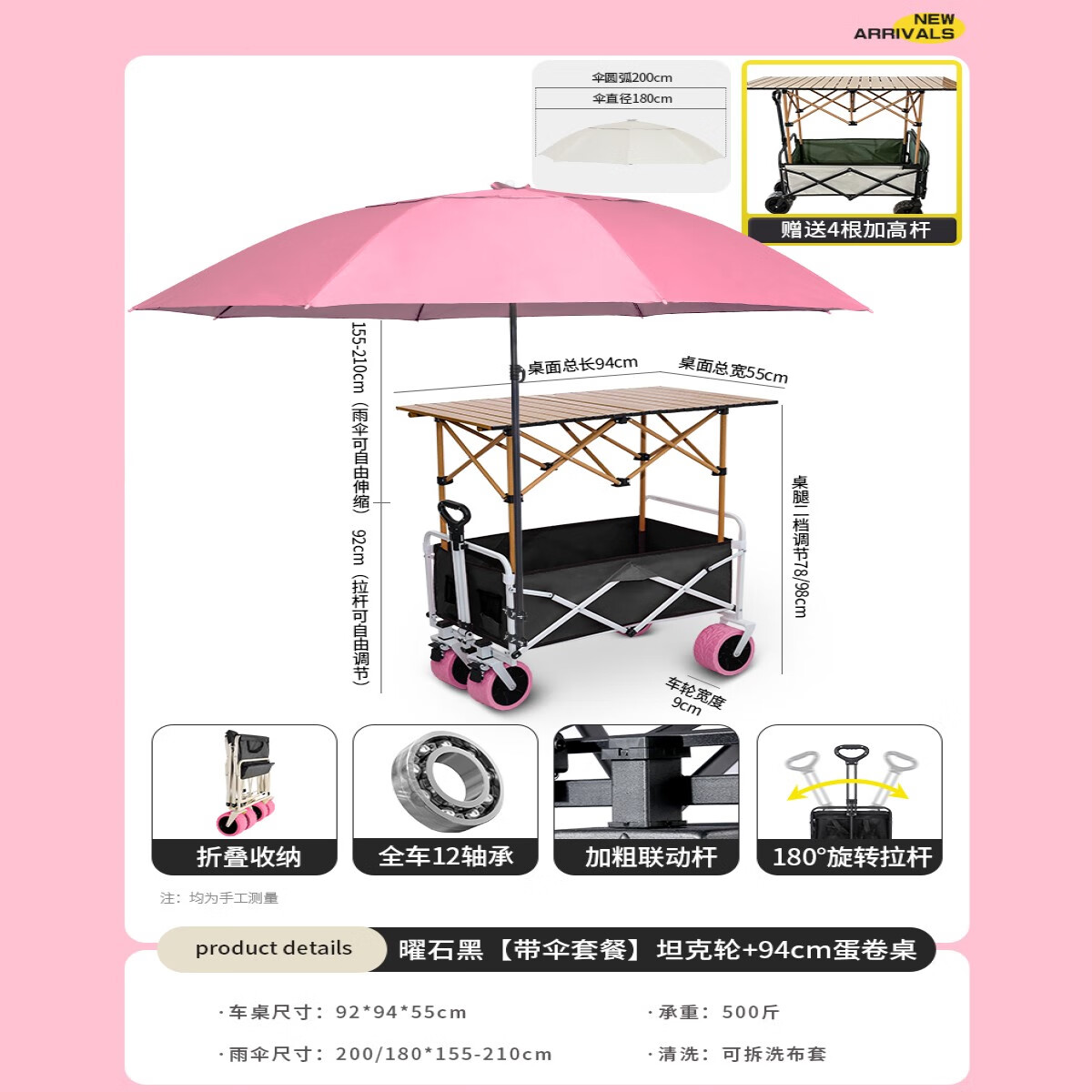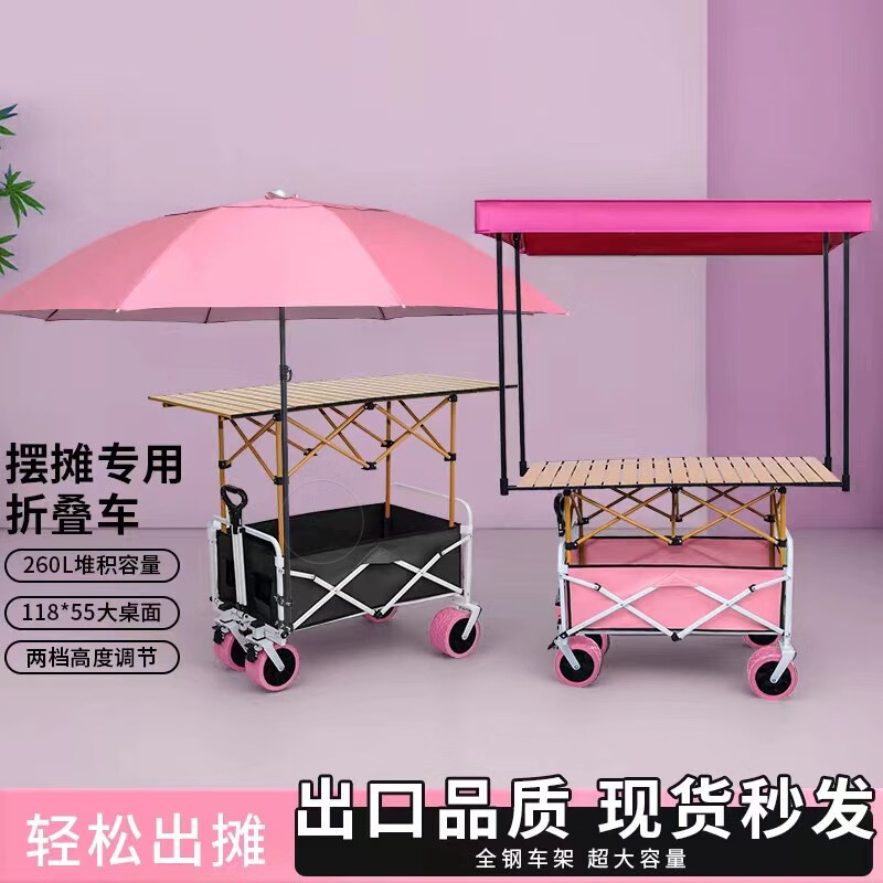 露营摆摊伞车一体车野餐车折叠桌户外移动夜市可升降餐车 【拖斗】巨无霸坦克轮+120升降桌
