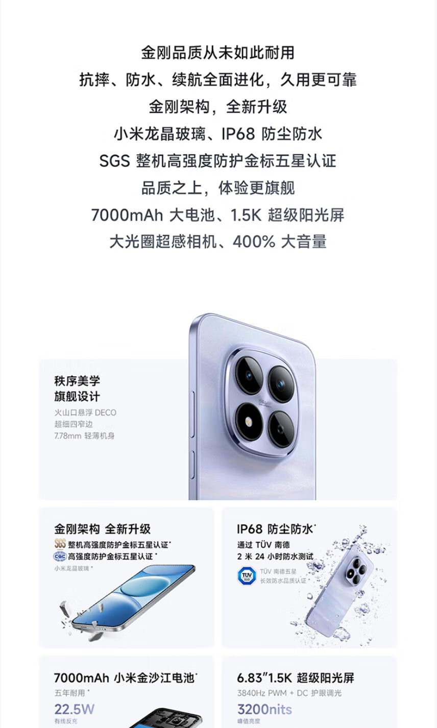 小米17 Pro Max 16GB+512GB妙享背屏12期分期可选5G手机新品REDMI Note15 Pro+ 第四代骁龙7s IP68防水 【雪松白】12GB+256GB 官方标配