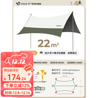 原始人天幕帐篷户外桌椅遮阳防晒防雨便携露营黑胶野营棚新型野餐大蝶形 22㎡经典绿白【全遮光钛黑胶】