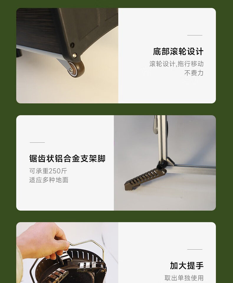 步林步林户外移动厨房露营野炊可折叠全套锅炉桌椅自驾游做煮饭装备 C650智行版+柴火炉+猛火炉】推车