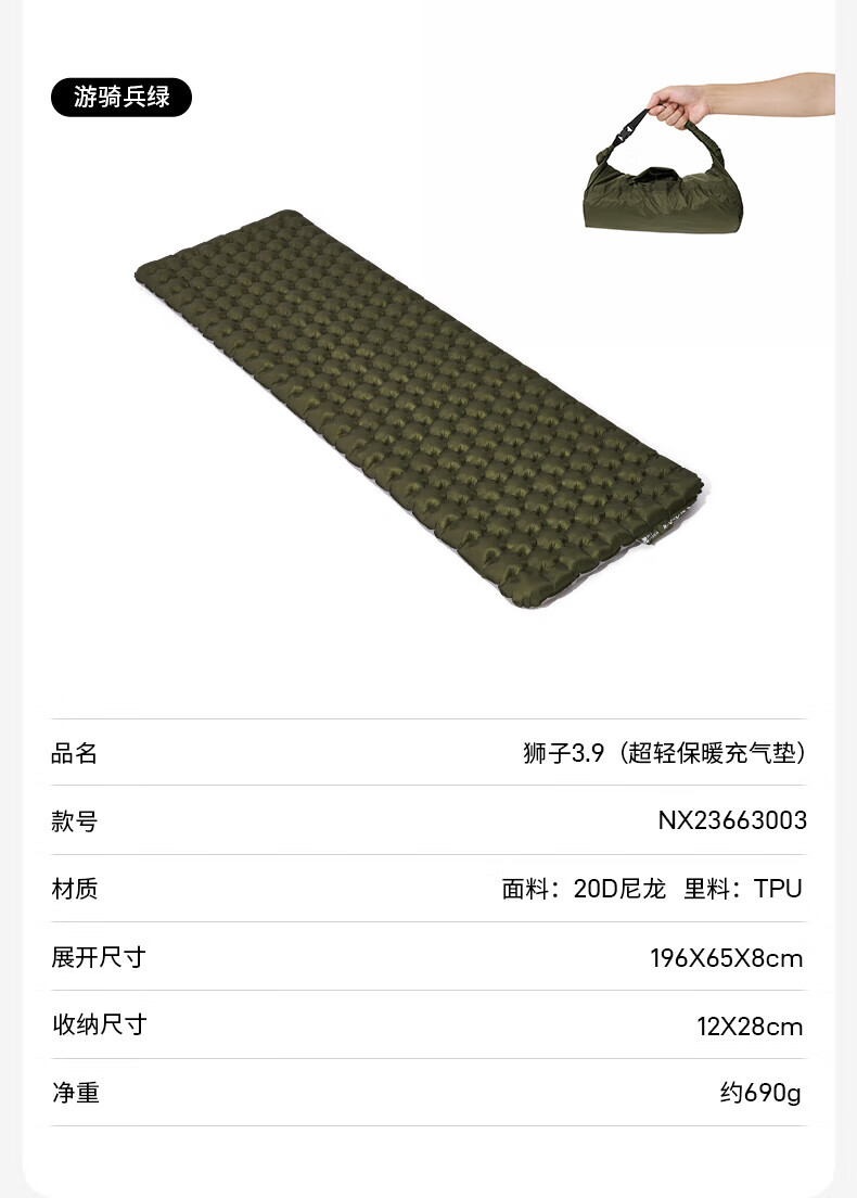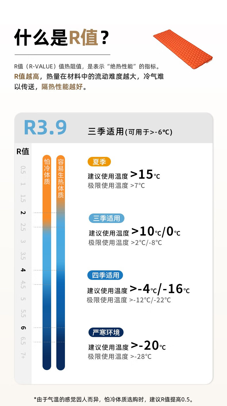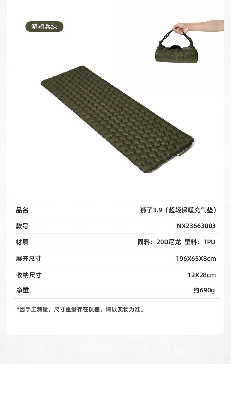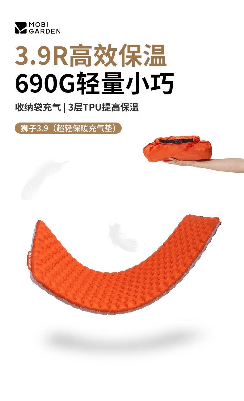 牧高笛狮子3.9充气床垫户外露营便携气垫轻量化徒步单人睡垫高R值 【超轻保暖 高R值3.9】溢彩橙