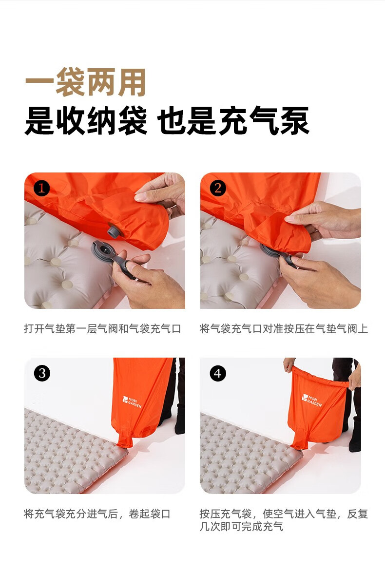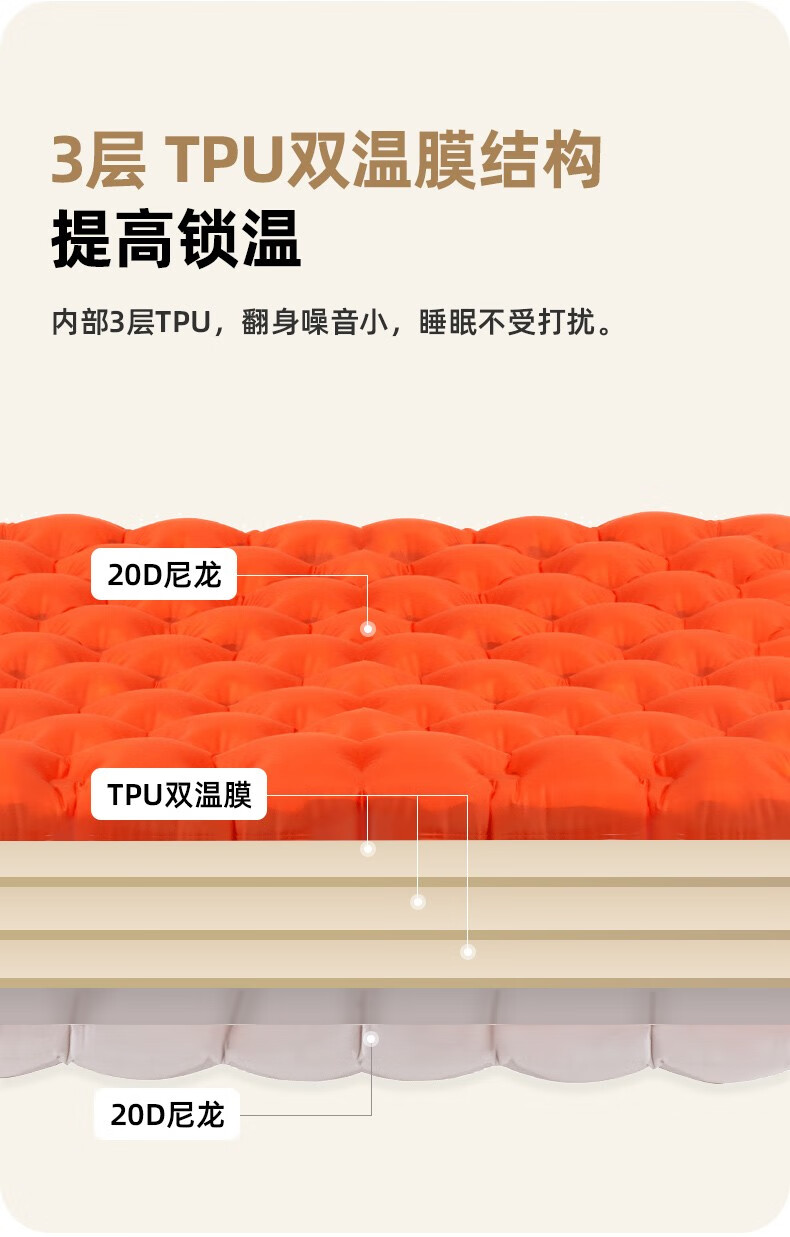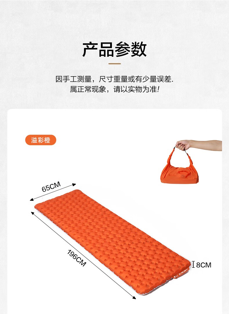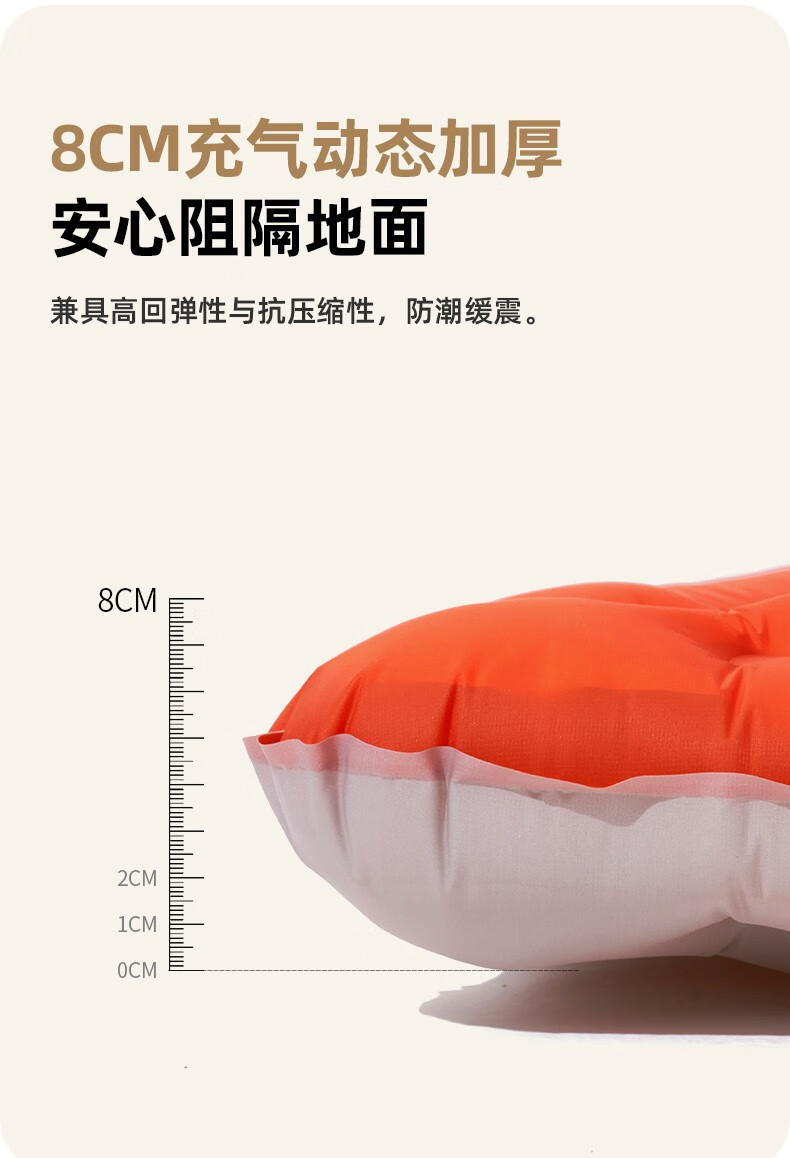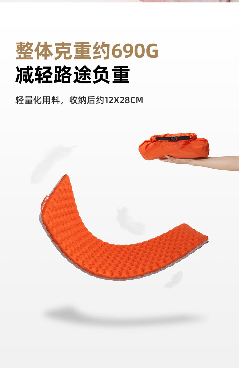 牧高笛超轻充气垫充气睡垫 户外露营加厚双层充气阀TPU单人超轻防潮垫 【7R值】溢彩橙/配充气袋