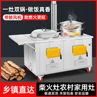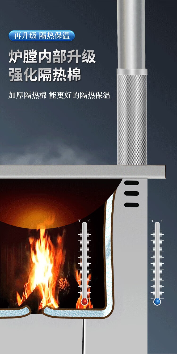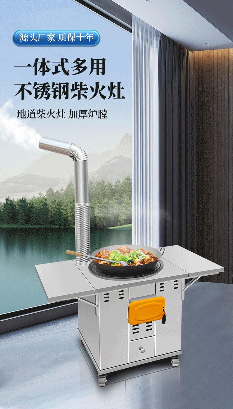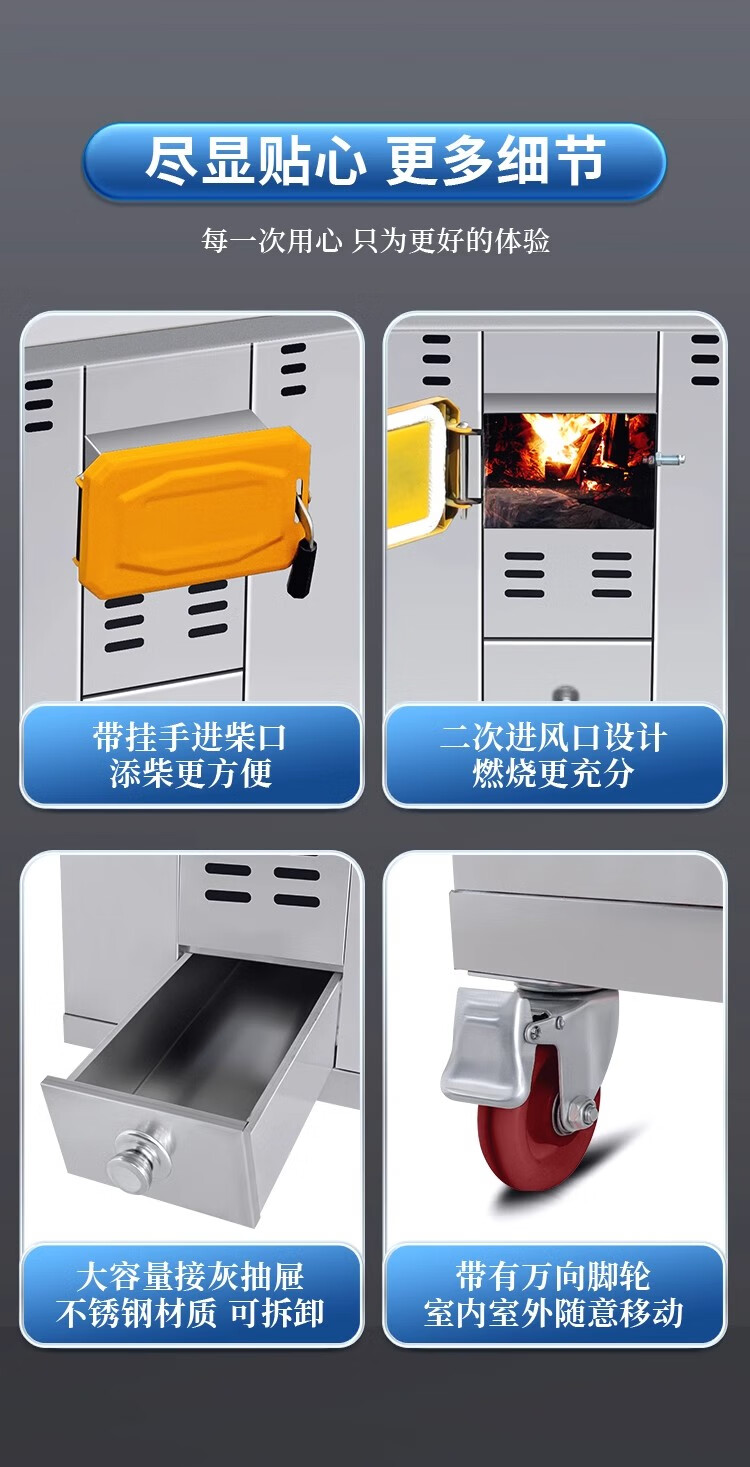襄睿不锈钢柴火灶农村家用灶加厚移动地锅灶台户外新款双灶台带风机 双灶60cm+50cm+水箱+案板