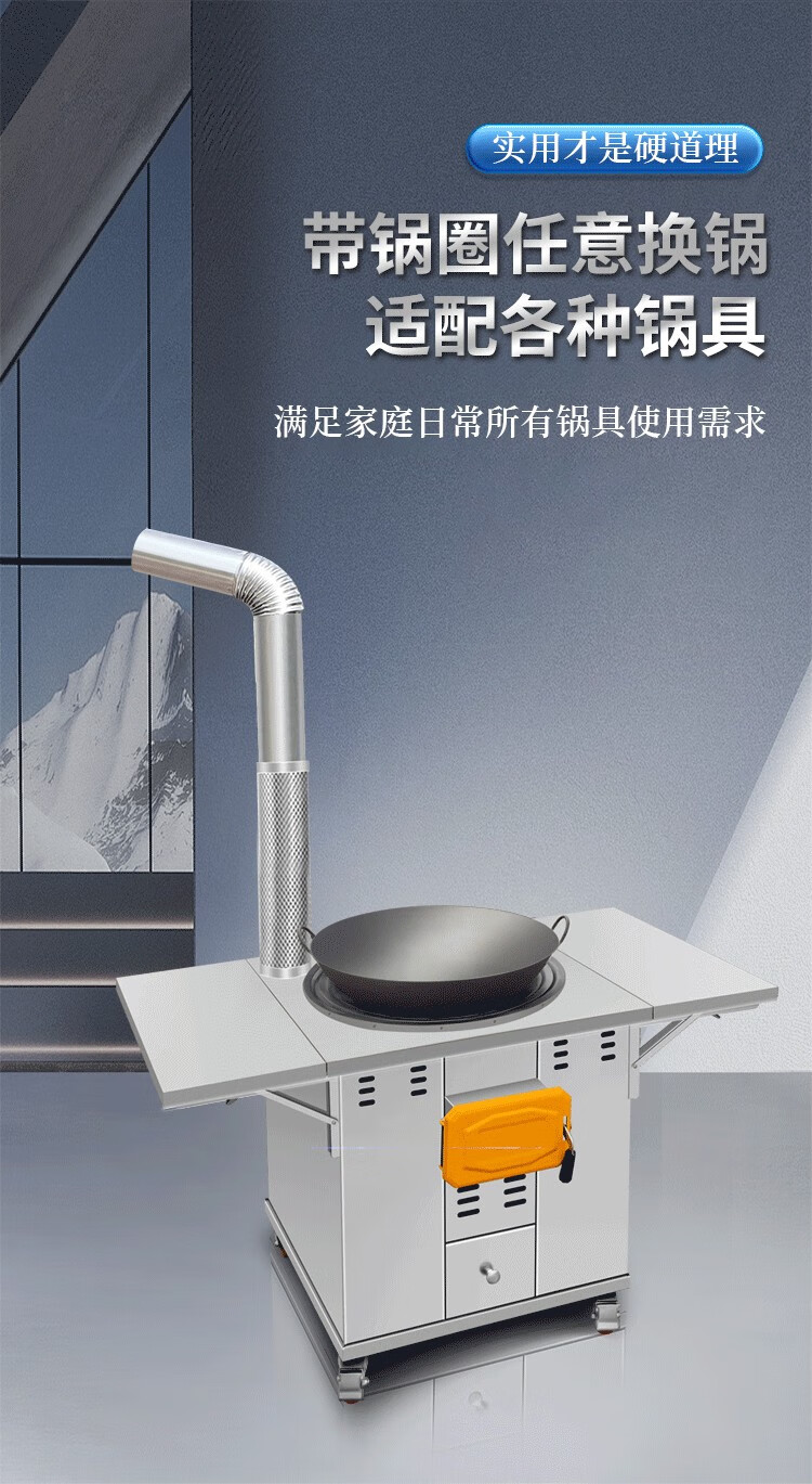 嘉久福送货上门不锈钢柴火灶可移动农村家用烧木柴灶台带锅圈 55cm锅 单灶