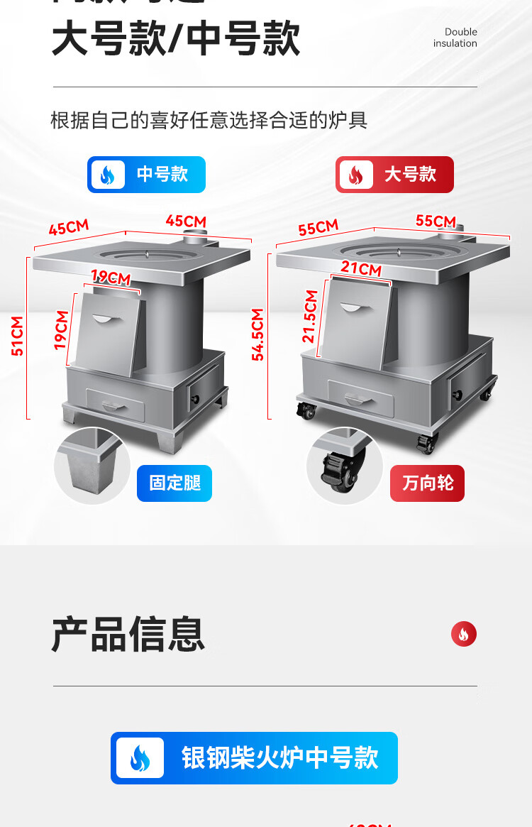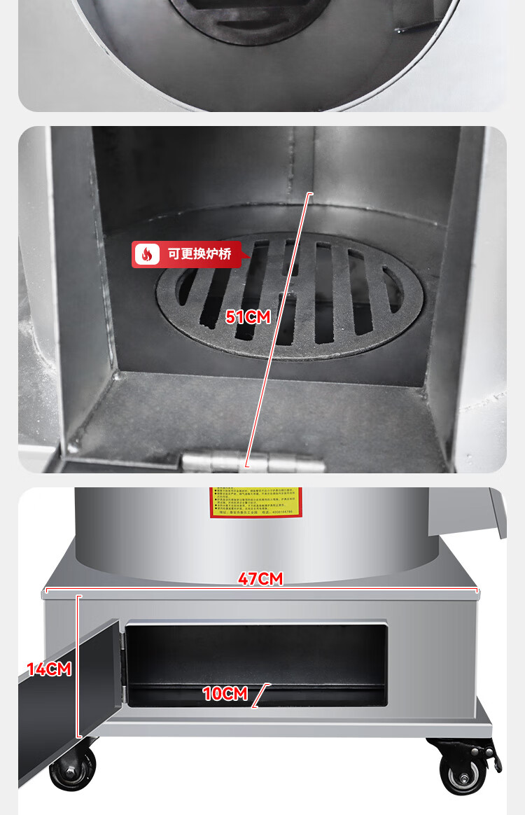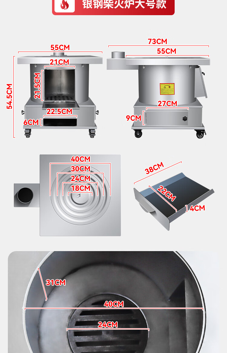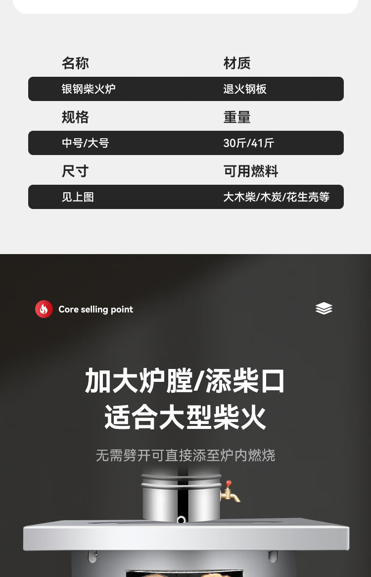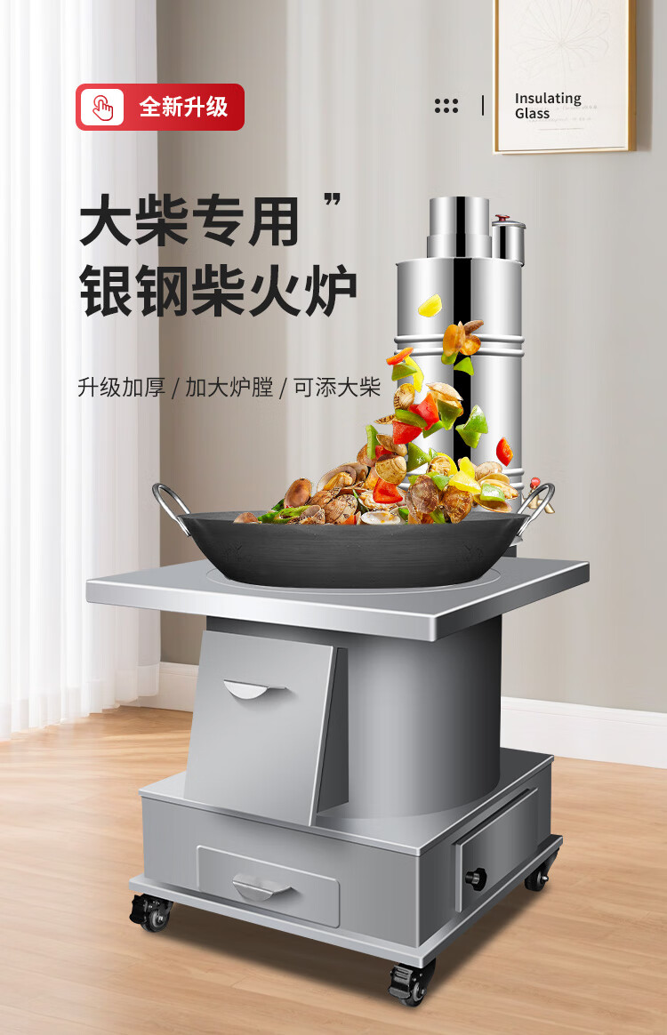烽点大柴柴火灶炉烧木柴农村家用无烟室内取暖多功能移动新式大铁锅台 中号银钢柴火炉+炉圈炉盖