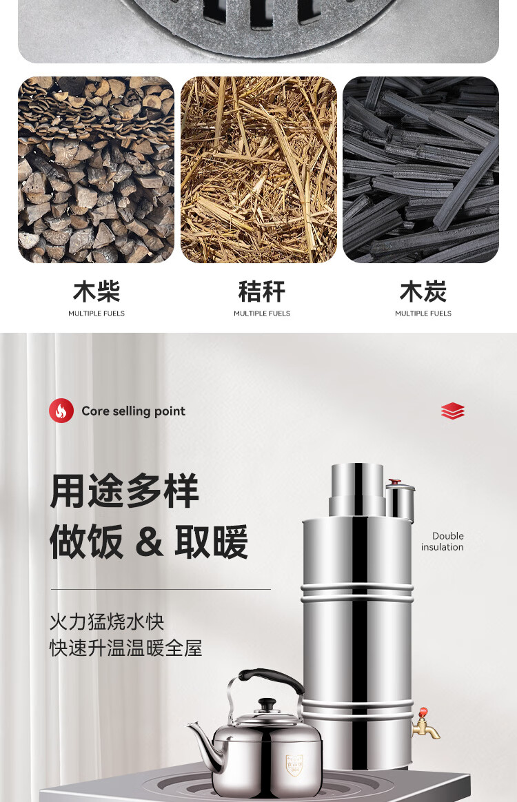 其他家无烟柴火炉取暖炉气化 省柴省煤 多功能 不怕查无烟环保2025新式 【炉面36*36】最新款自吸
