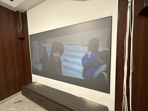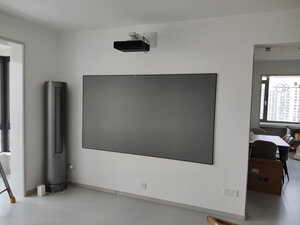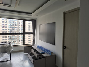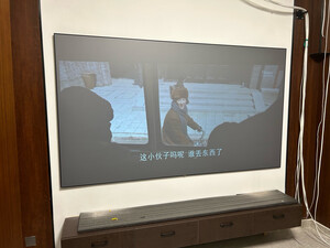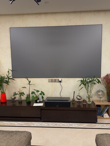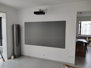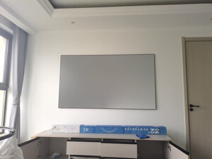 今天终于把安装的师傅等来了,这个屏幕太正点了,超级感谢客服的推荐,客服特别耐心和专业!其实我是先确定了你们家的屏才去选的机子,但是真的效果超棒,图里面的情况还是夕阳余晖有照进来的时候,但是效果我觉得都非常棒了,师傅说是第一次按这种硬屏,以前的都是卷屏组装的居多,这种一体式的还是第一次,非常轻松,一下子就弄好了,安装师傅也非常负责,水平仪各种工具都用上了,开机看了效果大爱啊,等周末和家人一起享受一下家里影院的感觉!