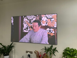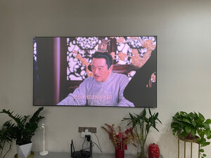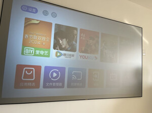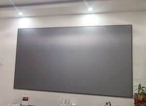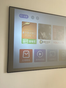 硬屏收到后就找了师傅来安装,包装的好,安装的也很好! 现在投入使用啦,比直接投墙上的效果好很多!而且实际效果比拍出来好的多(可能是光学效果?) 真的很赞!