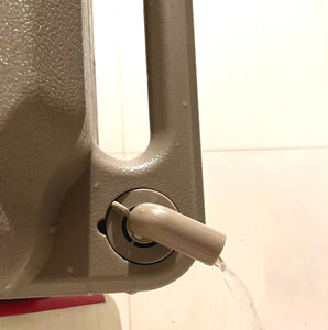 这款车载水箱设计非常好没得说(车载不用水时转90度放置,水箱口和龙头都在上部,即使这两处漏水也不至于产生严重后果),所以第二次购买。 但是做工有待提升,这次龙头处漏水严重,不想折腾退换货,就自己动手试试,用了不少装水管用的生料带,终于不漏水了,希望厂家提升品控。