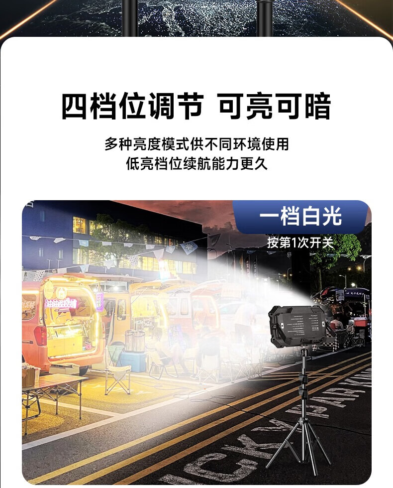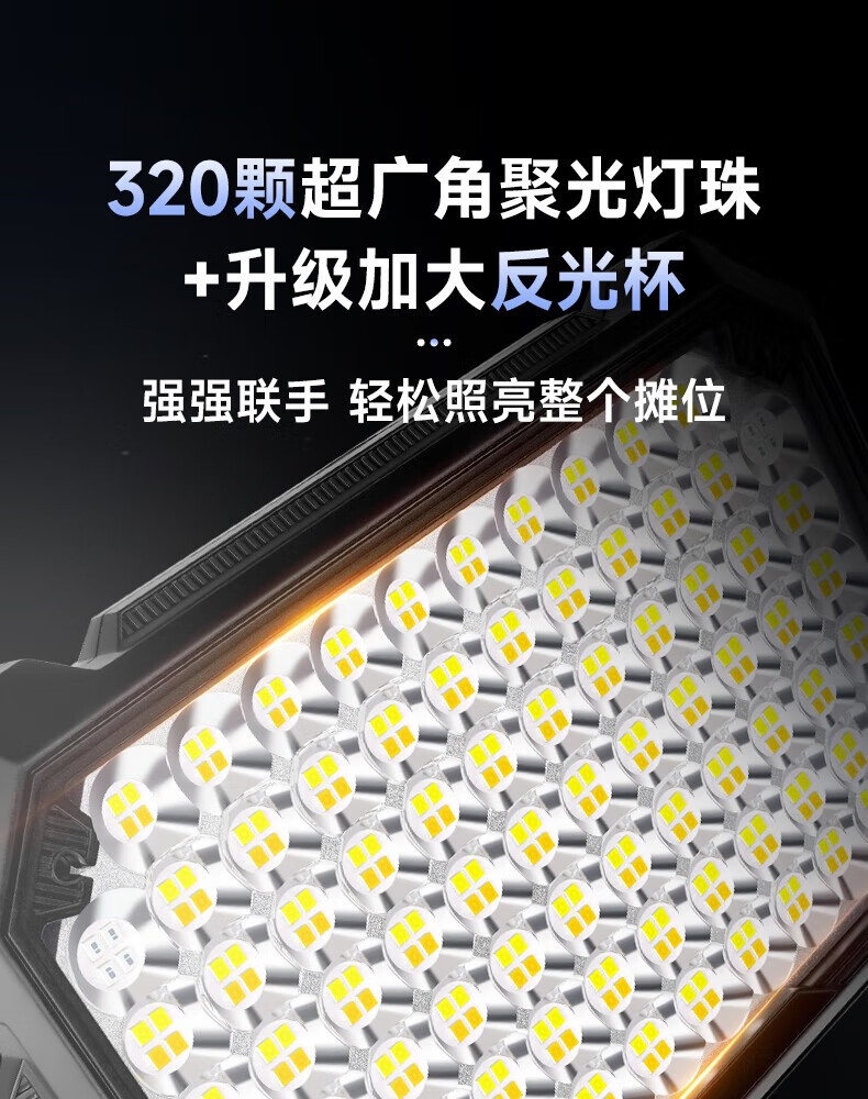 这款出摊户外灯非常实用,亮度高大面积照射范围,户外活动提供足够的照明。优质的制造和设计,保持稳定的性能表现,让在户外活动中放心使用,享受更多乐趣。户外灯是夜晚户外活动的好伴侣,使用性和便利性真的让人非常喜欢!