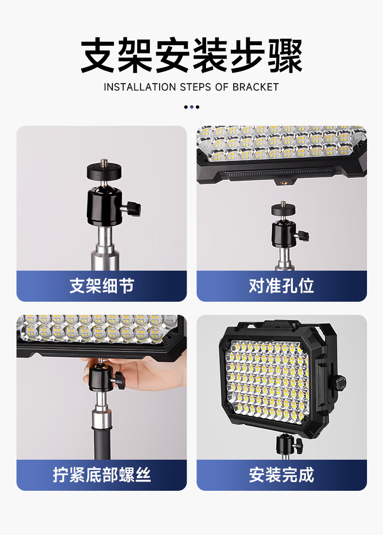 晚上摆摊用的,第一次打开太亮了,再次打开的时候,才发现可以切换好几个档位,确实很不错户外用的。这个灯有点重量,亮度大,支架结实,很满意,很方便,推荐