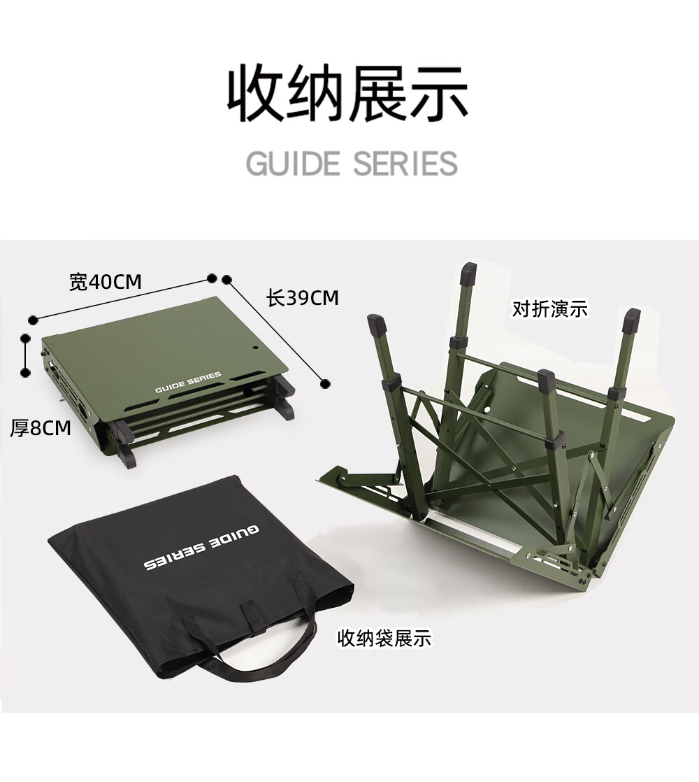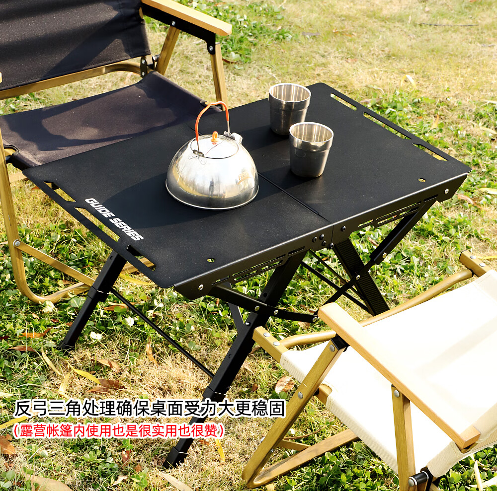 Guide Series户外折叠桌子igt对折铝合金野外便携式露营超轻量化可升降战术桌 BL-219款对折桌(黑色)