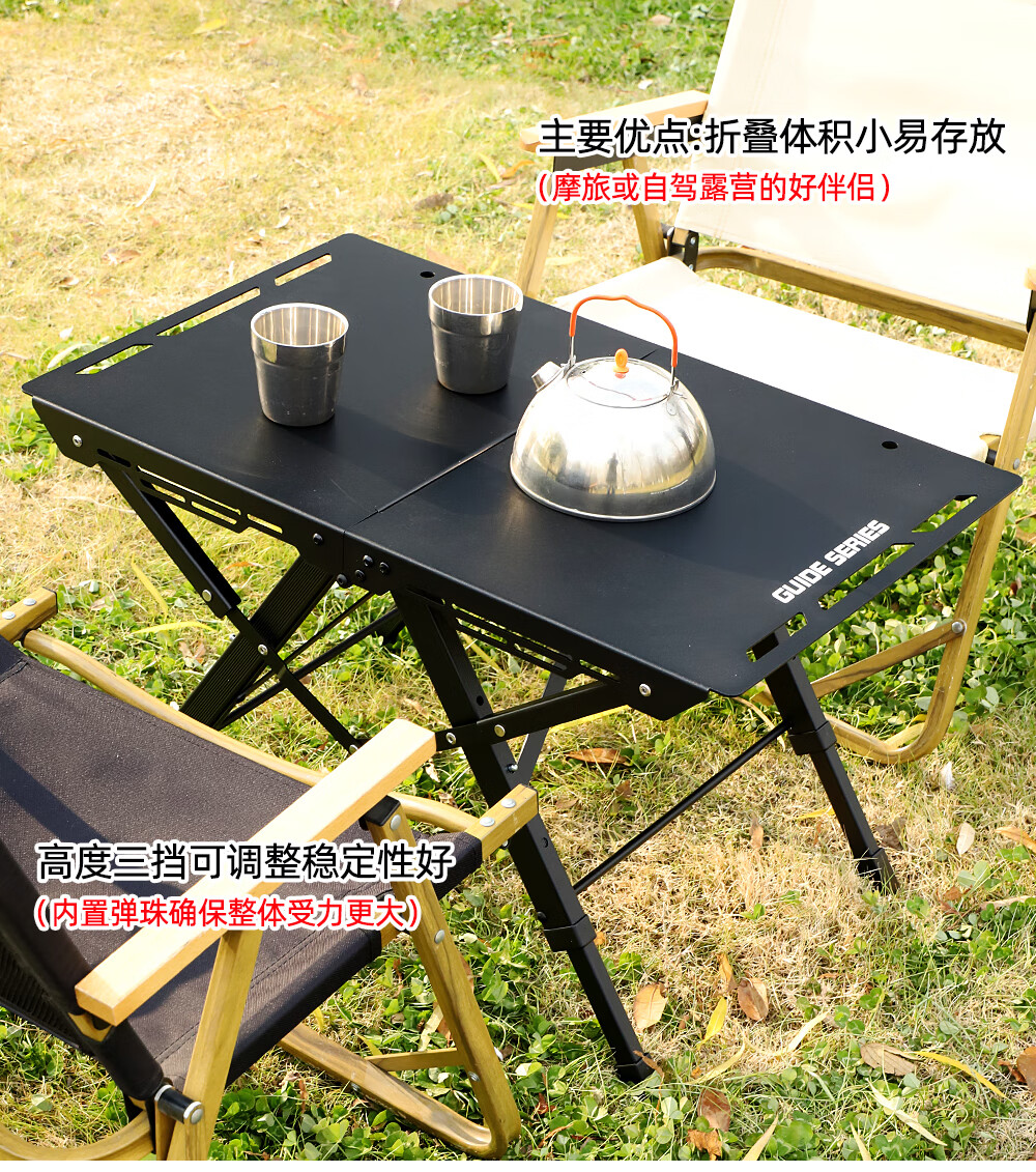 Guide Series户外折叠桌子战术桌铝合金多功能露营自驾野餐桌218加宽桌面 BL-218款折叠桌(黑色)