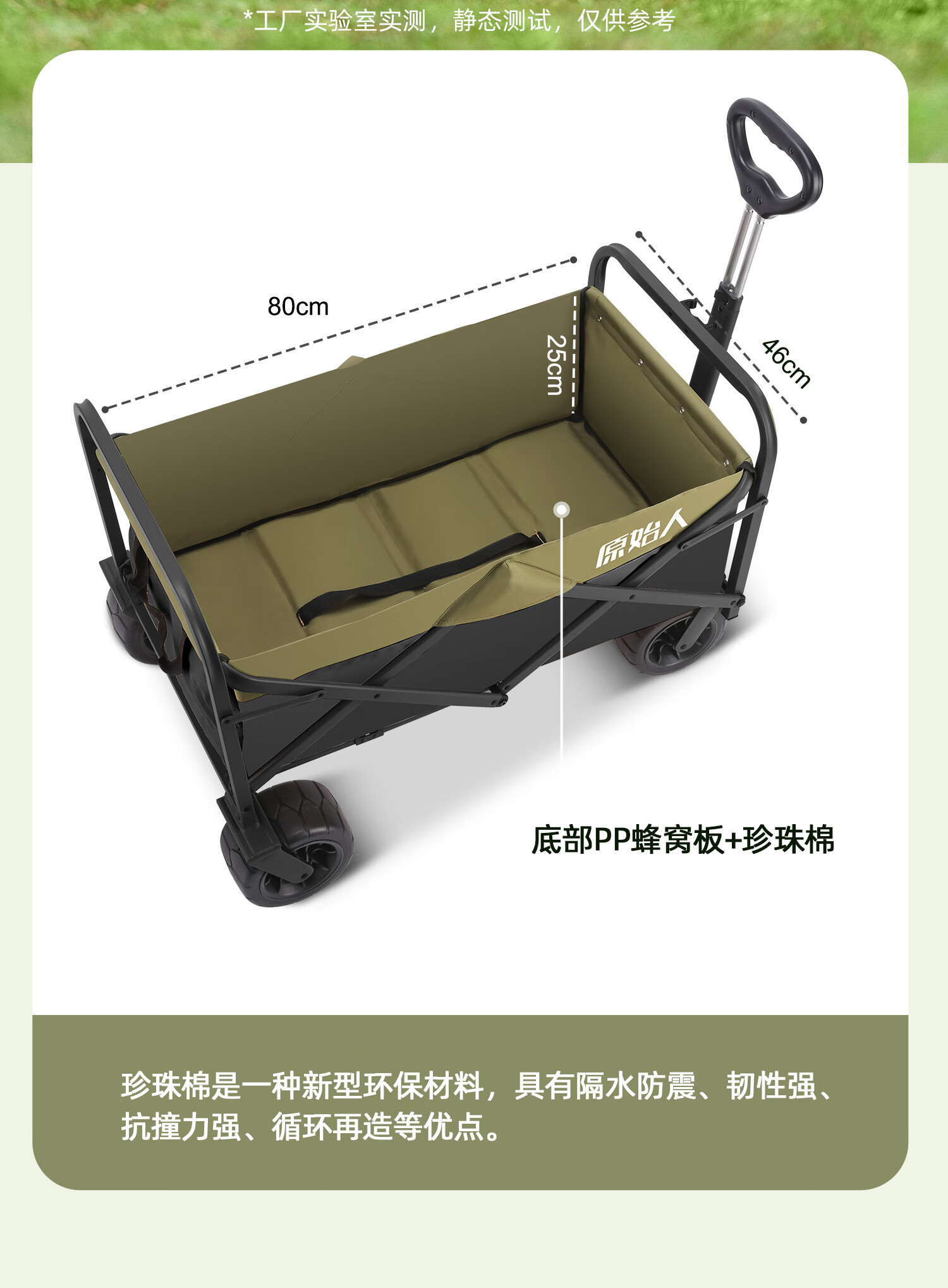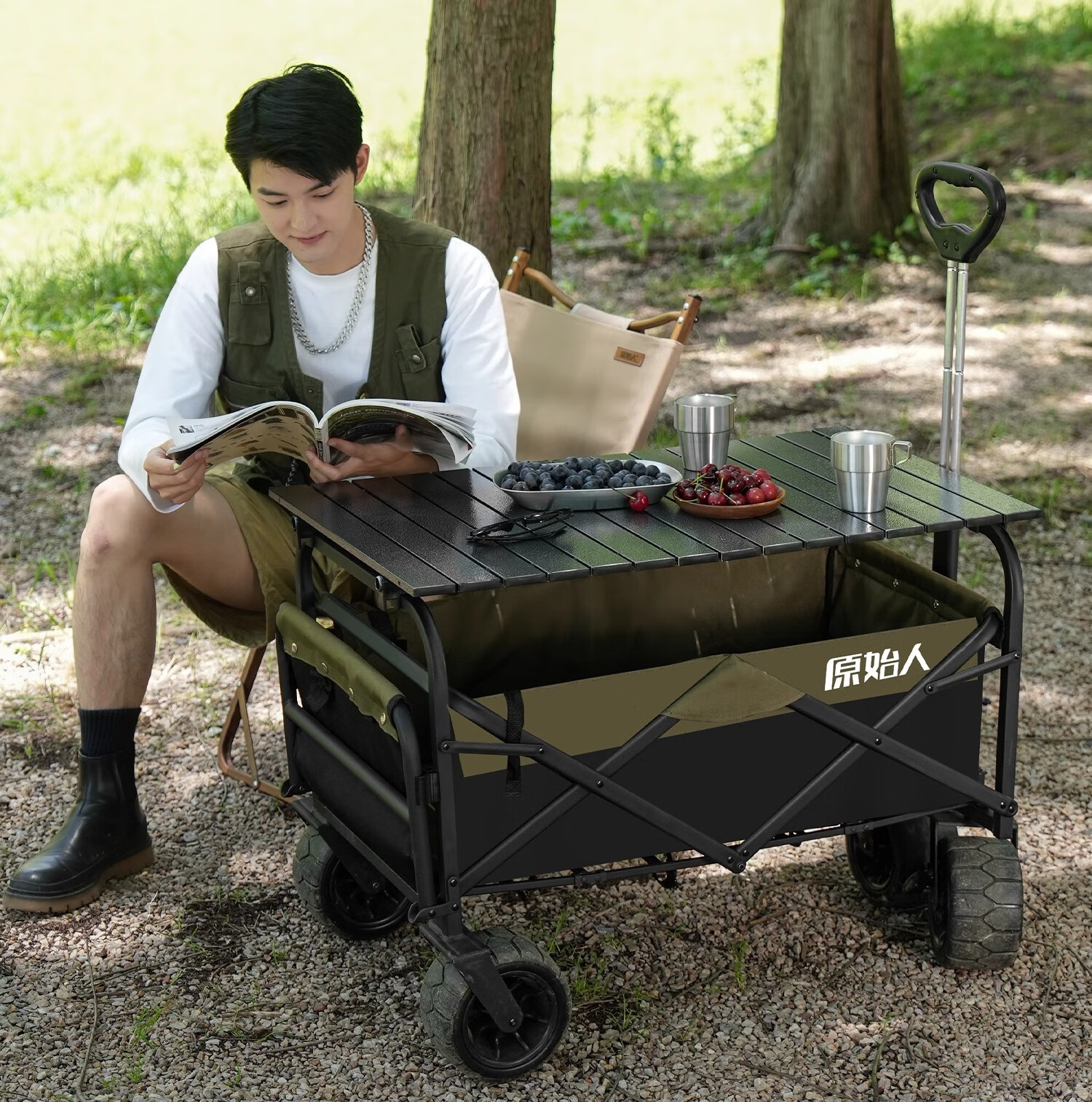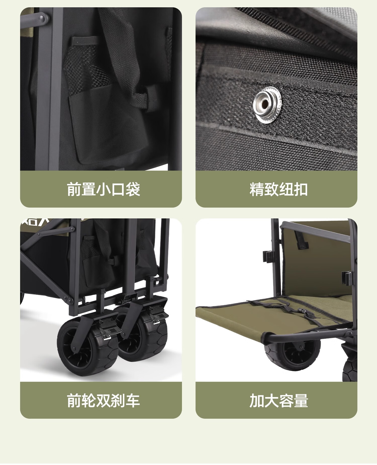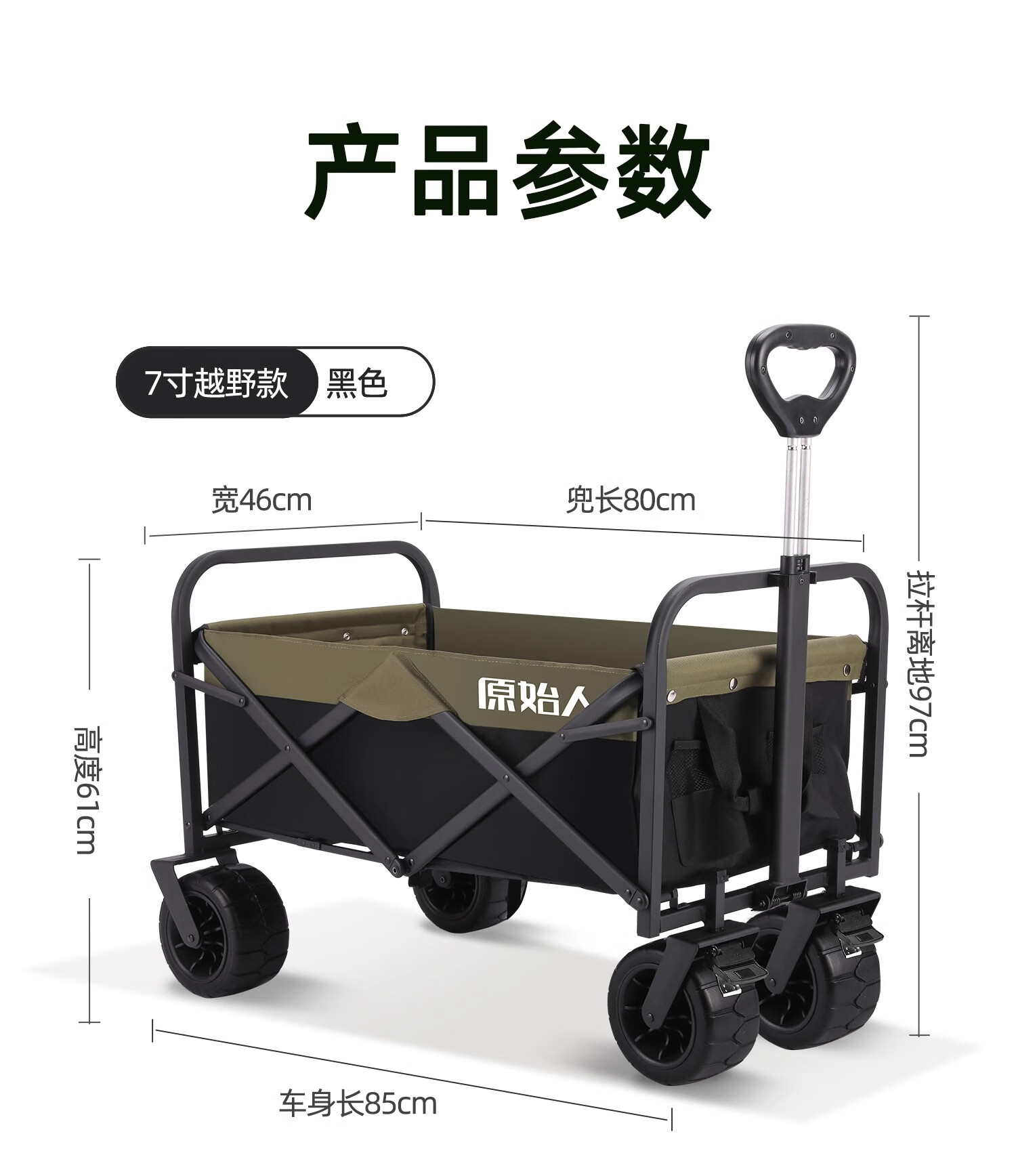 原始人露营车野餐户外折叠小推车可折叠手拉车遛娃郊游帐篷收纳桌板拖车 250L 堆叠容量【黑绿】加宽越野轮