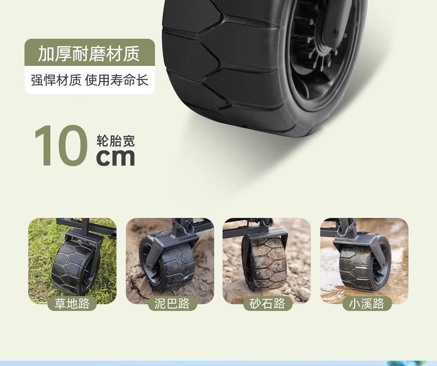 车子特别能装,质量非常好,今天第一次用特地去草地凹凸不平的地方也很好推