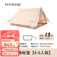 原始人屋形轻奢户外帐篷防暴雨豪华别墅露营帐加厚棉布大型野营帐 棉布款-流沙金-中号
